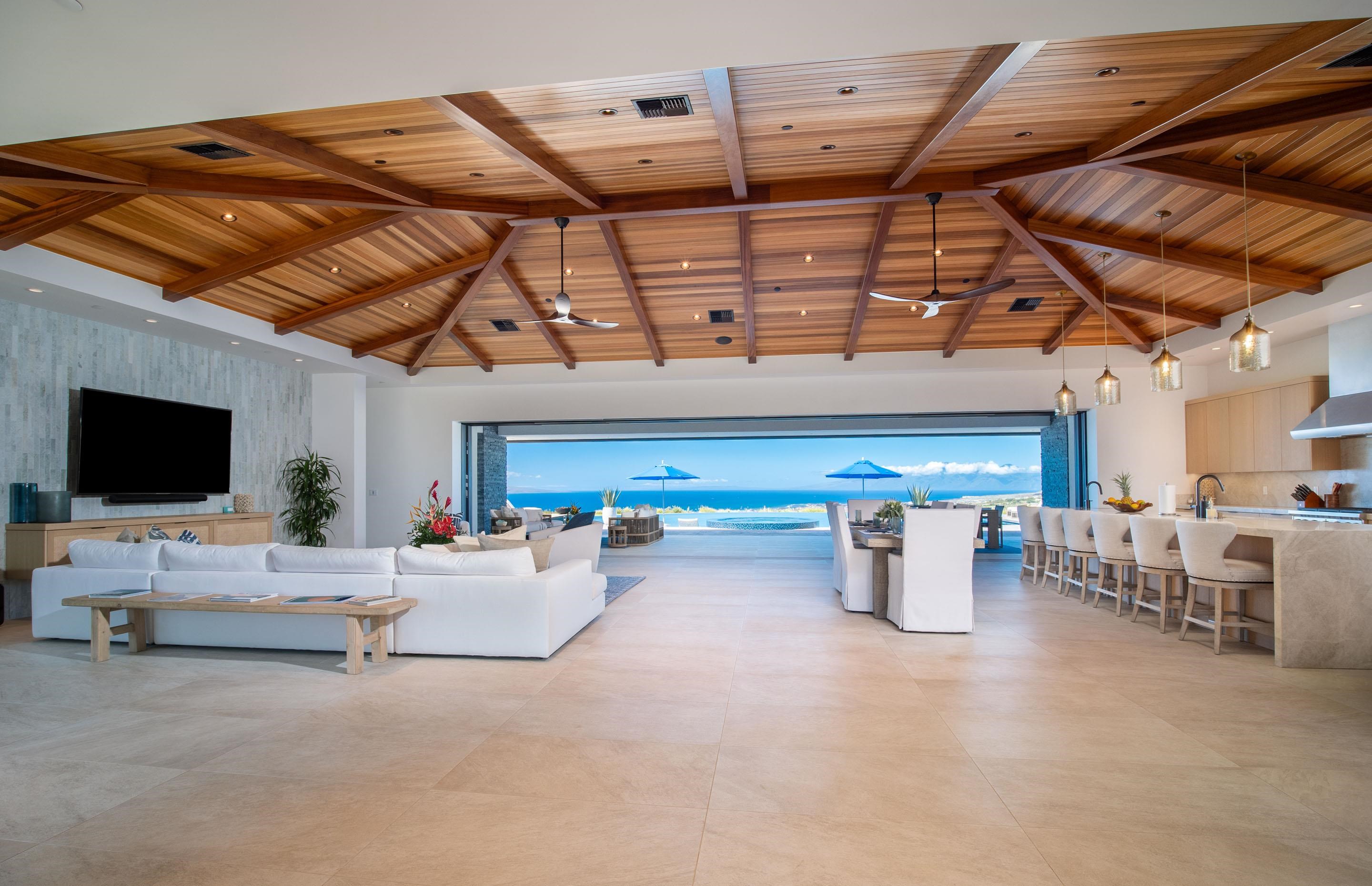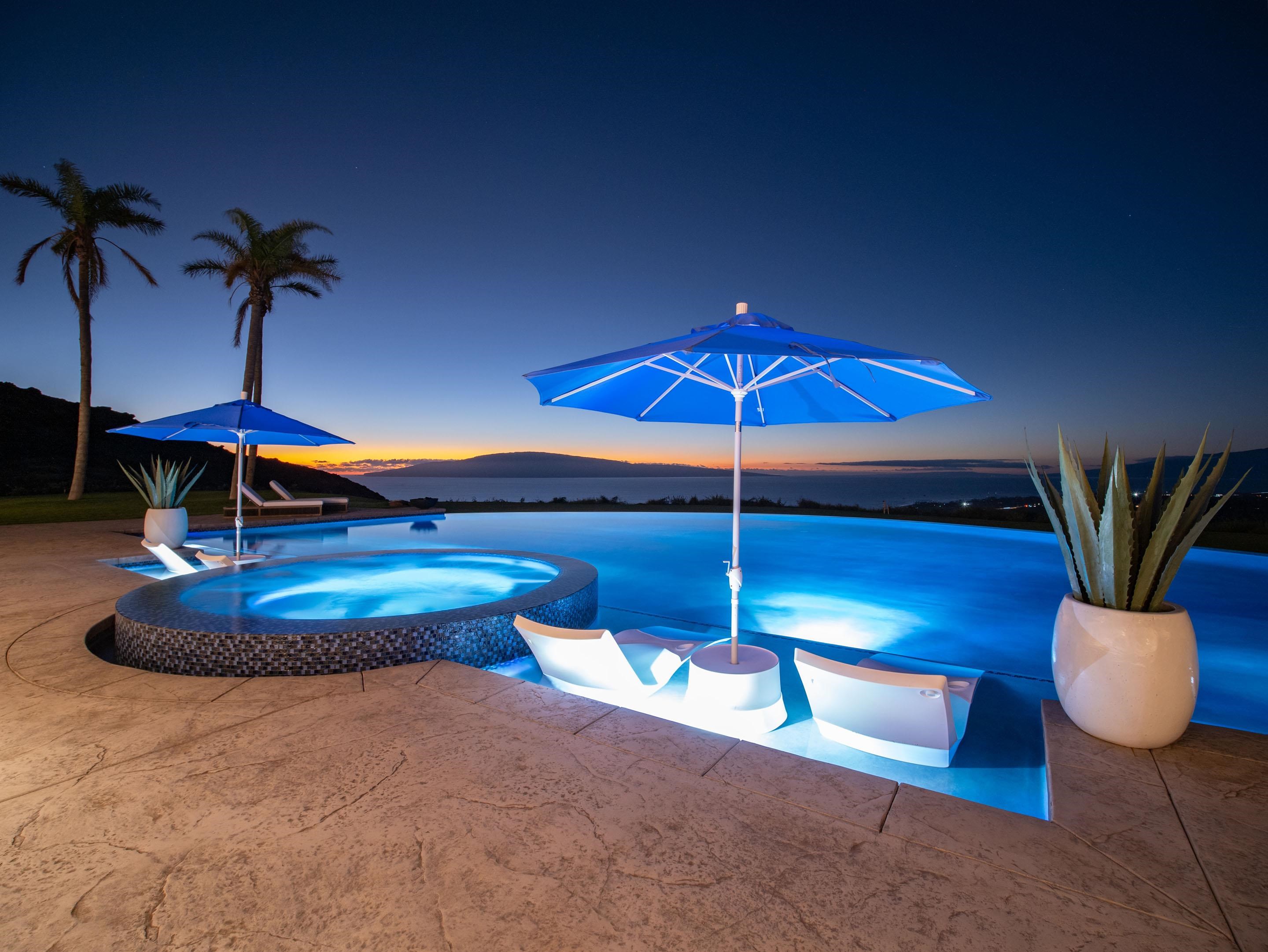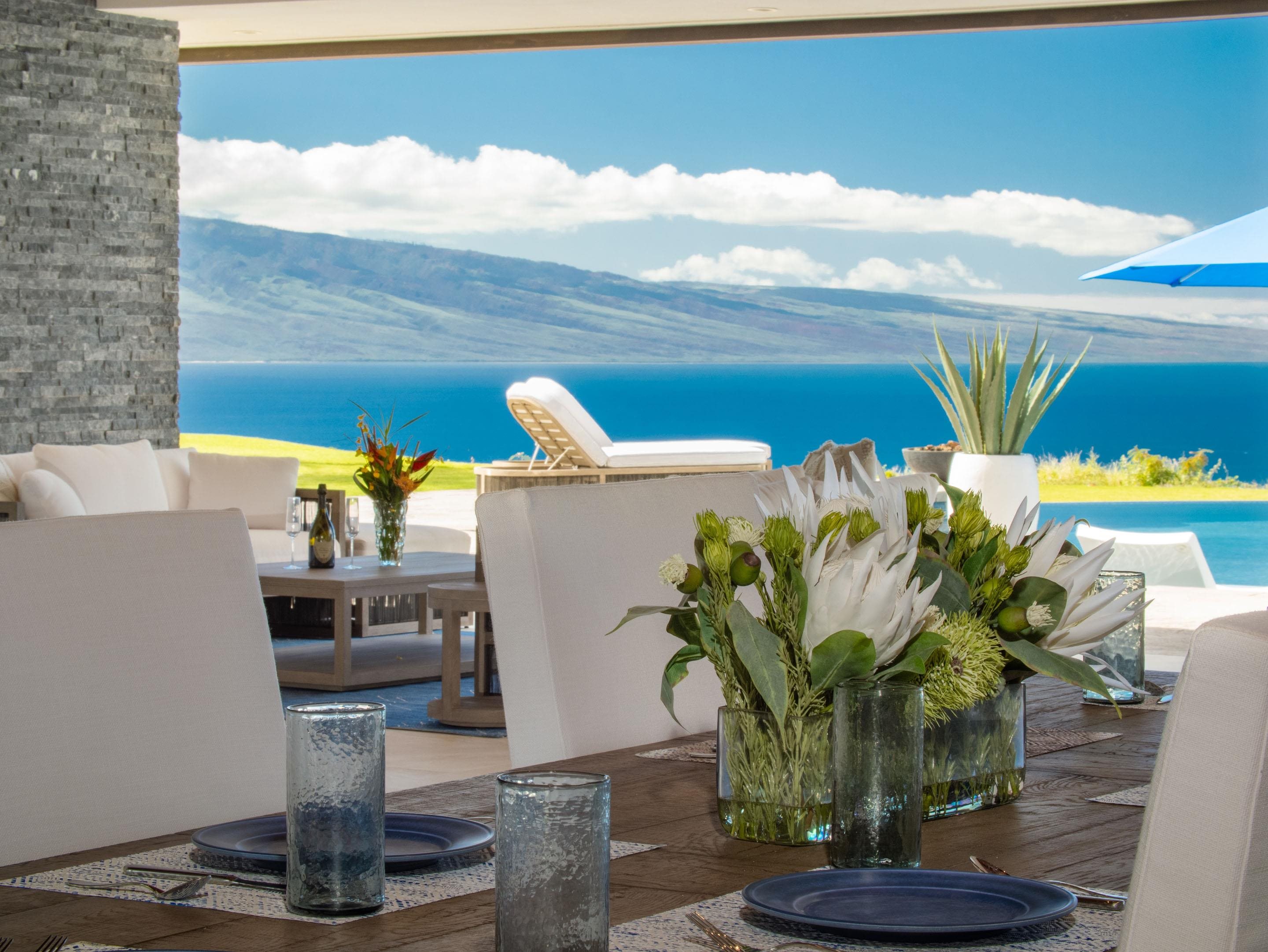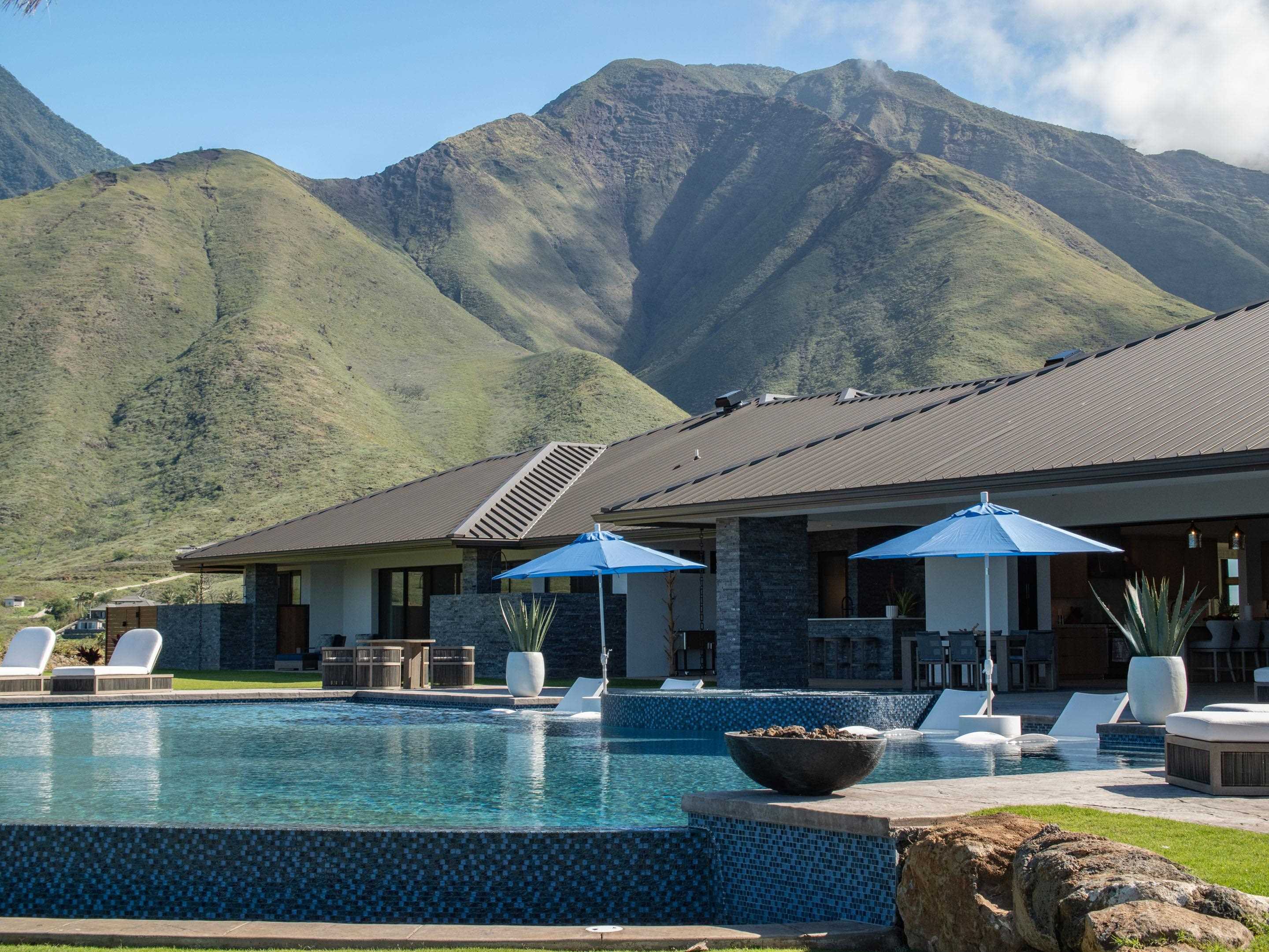 Commanding one of the largest and most remarkable panoramic ocean views anywhere in the Hawaiian Islands, the residence at 426 Wailau occupies a truly iconic location in the uppermost heights of Launiupoko. This 25 + acre, agriculturally-zoned mountain top retreat offers an exclusive Westward perspective of the Auau Channel that spans from Sweetheart Rock on Lanai almost completely to Elephant Rock on Molokai. After driving through the gated entrance you will feel the collective magnitude of the property and anticipate the comforts found inside this ambitious, newly-constructed residence. In the spring of 2023, after 18 months of construction, the renowned Imagine It Builders delivered a modern luxury masterpiece with 6,682 square feet of single-level interior living space designed to occupy two expansive wings as well as a central open living area and kitchen. The North Wing features the primary suite with not one, but two, full en-suite bathrooms, including a steam shower and soaking tub. The North Wing, connected to the 4 car garage, also features a powder room in the hall, a pantry, and laundry room. The South Wing features 4 bedrooms, all with ensuite baths, a fully outfitted gym, and a flexible room for entertaining complete with wet bar. From the living area, massive retractable sliding glass doors open up to almost 2,000 square feet of covered outdoor lanai space with a 70 ft wide pool and 12ft wide hot tub. An outdoor kitchen and bar complement the lanai while all of the bathrooms feature their own private, connected outdoor showers to rinse off when coming back into the home. Every material finish has been thoughtfully designed and impeccably constructed, it isn't hyperbole to say that there are simply too many amazing features to list in a few paragraphs. This is one you will have to see to believe!