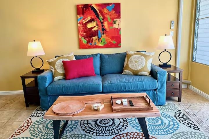Wake up to panoramic ocean views every day from this beautifully remodeled unit. Island Surf #307 is a business-zoned, fully air-conditioned 3rd-floor one-bedroom condo in the highly desirable Island Surf complex in South Kihei. Enjoy Maui sunsets from the private lanai or sit inside with the newly installed wall of double-pane windows and sliding door that stretch across the entire living room ensuring a quiet and comfortable interior space. This unbeatable location is across the street from Kalama Beach Park and Cove Beach, two of South Maui’s most popular spots for surfing, paddle boarding, and sunset viewing. This stylish unit features an open-concept living, kitchen, and lanai layout designed for relaxed island living. The remodeled kitchen is fully equipped with modern appliances and ample storage, while upscale furnishings, island-inspired art, and ceiling fans enhance comfort throughout. The spacious bedroom offers a queen bed, large closet, dedicated A/C unit, and a 65” flat-screen TV. The living area includes an impressive 85” TV, perfect for unwinding after a day at the beach. Additional highlights include in-unit washer/dryer, dishwasher, and high-speed internet. The Island Surf complex offers elevator access, a heated pool, BBQ area, and free unassigned parking. Street-level retail adds exceptional convenience, including a grab-and-go market, sushi restaurant, spa, dive shop, and local boutiques. Next door, the extremely popular South Maui Gardens provides a lush tropical setting with a touch of Zen, popular food trucks and a coffee shop. Centrally located near dining, shopping, and outdoor activities, this condo is an excellent opportunity for a primary residence, second home, or investment property in one of South Maui’s most desirable locations.