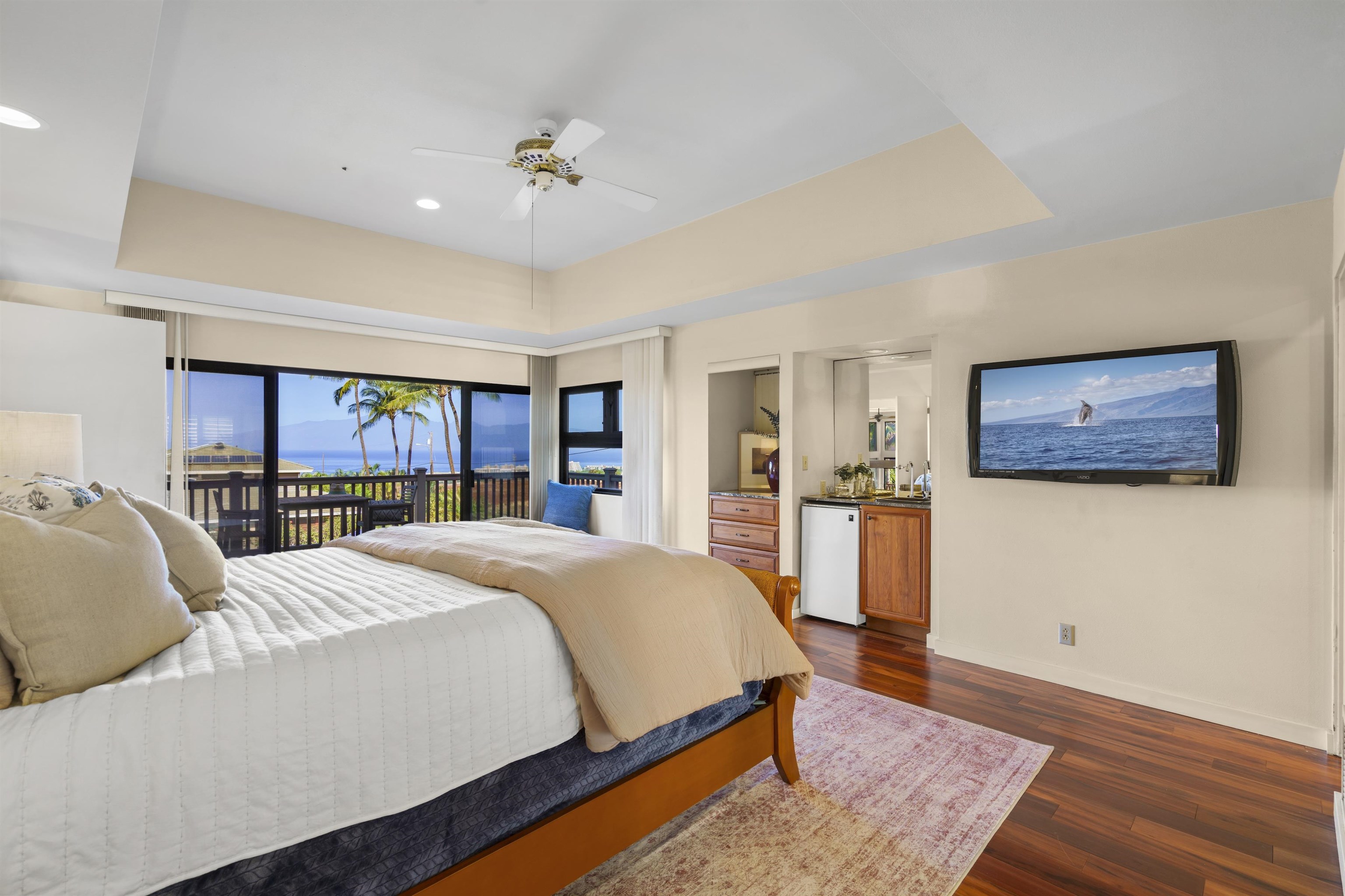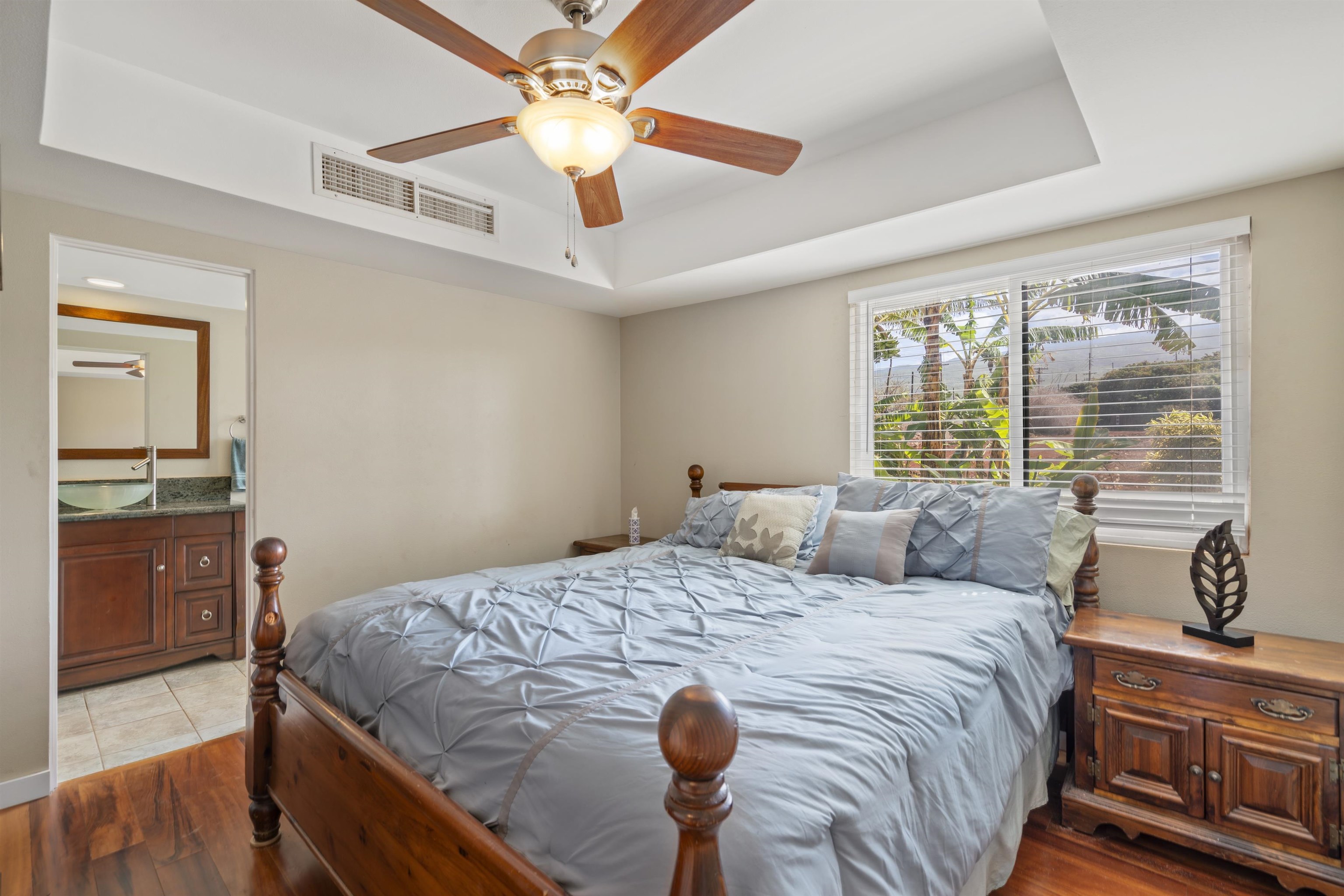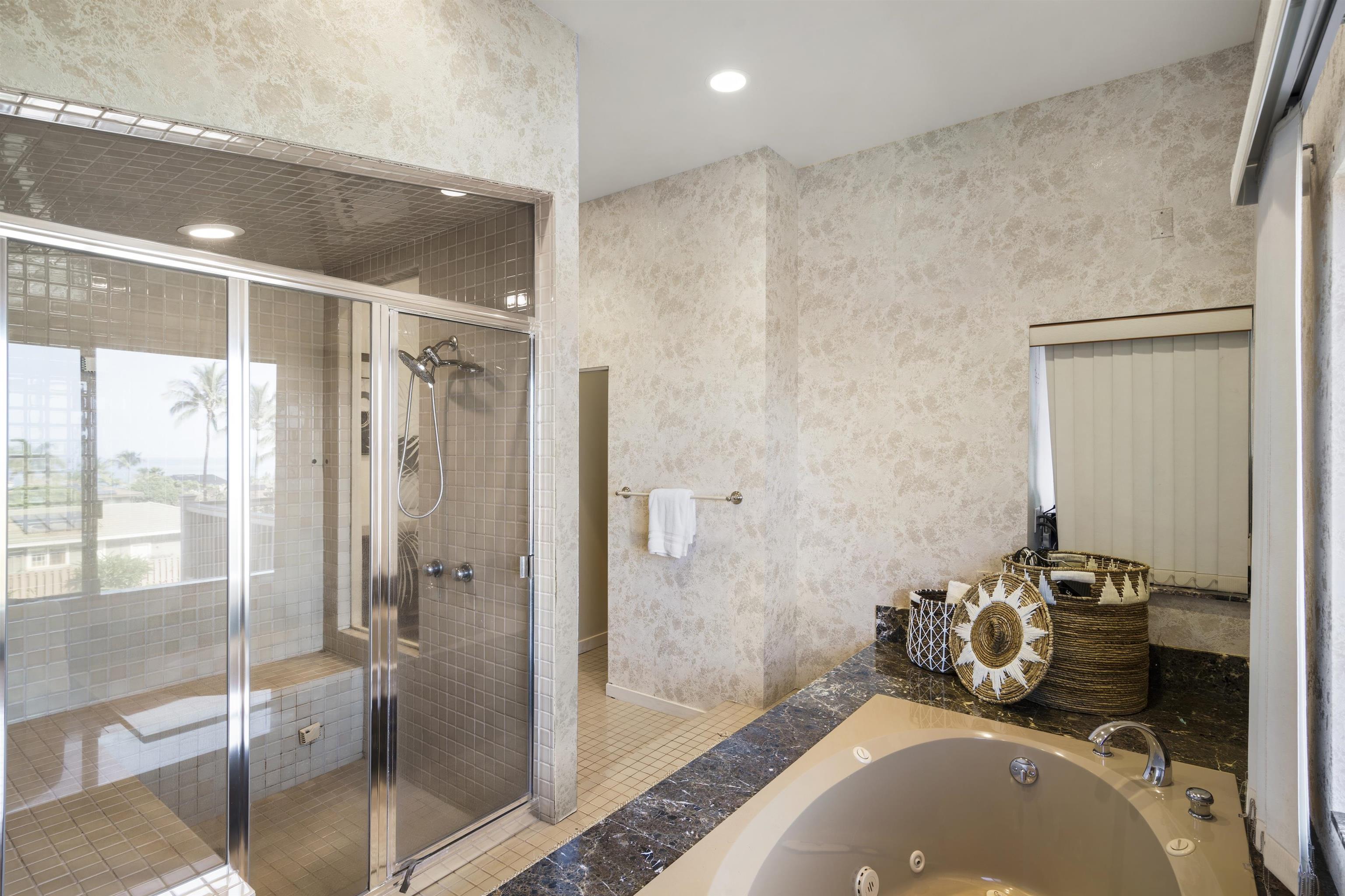 Poised at the top of a quiet cul-de-sac in the Kaanapali Hillside, 39 Hakui Loop presents a rare opportunity to own a private West Maui estate spanning two separate lots. Elevated on the premier row of the neighborhood, the property enjoys exceptional privacy, expansive ocean and outer-island views, and seasonal whale watching. The 3,785-square-foot split-level main residence is defined by dramatic 10- to 16-foot walls and thoughtfully scaled living spaces designed for both everyday comfort and refined entertaining. The home offers four bedrooms and three and one-half bathrooms, including two generously sized primary suites. The upper-level primary suite captures commanding views and features a spa-style bathroom with a steam room and a jetted soaking tub. Living areas include a formal dining room, an expansive living room, a dedicated office, and seamless indoor—outdoor kitchen and entertaining spaces. Hardwood, tile, and marble flooring are carried throughout. Complementing the main residence is a detached 432-square-foot ohana, currently configured as a pool house and entertainment room with a full bathroom and wet bar, offering flexible auxiliary space that enhances the home’s resort-style setting. Outdoor amenities are designed for relaxed island living, featuring a solar-heated swimming pool, hot tub, outdoor sauna, generous lawn, lush tropical landscaping, and multiple spaces for gathering and retreat with the added privacy of a six-foot stone privacy wall. Additional highlights include a two-car attached garage, ample storage, an owned 69-panel photovoltaic solar system, and a hard-wired propane generator for added reliability and convenience during power outages. Secluded, elevated, and elegantly composed, 39 Hakui Loop offers privacy, scale, and exceptional view exposure in one of West Maui’s most coveted residential enclaves.