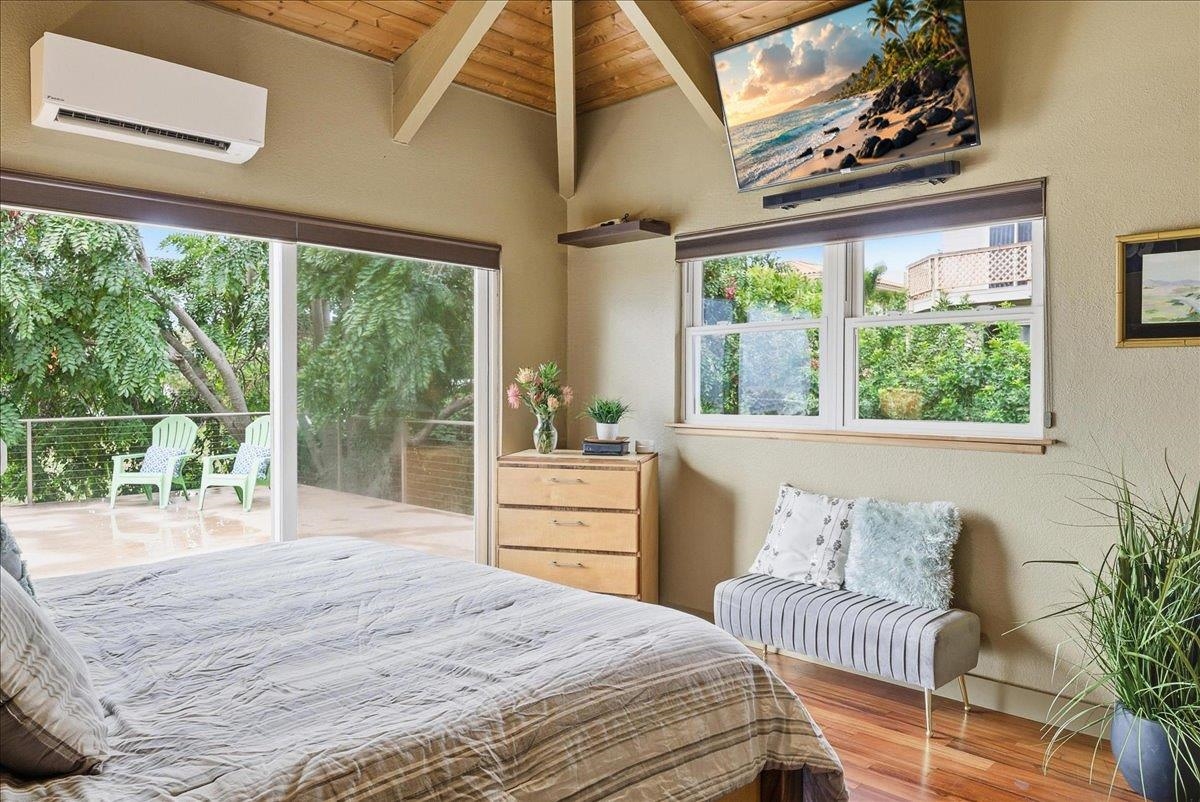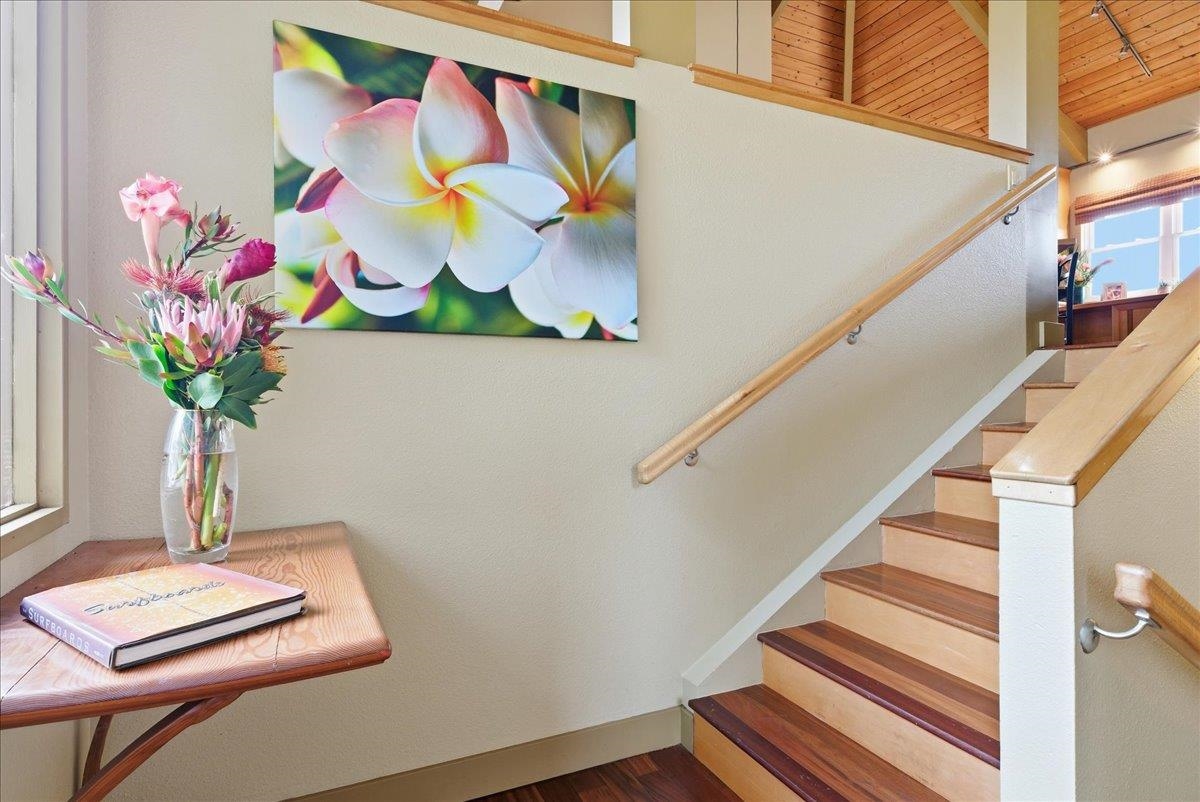 Positioned at the end of a peaceful South Maui cul-de-sac, this elevated island residence captures ocean views and golden sunset skies from its expansive lanai – a daily reminder of why Maui living is so coveted. Designed to embrace light and airflow, the open-concept interior unfolds with effortless coastal elegance. The kitchen and living spaces were thoughtfully remodeled to create a refined yet welcoming atmosphere, ideal for intimate evenings or sunset gatherings. Custom woodworking by a Maui craftsman is showcased throughout – from detailed window sills and stair railings to built-in accent tables and a bespoke entertainment center – adding warmth, artistry, and architectural character rarely found in today’s homes. Walls of upgraded Milgard windows and sliding glass doors frame ocean vistas while enhancing energy efficiency. Step outside to the expansive lanai, where the horizon becomes your backdrop – perfect for alfresco dining, wine at sunset, and seamless indoor-outdoor living under the trade winds. Sustainability meets sophistication with 30 owned photovoltaic panels on net metering, providing impressive energy efficiency and long-term value as well as an insulated metal roof. Split-system AC offers comfort on demand, while thoughtful improvements throughout reflect pride of ownership. A private guest ohana with separate entrance (1 bedroom, 1 bath, kitchen and living area) offers elevated flexibility – ideal for extended family or distinguished guests. Set within a quiet, established neighborhood known for its sense of community and proximity to South Maui’s world-class beaches, Kalama Park, and the conveniences of Kihei town, this property delivers a rare balance: privacy, craftsmanship, efficiency, and timeless ocean views. An exceptional South Maui retreat where sunset becomes ritual and island living feels both refined and effortless. Offered furnished.