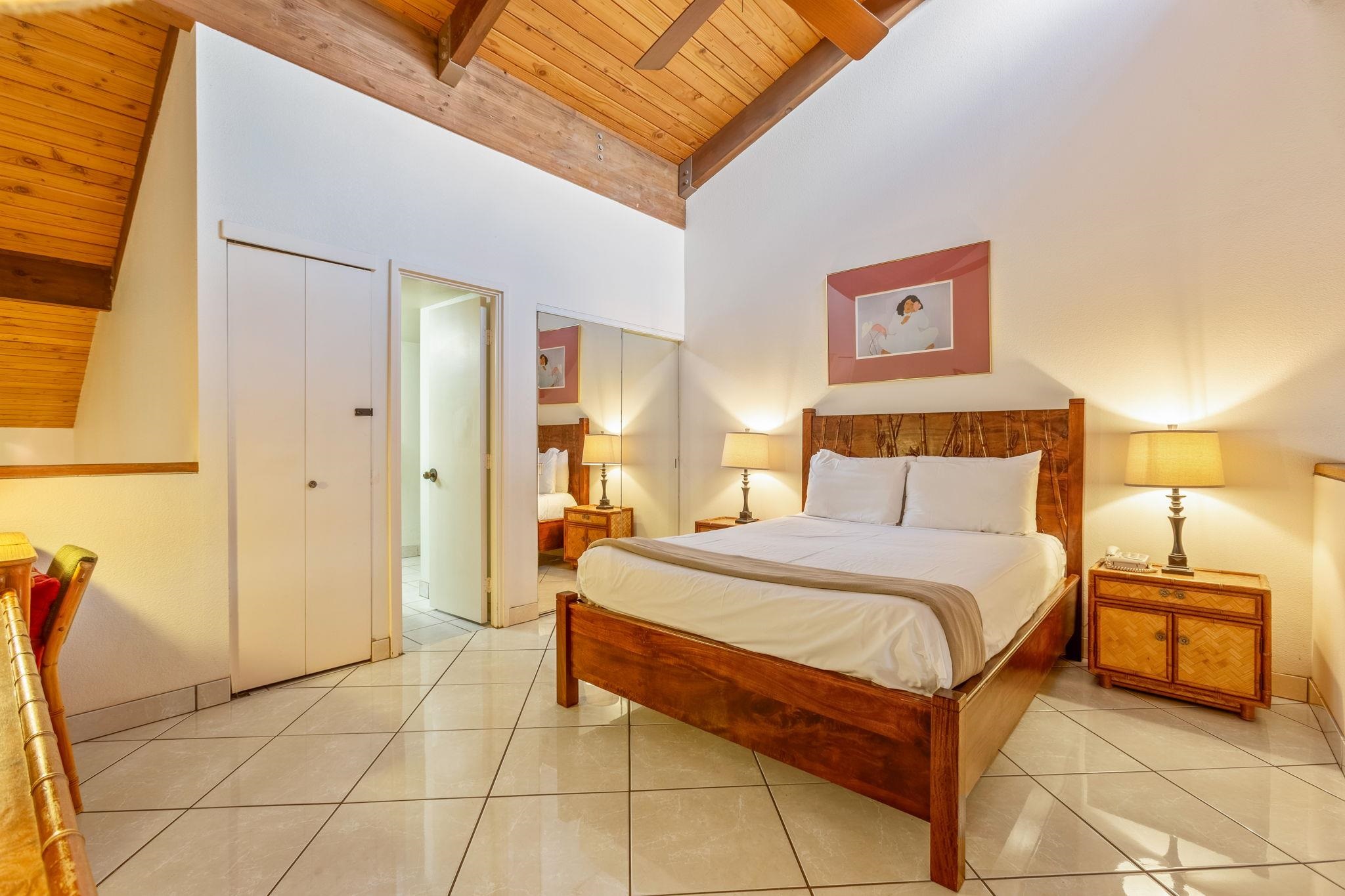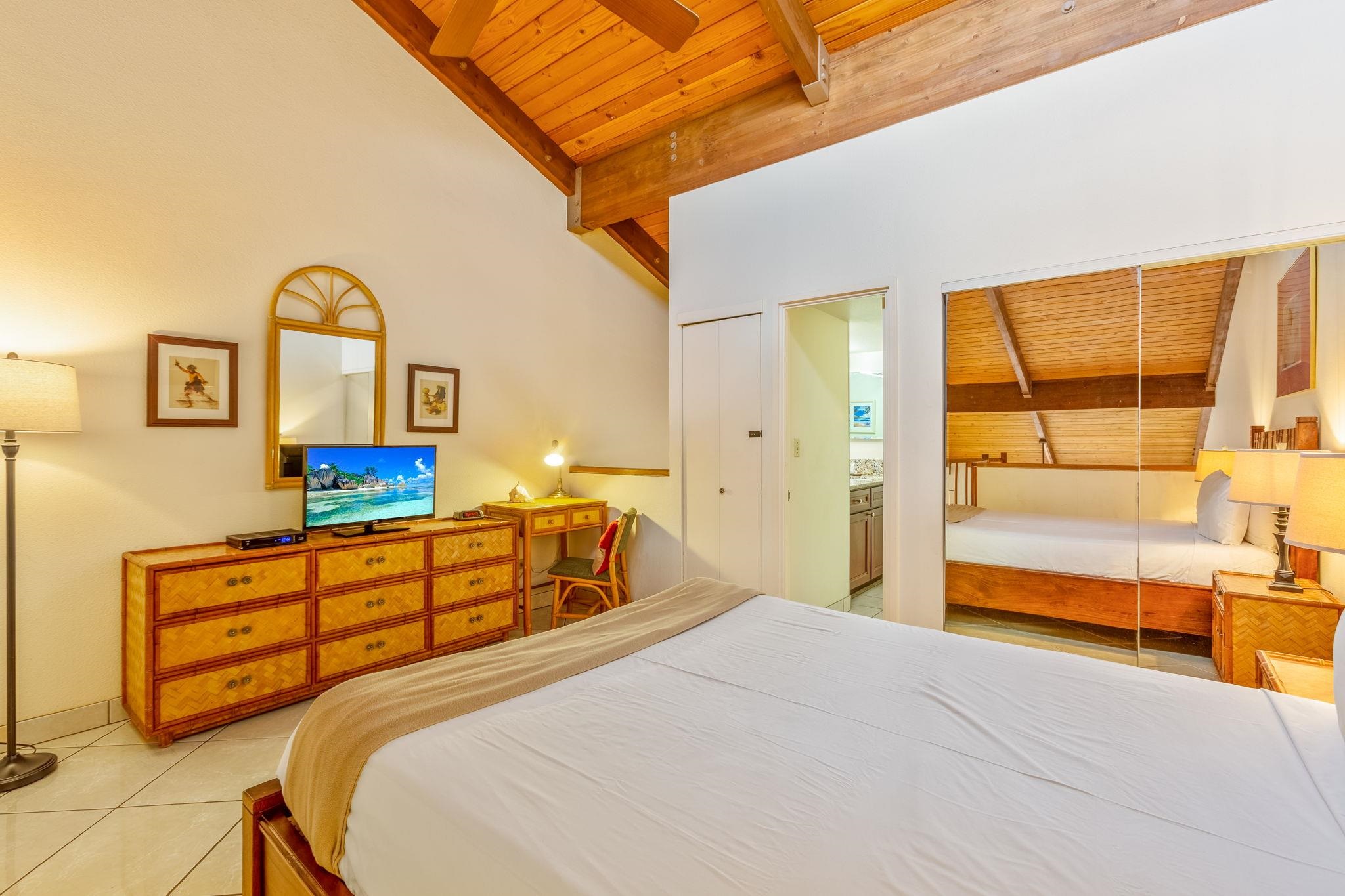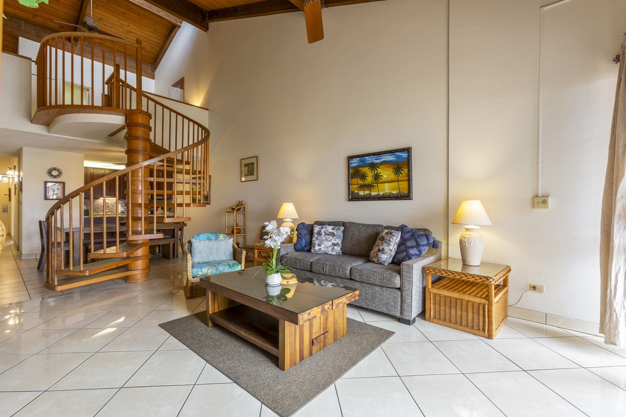 Opportunity Knocks with this 2 bedroom, 2 bathroom, large lanai condo, at Kamaole Sands. Priced to sell with loads of potential, for the next owner to make it their own. The condo is being sold fully furnished and is equipped with features including partial ocean and mountain views, top floor location, vaulted ceilings, a spacious lofted primary bedroom, stainless steel kitchen appliances, a well equipped kitchen with granite counters, and an in unit washer and dryer. Located just steps away from Kamaole Beach Park III, makes this an ideal location. Resort amenities include a children’s wading pool, an adult and family hot tub, fitness room, ping pong table, gas BBQ area's throughout the resort, 3 pickle ball courts and 2 tennis courts. Kamaole Sands is an extremely popular resort, as the condo is within walking distance to restaurants, shops, and a number of great beaches in South Kihei.