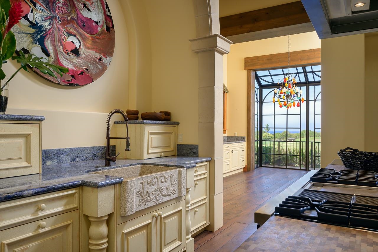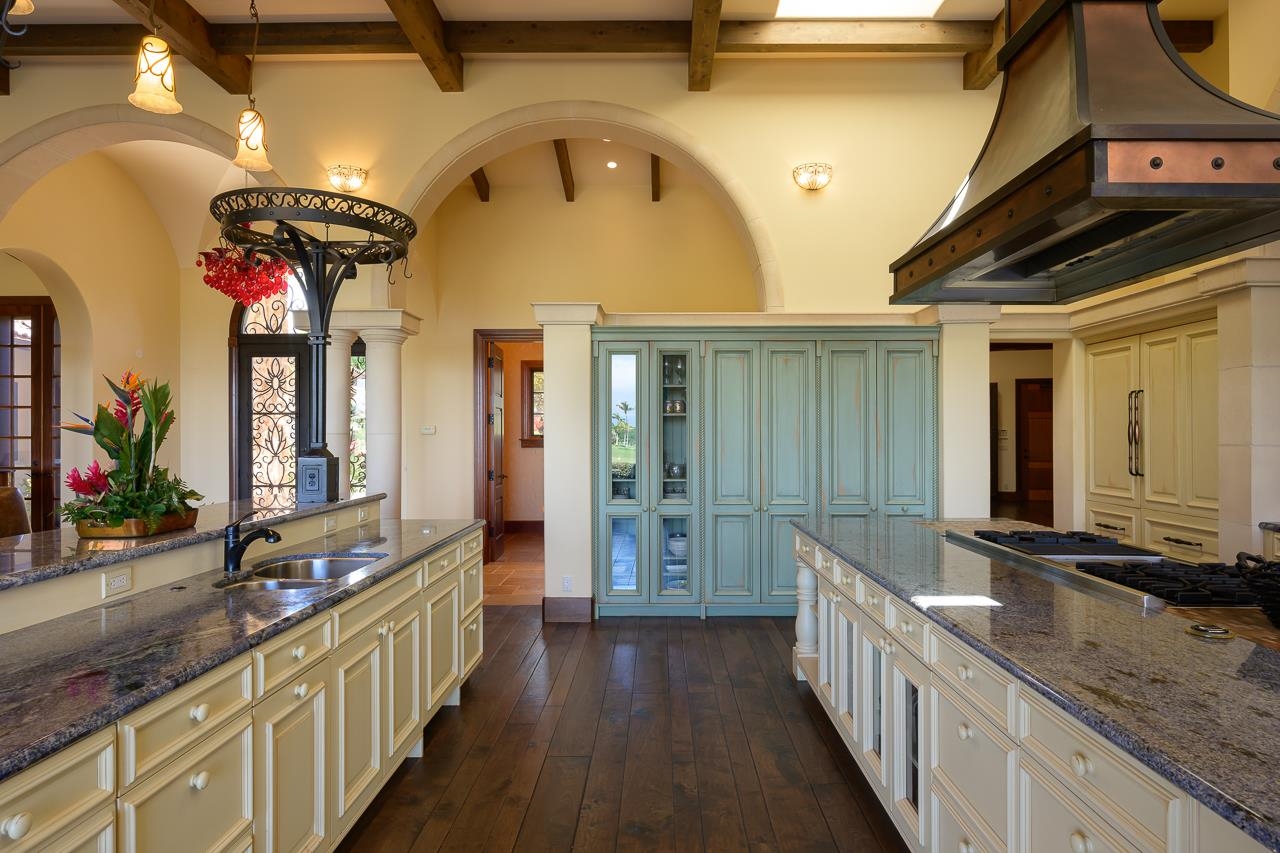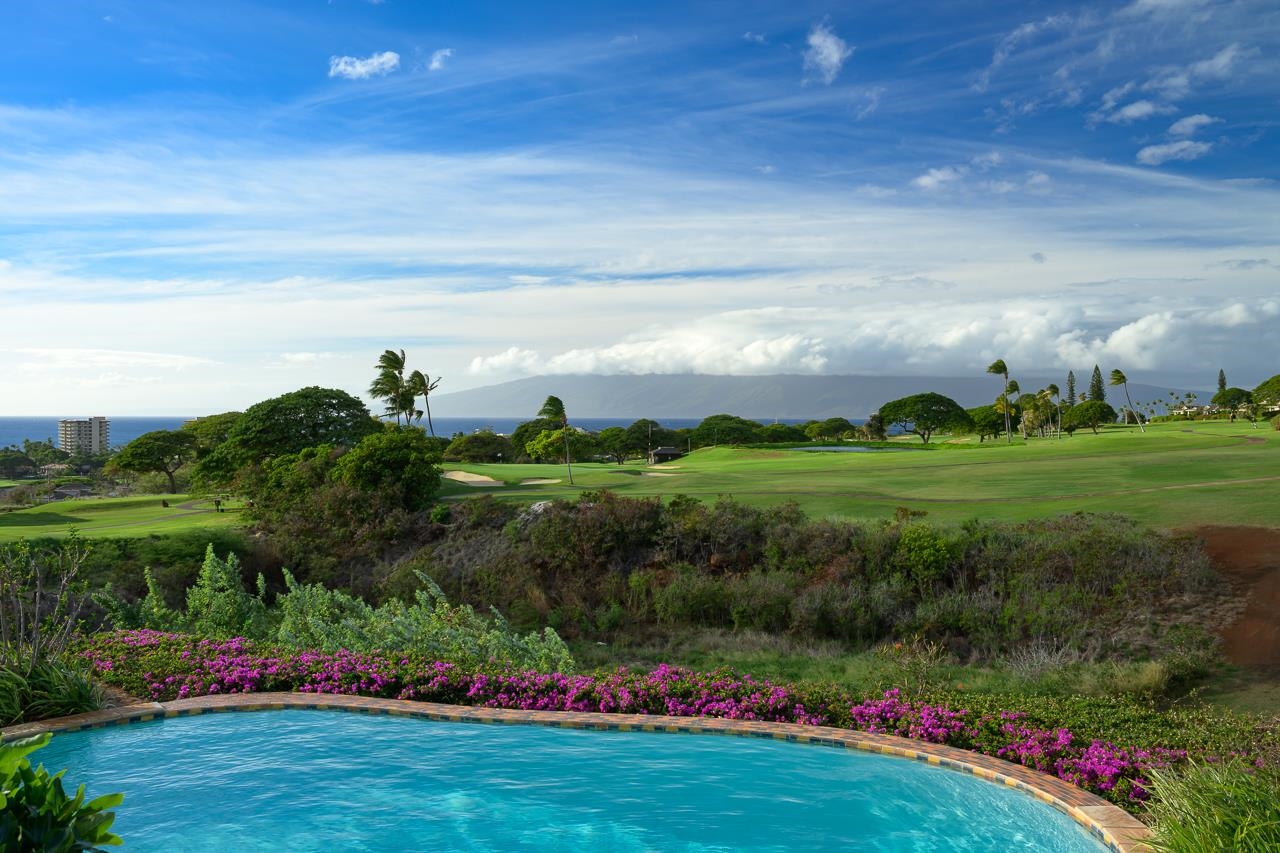 Embrace this one-of-a-kind Tuscan Villa in Paradise! Perfectly perched on the premium parcel located in Phase 1 of the exclusive gated community known as Lanikeha (within the Kaanapali Golf Estates), the estate offers spectacular breathtaking sunset ocean views, island (Molokai and Lanai), golf fairway (hole #7 of Kaanapali's world-famous Kai Course) and the Kaanapali resort. Exquisitely envisioned & constructed with the finest custom materials imported from around the globe, every aspect of this Villas reveals the best of luxury island living; 16ft. vaulted ceilings (with ceiling wood beams), Brazilian travertine floors, hand scraped walnut wood floors, crown & baseboard hardwood molding, hand-cast stone columns, arches & accents, domed & beamed ceilings and custom cabinetry by Williams Ohs. Further evidence of this enchanting décor includes the Blue Bahia Custom Granite & specimen Quality Onyx Counter tops, Gemstone quality rose quartz master vanity & 18K Gold Plated & crystal fixtures. Appliances include Viking, Sub-zero & Bosch systems This 3 bedroom, 4.5 bathroom single-level estate also offers an office, surround sound HD theater (complete with mini-stage & custom seating), sound & security system, heater pool & spa with complete outdoor pool-side kitchen (accessed via multiple ramp pathways) & three vehicle garage amenity. Meticulously maintained, estate improvements include the painting of the entire exterior estate & driveway (2025) & new washer & dryer (2026) Lanikeha is West Maui’s newest gated community; 110 acres with 132 parcels, Lanikeha Club House offers community spa, pool, & exercise room. Monthly maintenance fees include the following: $248.85 for Kaanapali Golf Estates (paid quarterly), $708.25 for Lanikeha (paid monthly) for a monthly total of $957.10. The 2025/2026 monthly real property tax is $1,750 (classification: owner occupant). Information may not correspond to public records. Buyer/buyer's agent to confirm all information. YOUR Time is Now.