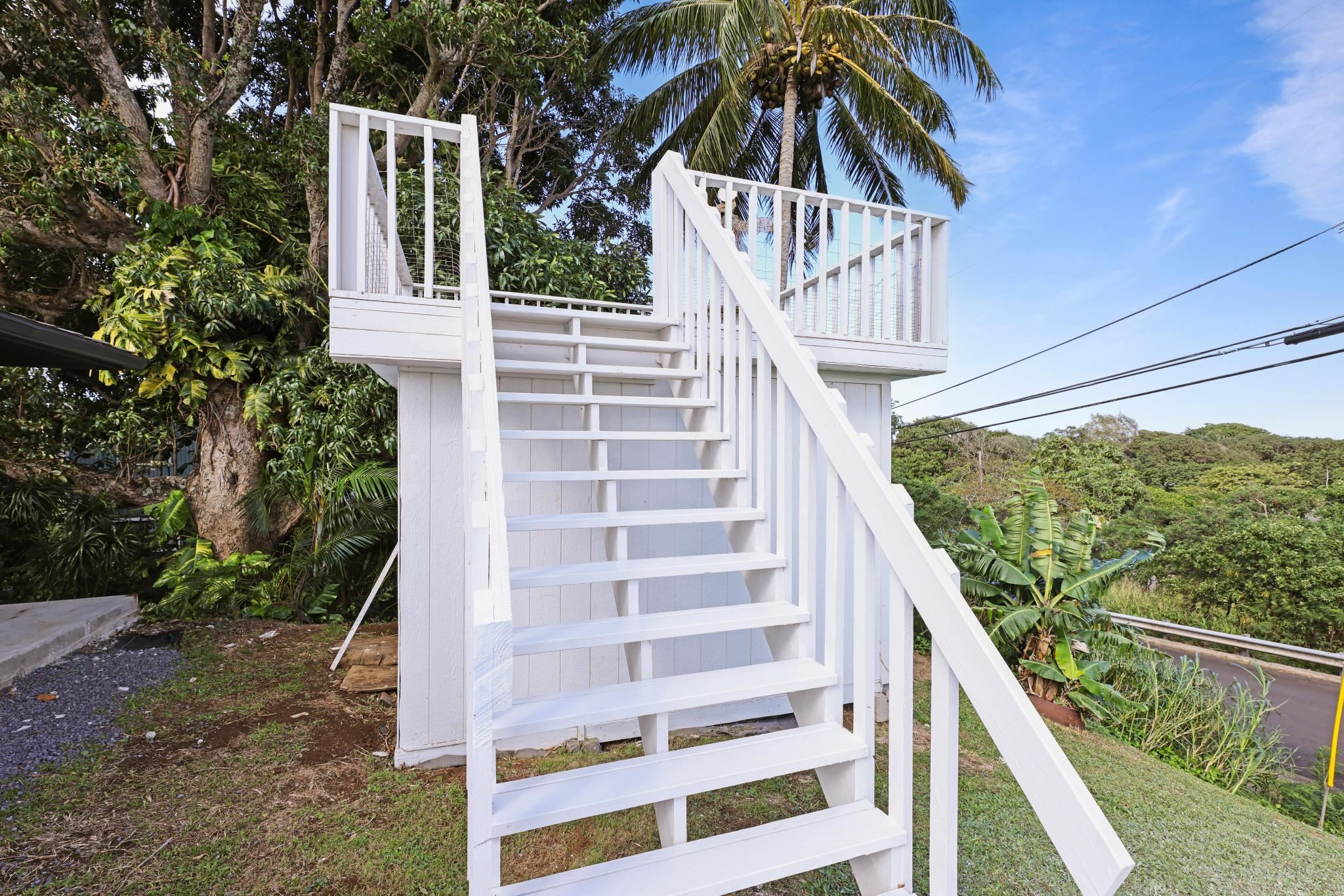 Welcome to this beautifully renovated single-story home featuring a spacious kitchen and living room designed for comfortable everyday living and effortless entertaining. Down the hallway are three bedrooms and a bathroom. A privately situated fourth bedroom featuring its own entrance, living space, wet bar, and bathroom offers a versatile extension of the home. Ocean and Haleakala views enhance the property, and the elevated deck above the recently constructed 120-square-foot storage shed provides an ideal setting to relax and take in the scenery. The back yard also offers a very large private patio that can be enjoyed in many ways. Ideally located within walking distance to the Haiku Community Center and Elementary School, just five minutes to Haiku Town Center with all its amenities, or Ho‘okipa Beach Park, ten minutes to Paia, and 25 minutes to the airport, this home offers both convenience and lifestyle. The sellers have completed numerous upgrades, including a roof replacement just one year ago, ensuring peace of mind for years to come. No HOA fees and a welcoming neighborhood atmosphere that reflects the spirit of Aloha. Move in ready! Schedule a viewing today to see and experience this property for yourself.