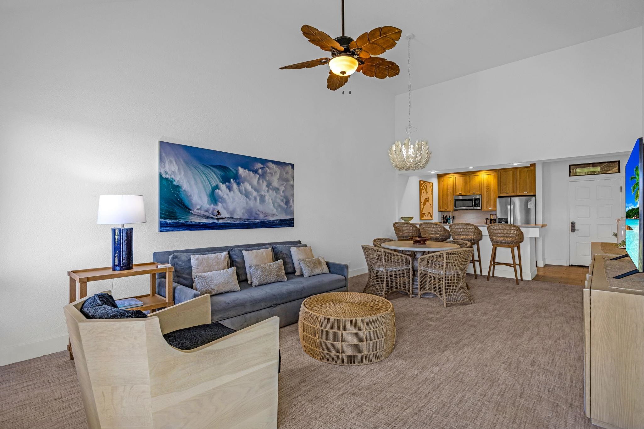 Imagine yourself in this top floor, two-bedroom unit on your lanai looking out over the lush green 2nd fairway of the Wailea Blue Golf Course to the bright blue Pacific Ocean. Recently upgraded this charming unit offers peace and tranquility after a busy day at the beach, golf course or sightseeing. Wailea shopping center is close by as are world class restaurants. Sold fully furnished. Please contact your favorite Realtor for a showing today.