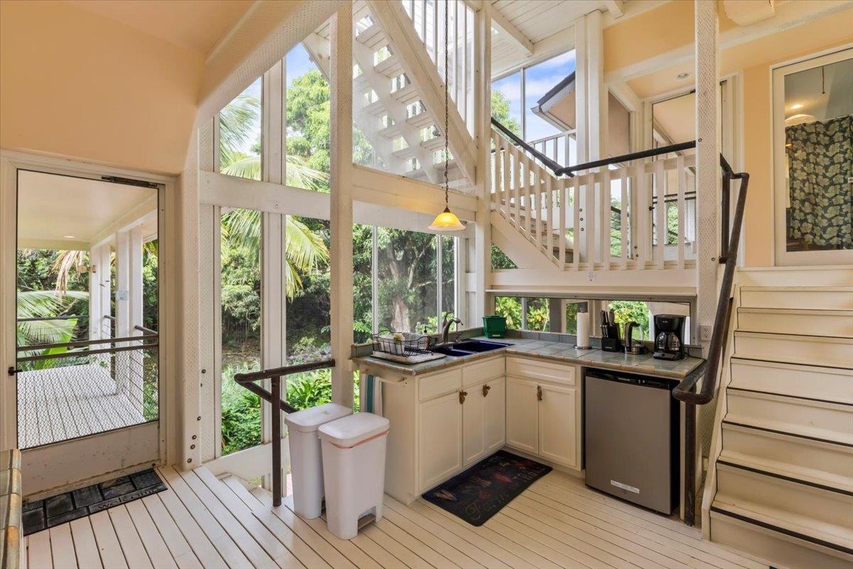 Welcome to Papalani - where the idyllic Hana coastline meets an artistic vision of multi-dwelling living. This tropical 1 acre estate along the Waiohonu stream and across from the Venus Pool offers a unique opportunity for shared ownership, rental income, or a private retreat. The property features 4 distinct living spaces, thoughtfully positioned for privacy and flexibility. The spacious main residence has multiple lanais, vaulted ceilings, and custom finishes. A grand covered entrance and curved staircase leads to the open living room and kitchen with abundant natural light and a primary suite with soaking tub, shower, bidet, and artist’s studio. Downstairs is an additional living area and bedroom, 1.5 baths, and 2 outdoor showers. Adjacent to the main house is a 2 bedroom guest suite with a screened kitchenette and lanais. The 1 bed 700sf ohana is well built with a full kitchen, bath, and laundry. At the front of the estate is the original 656sf restored cottage with open layout, tall ceilings, tile floors, and an indoor/outdoor soaking tub and shower. Located directly across from Waioka Pond (Venus Pool) and just 3 minutes from iconic Hamoa Beach, the property is close to Hana’s markets, cafes, & art galleries. Though the structures are solidly built, they reflect their age - offering a remarkable canvas for the visionary buyer to reimagine this estate in their own style.