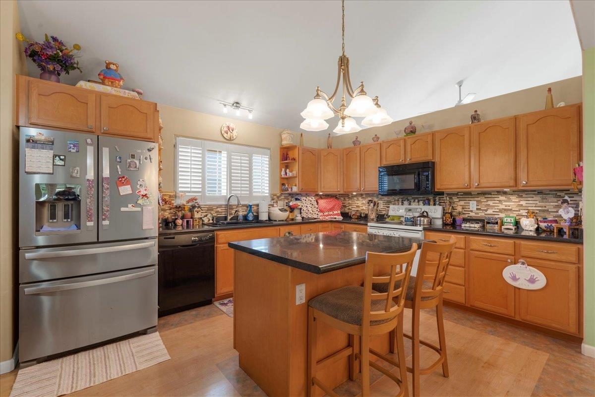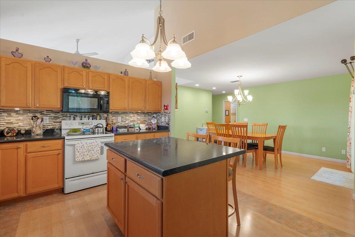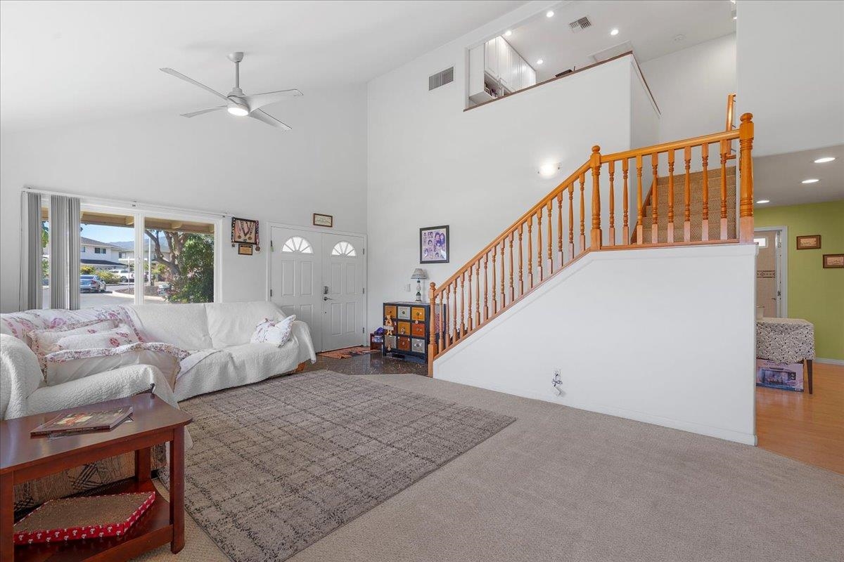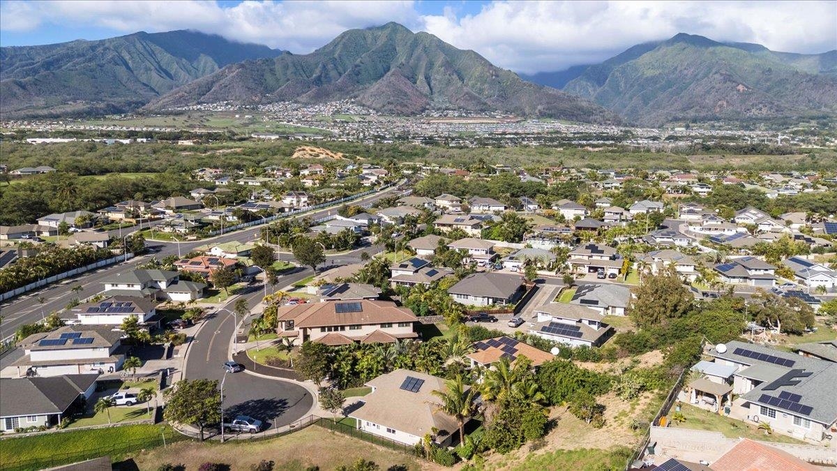 Welcome to this well-maintained home located in the desirable Maui Lani subdivision of Kahului. Tucked away on a quiet cul-de-sac, this property sits on a large 11,012 sq ft lot (approximately 0.25 acres), offering privacy, rare outdoor space, and room to expand, garden, or further customize. The home features a versatile two-level floor plan with one bedroom and one full bath on the main level, ideal for guests, multi-generational living, or a home office. Upstairs, you’ll find three additional bedrooms and two full baths, providing excellent separation and functionality. The living room showcases soaring vaulted ceilings, creating an open, airy feel and a strong sense of space and natural light. Enjoy year-round comfort with central air conditioning throughout the home, and an open dining area off the kitchen that flows easily for everyday living and entertaining. The property has also been upgraded to a 200-amp electrical service, adding long-term value and flexibility for future improvements. Conveniently located near schools, medical facilities, shopping, restaurants, and The Dunes at Maui Lani Golf Course, this home combines comfort, space, and location within one of Kahului’s most established neighborhoods. A must-see to truly appreciate the quiet setting, generous lot size, and thoughtful layout.