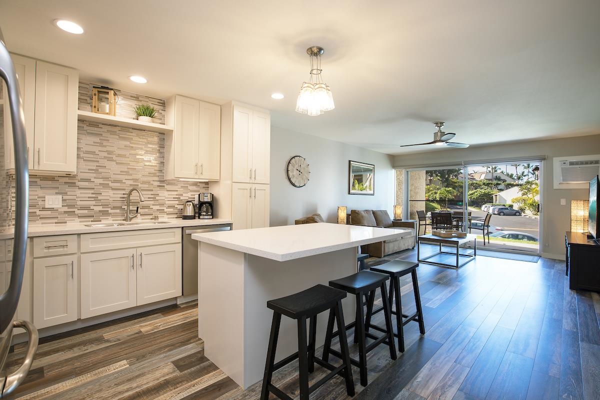Remodeled, Turnkey, and Priced to Sell! Unit 126 at Hale Kamaole is a rare find. This active vacation rental has been fully updated including rigid core flooring and comes completely furnished. Located directly across from Kamaole III, guests and owners love the prime location and resort amenities including two pools and tennis/pickleball courts. A premier South Maui investment offered at an aggressive price point. Act fast–this won’t last.