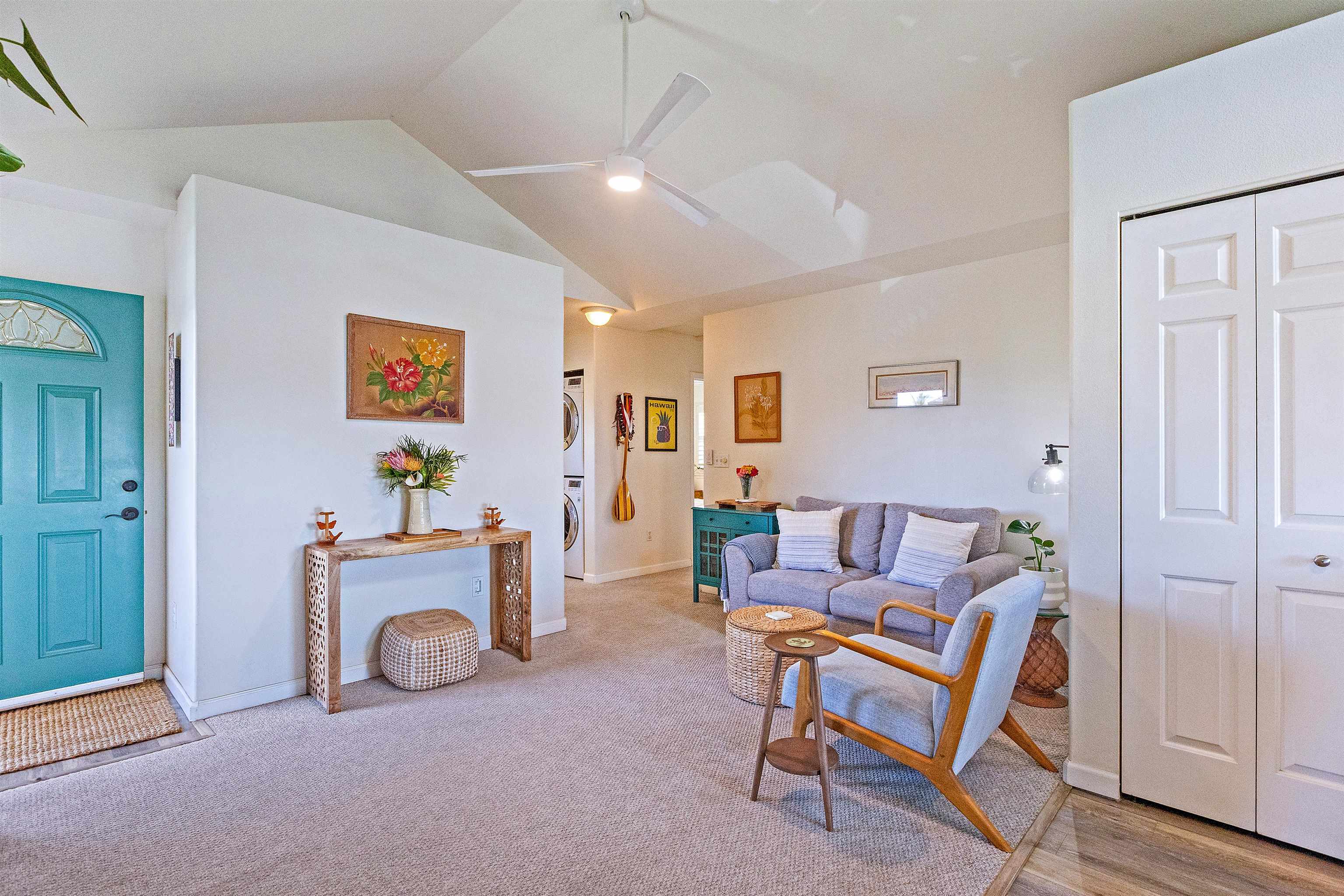 Awaken to the awe-inspiring views of Haleakala Mountain and savor your morning coffee on your relaxing lanai as the first rays of sunlight illuminate this bright and airy three-bedroom, two-bath residential condo at The Villas at Kenolio. Nestled at the edge of a meticulously maintained community, this second-floor upgraded end unit epitomizes island comfort and convenience, with its spacious interior design and its two side-by-side assigned parking stalls. Sunshine gracefully bathes the living spaces, enhanced by a cathedral ceiling in the main areas, cultivating an inviting ambiance whether you reside here year-round or seasonally. The Villas at Kenolio boasts a prime location near North Kihei’s acclaimed Sugar Beach and provides resort-style luxuries such as one of the largest private pools on the island, complete with lap lanes, a spa, fitness center, playground, BBQ stations, and lush tropical landscaping throughout. Association dues are inclusive of water, sewer, refuse, basic cable, exterior insurance, and upkeep of communal areas, ensuring low-maintenance ownership. Within a few minutes drive, you’ll find some of Maui’s liveliest pickleball courts, injecting a spirited and active touch to your daily island living. This pet-friendly community is crafted for true long-term residence (short-term vacation rentals are not allowed), fostering a tranquil atmosphere and a real sense of community among neighbors. Whether you’re seeking a primary home or a secluded island retreat to experience island living at its best, this presents a golden opportunity to immerse yourself in the quintessential Kihei lifestyle – complete with stunning beaches, mesmerizing sunsets, and captivating mountain vistas.