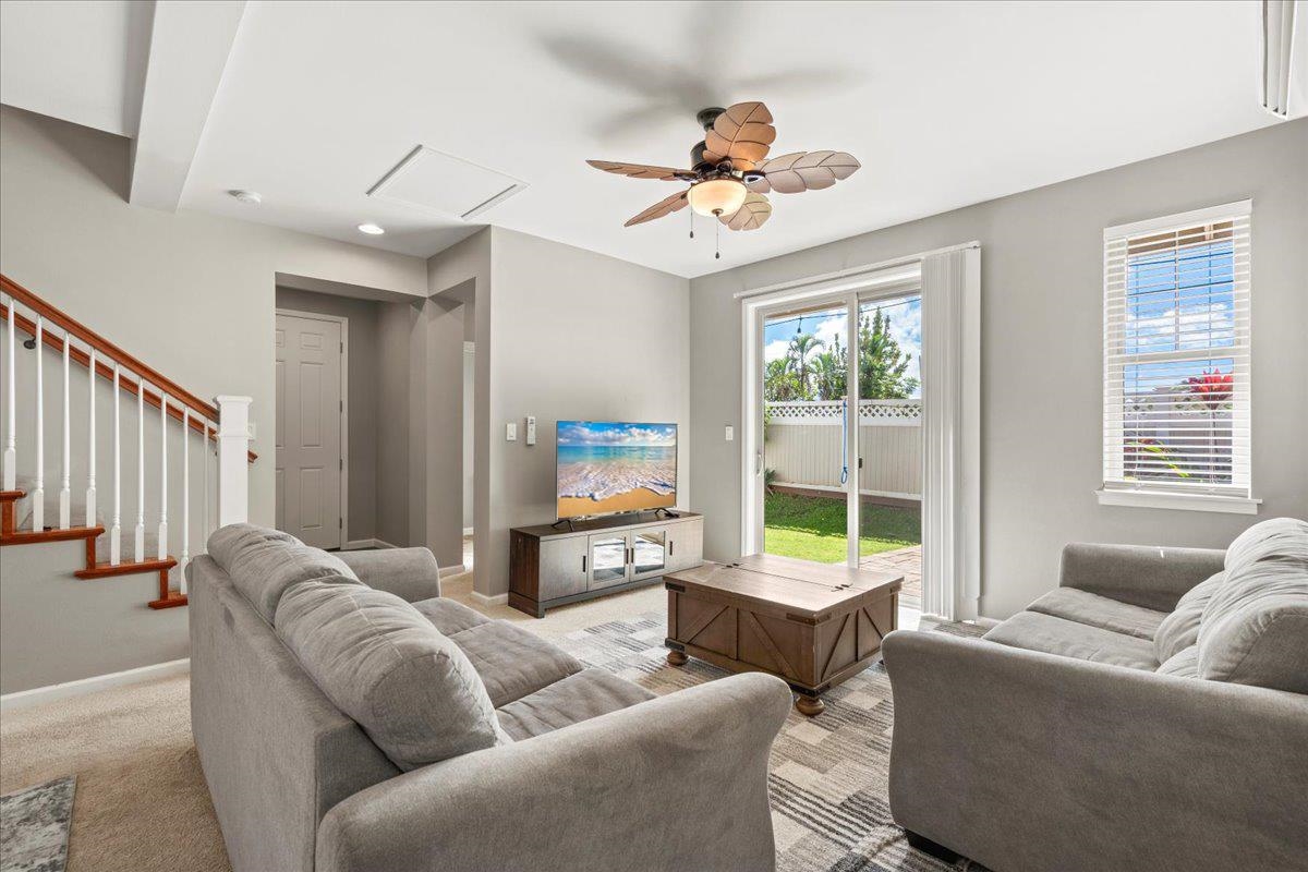 Also listed as a single-family home MLS#408843. Welcome to Kahoma Village. This 4-bedroom, 2.5-bath home, built in 2020, offers nearly 1,700 square feet of thoughtfully designed living space. Located directly across from the community park, you’ll enjoy open views and immediate access to green space right outside your door. Positioned near the Kenui Street entrance, the home offers quick and convenient access without driving through the neighborhood, making daily coming and going effortless. Inside, the layout is practical and comfortable, with 9-foot ceilings downstairs that create an open feel without wasted space. The kitchen features granite countertops and GE appliances, while the bathrooms are finished with quartzite counters for a clean, modern look. The landscaped yard includes Bermuda grass and a lanai that’s perfect for outdoor dining or relaxing. An attached two-car garage adds everyday functionality. Each room is equipped with its own split AC unit for individualized comfort, and a solar water heater helps keep energy costs down. The primary bedroom is spacious and designed to feel like a quiet retreat at the end of the day. Being offered fully furnished and truly move-in ready, everything is already in place so you can settle in immediately. You’re within walking distance to Baby Beach and just minutes from shops, grocery stores, restaurants, banks, and pharmacies, making everyday life simple and convenient. At this price, it represents one of the best values in Kahoma Village, especially considering the location, furnishings, and proximity to the beach. Vacant and easy to show. Schedule your private showing today.