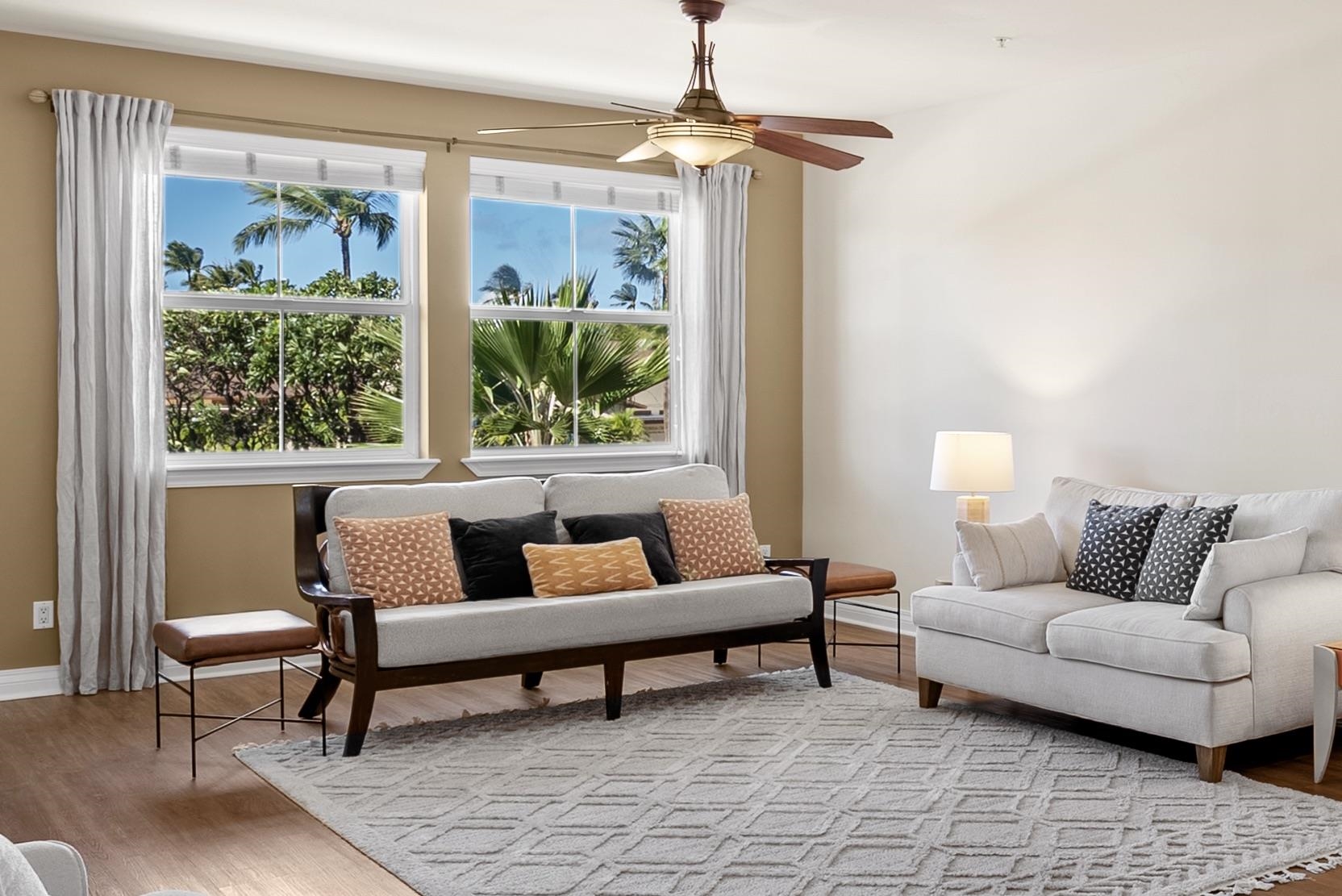 Rarely available live/work townhome in Kihei's ultra-conveniently sited Kai Ani Village! This tri-level 1,845 sq ft condo features 2 bedrooms with en suite bathrooms on the top level with a peek at the ocean from the primary bedroom. The second level offers 9 foot ceilings and a spacious open plan with kitchen, dining, living, powder bath, laundry, and a mauka facing lanai. The ground level provides a flexible commercial/residential space with prime visibility from S. Kihei Rd., two separate entrances, an attached 2-car garage, storage, and an ADA powder bath. Freshly updated and move in ready. Pets OK - buyer to verify details/HOA. Kai Ani Village is a short walk across the street to the beach, daily amenities, and services; while the property itself features a private resort style negative edge lap pool with baja ledge, spa, cabanas, chaise lounges, large pavilion with tables and seating, built in gas BBQs, prep area with sink, outdoor shower, and restrooms. Excellent opportunity for entrepreneurs, small business owners, or rental income.