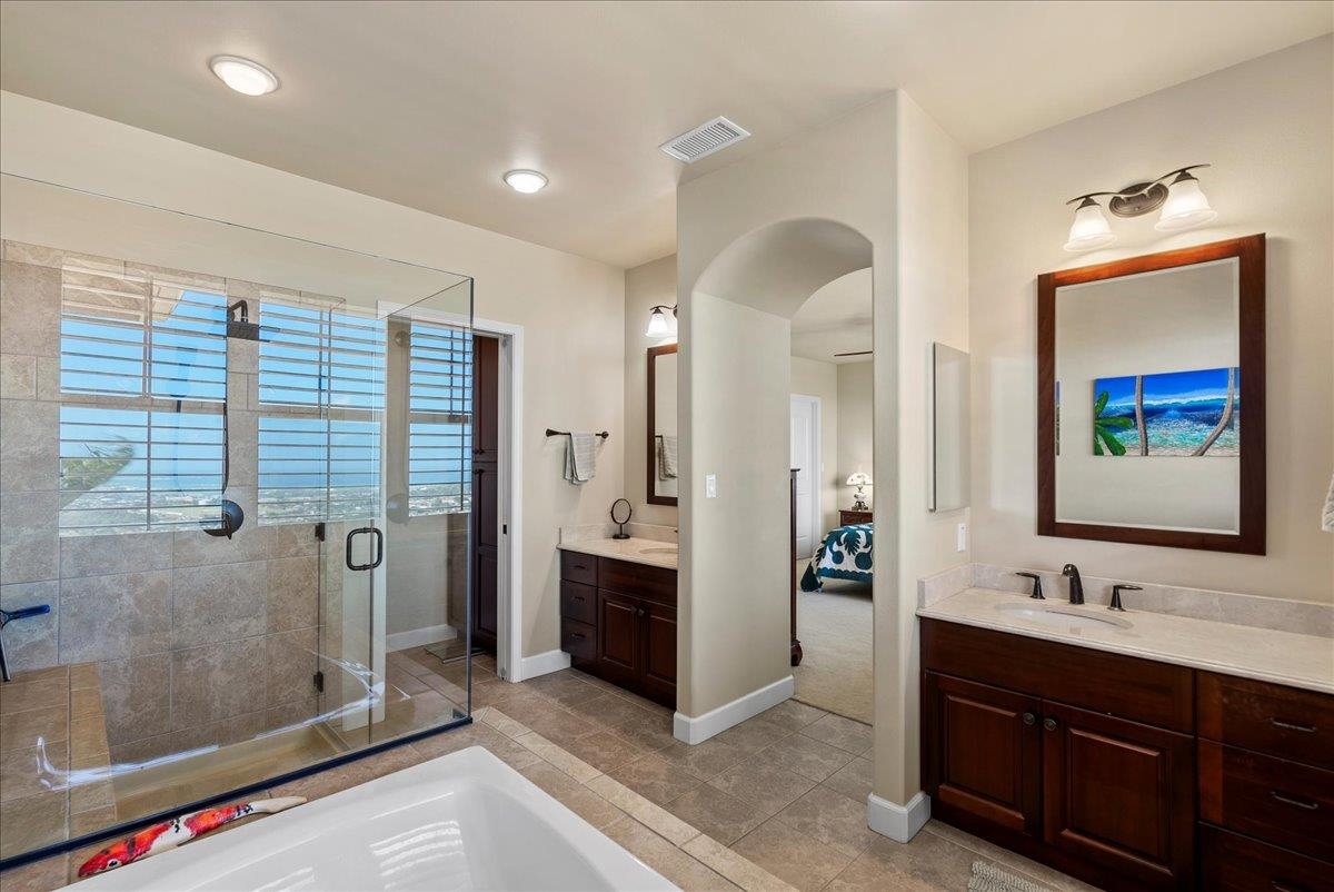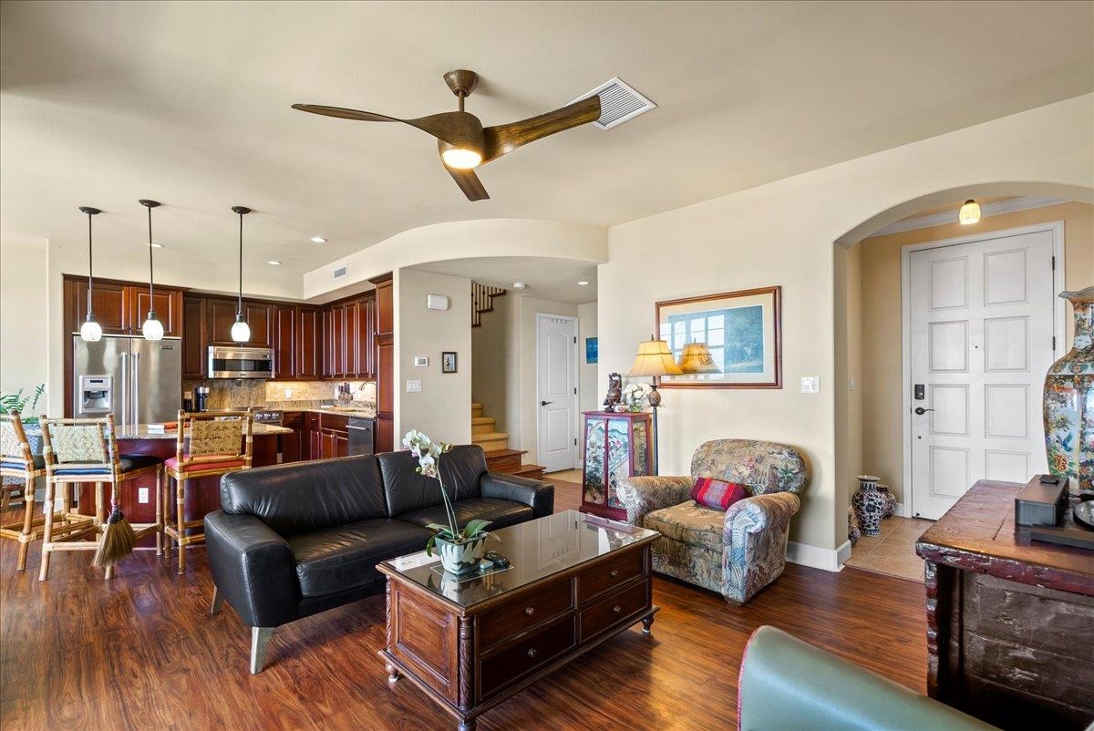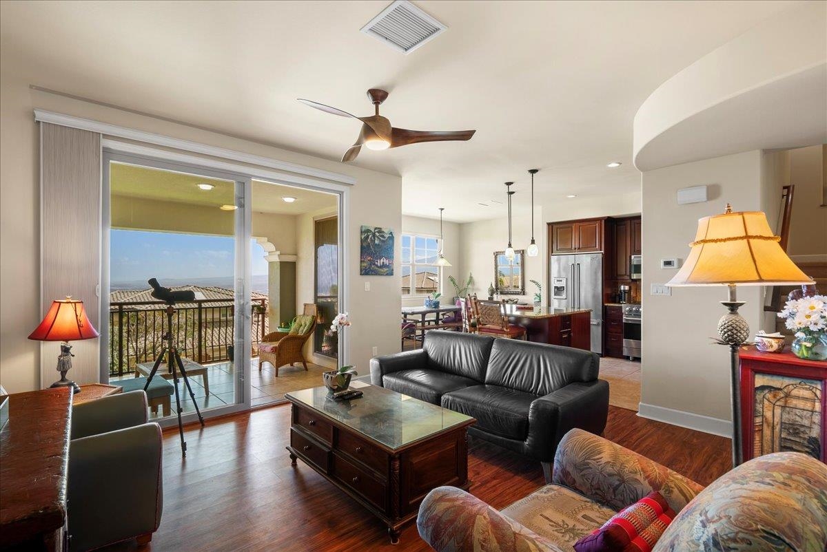 There are properties that check boxes. And then there are properties that quietly change the way you live. Welcome to 41 Kokea Street, Unit 1003, in the gated Villas at Kehalani in Wailuku. This residence sits elevated above Central Maui, capturing sweeping ocean and coastline views with Haleakala in the distance. From the covered, tiled lanai, mornings feel expansive. Blue water stretching out. Soft trade winds moving through. Evening light settling over the island. It is the kind of view that makes you slow down without trying. Inside, the home is in excellent condition and designed for comfort without sacrificing refinement. The open concept layout flows effortlessly from the kitchen to the living area and out to the lanai, creating a seamless indoor outdoor rhythm. Granite countertops anchor the kitchen, complemented by rich cherry wood cabinetry and a full Viking stainless steel appliance suite. It feels elevated. Intentional. Quietly luxurious. Central air conditioning keeps the temperature exactly where you want it year round. Upstairs, the primary suite captures those ocean views again, a daily reminder of why Maui feels different. The guest bedroom looks toward the West Maui Mountains, offering a softer, peaceful backdrop. Marble bathroom counters add a subtle layer of elegance throughout. One of the most valuable features here is privacy. The gated entrance adds peace of mind, and the two car enclosed garage with generous storage is rare for this price point in Central Maui. If you have been looking for a Maui property that balances view, quality, privacy, and value in one of Wailuku’s most desirable gated communities, this deserves a closer look.