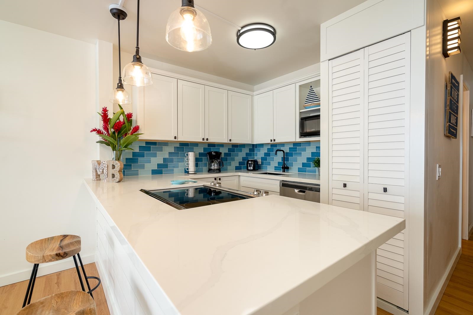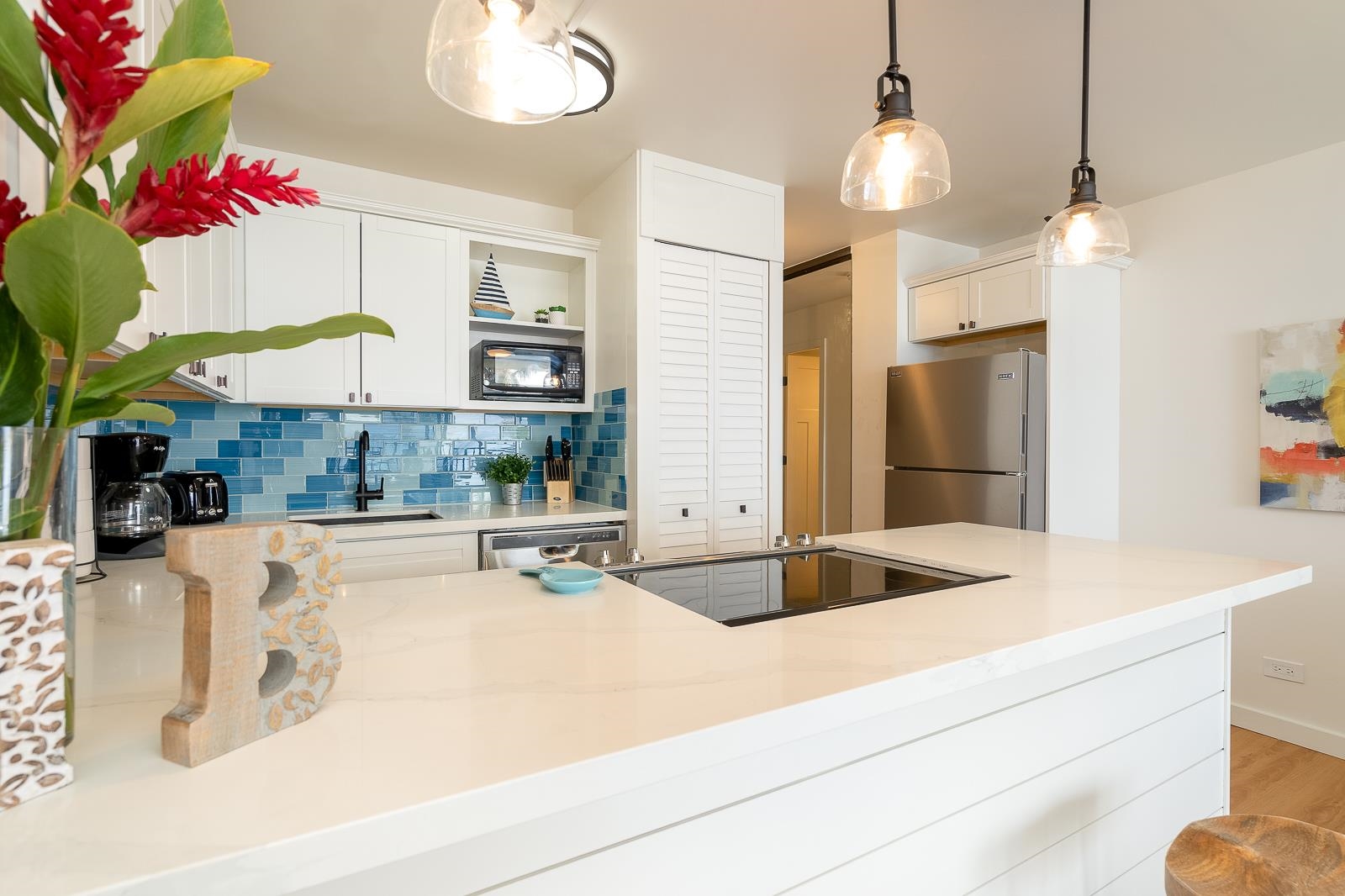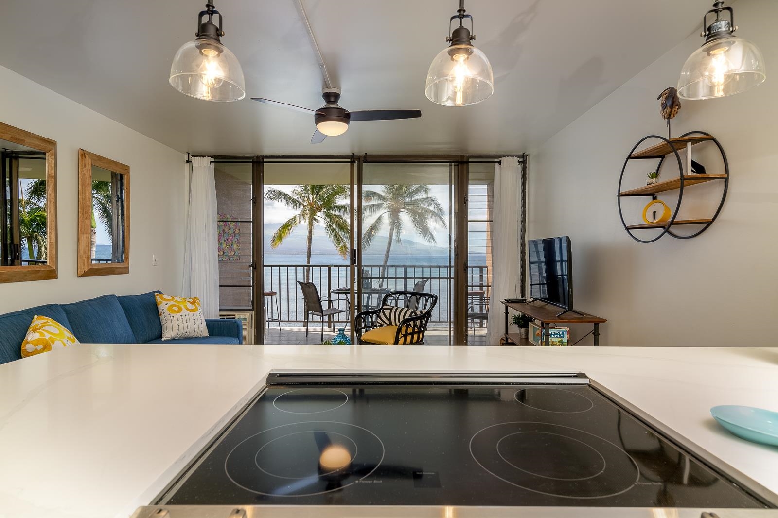 Panoramic ocean and mountain views with Haleakala as your backdrop from this beautifully remodeled 1BD/1BA at Maalaea Banyans. Enjoy front-row sights of paddle boarding, surfing, snorkeling–and seasonal whale watching–right from your own lanai. “Beyond the gorgeous remodel and incredible ocean views this condo was fully rebuilt in 2019 with new plumbing, electrical, appliances, water heater, and A/C. Includes a convenient Wi-Fi smart lock for easy access.” This unit is also a strong performer as a vacation rental and has been heavily booked on Vrbo. Resort amenities include an in-ground heated pool, hot tub, and BBQ area. Conveniently located just a short walk to Maalaea Harbor and Maalaea Village, home to the Maui Ocean Center, restaurants, and mini golf. HOA dues include water, basic cable, trash, and grounds maintenance. Buyer to honor future bookings.