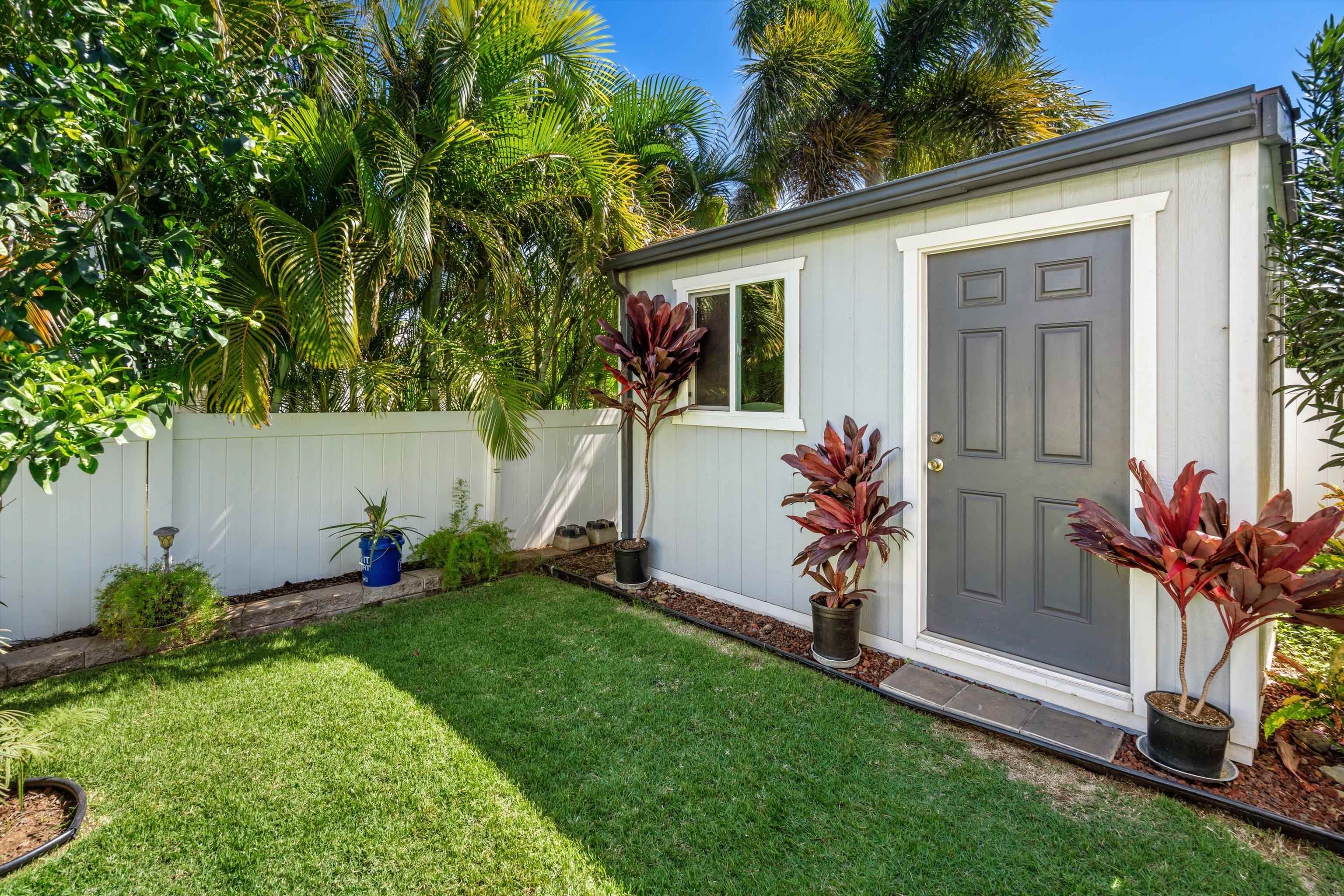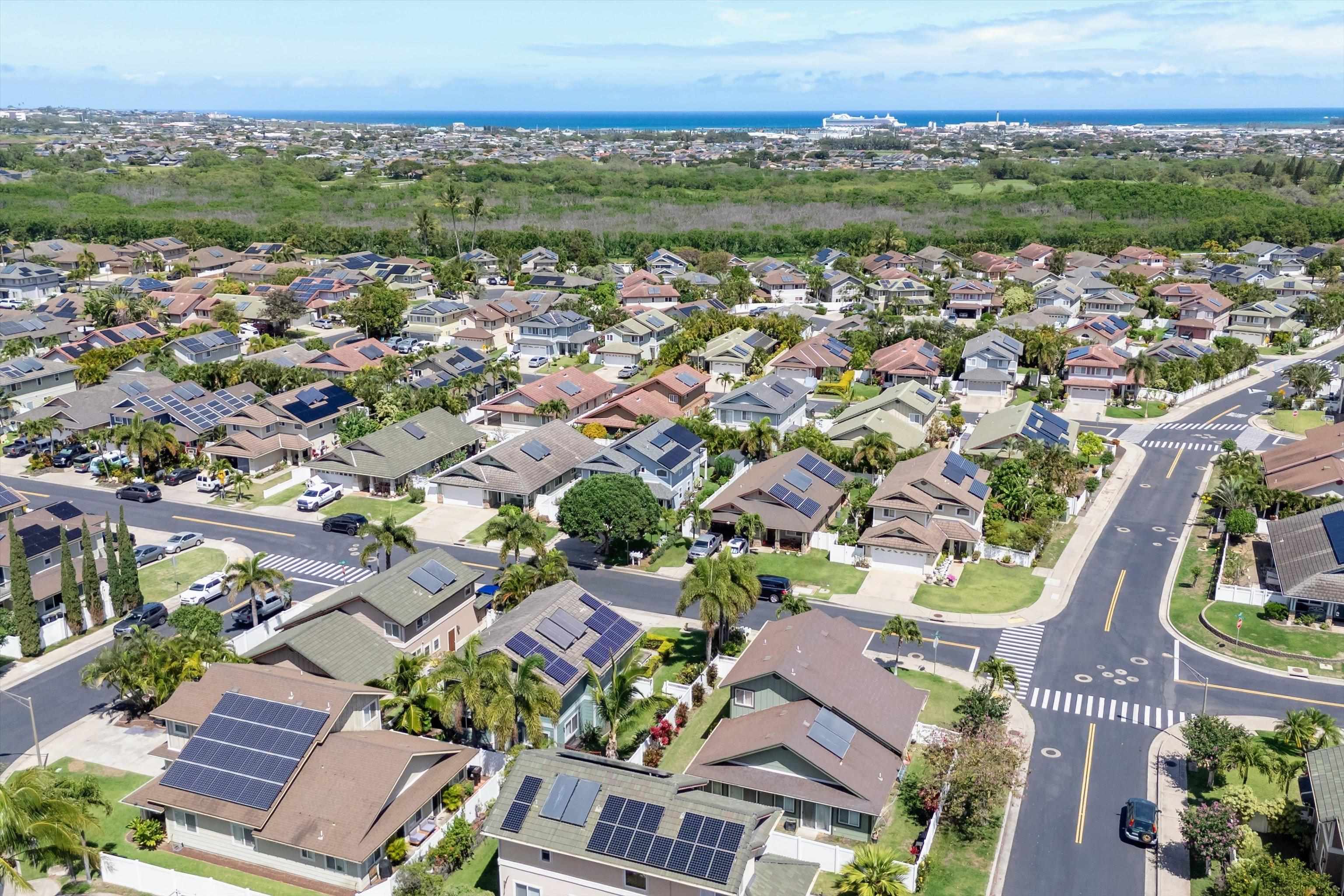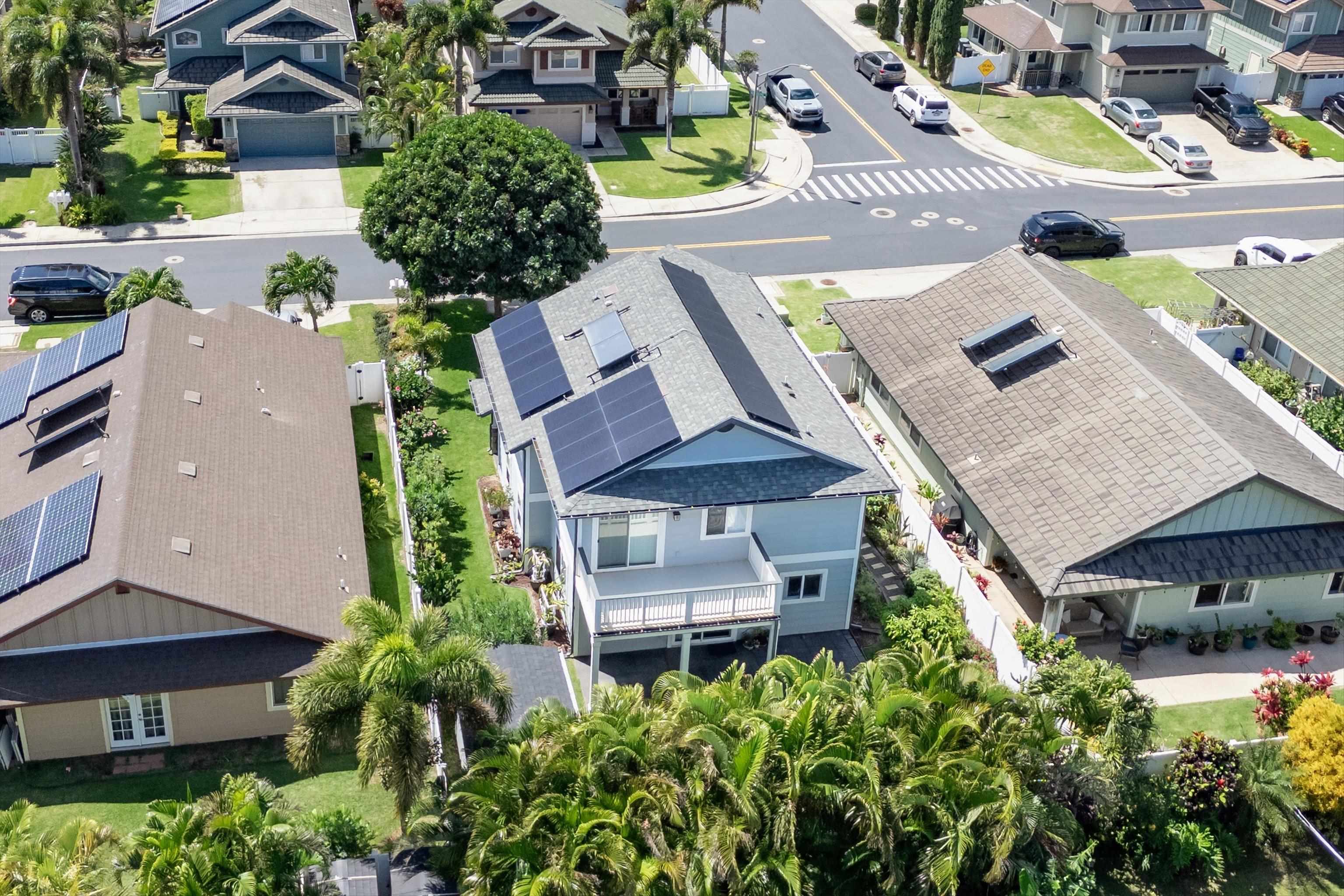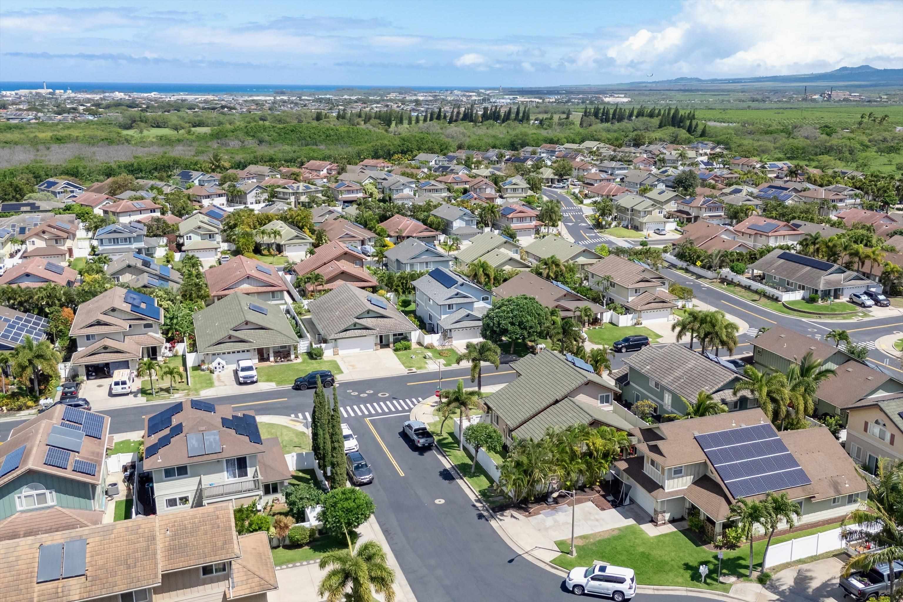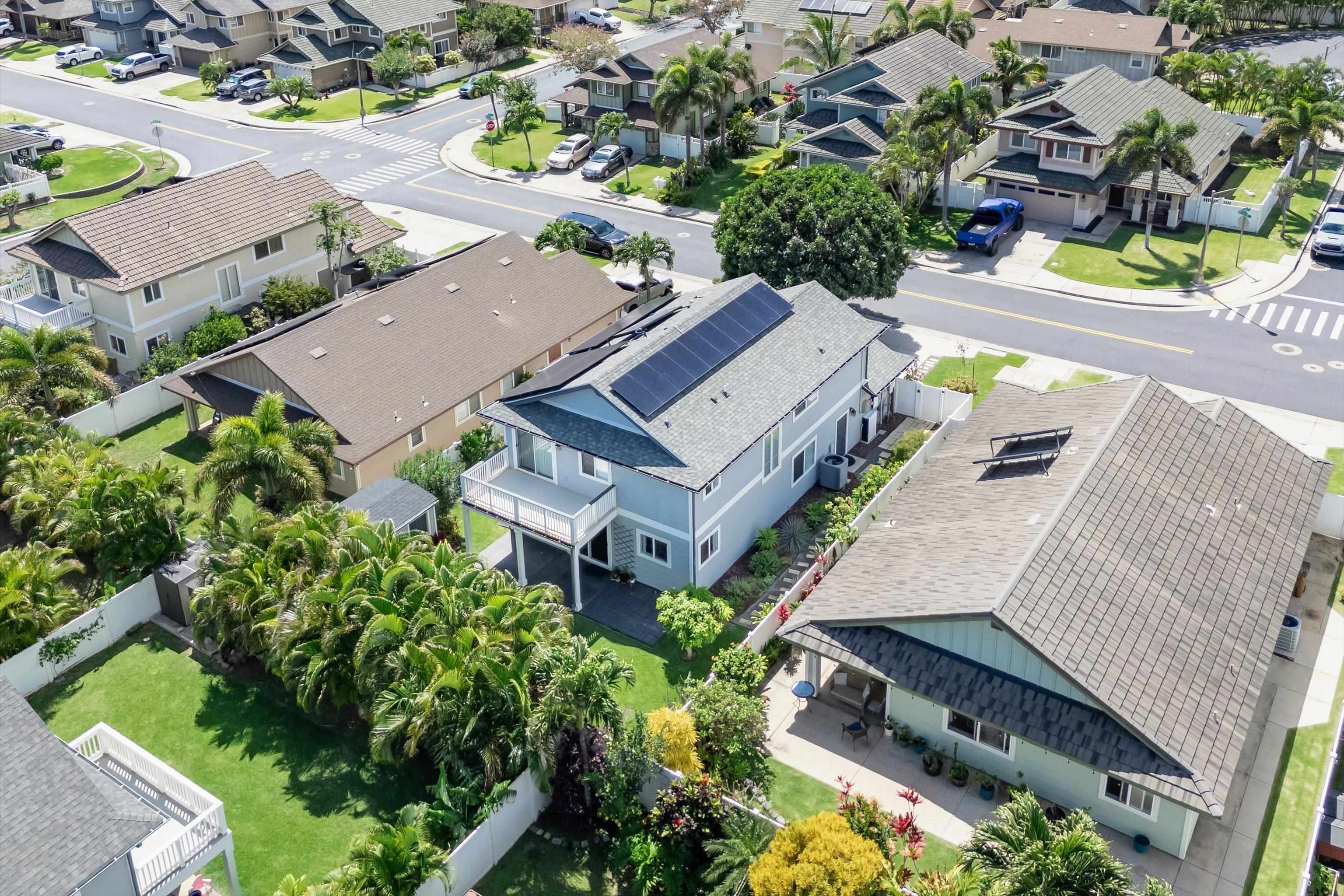 Discover comfort, efficiency, and convenience at 53 Molehulehu Loop in The Legends at Maui Lani. This thoughtfully designed 4-bedroom, 3-bath home welcomes you with vaulted ceilings and a bright, open living space that flows effortlessly into the dining area and kitchen–perfect for everyday living and entertaining. A bedroom and full bath on the main floor provide flexibility for guests, extended family, or a home office. Upstairs, the spacious primary suite offers a private retreat, complemented by two additional bedrooms and a full bath. Energy efficiency is a standout feature with 24 owned photovoltaic panels, two Tesla backup batteries, central AC, and a brand-new 80-gallon solar hot water system installed in 2024. Recently painted inside and out with all new window screens, this home is move-in ready. Enjoy a fenced yard (three sides enclosed), an 8' x 12' storage shed, and a two-car garage. Ideally situated near the Central Maui Regional Sports Complex, schools, Maui Memorial Medical Center, and Maui Lani Golf Course–this home combines comfort, sustainability, and an exceptional Central Maui location.
