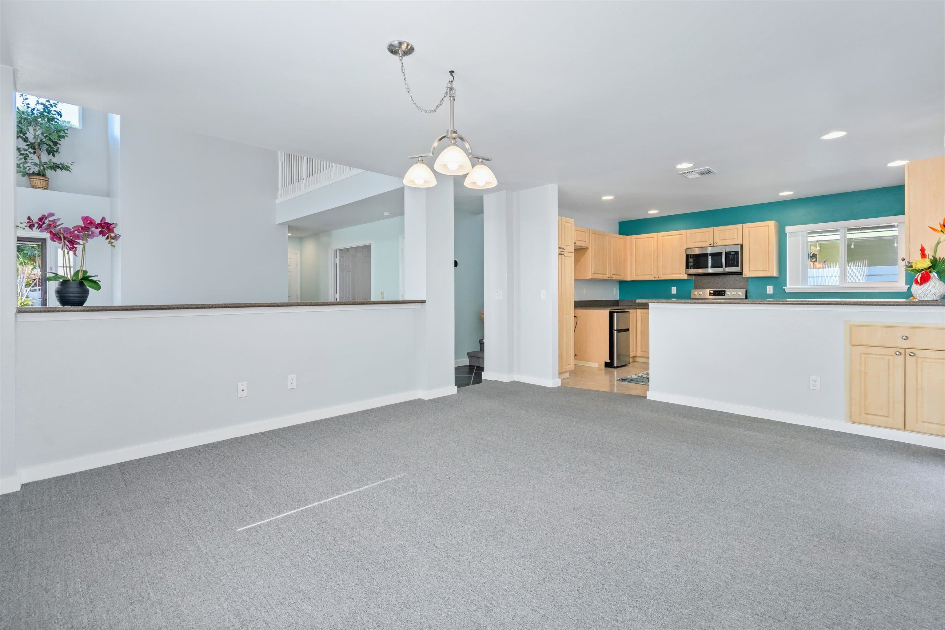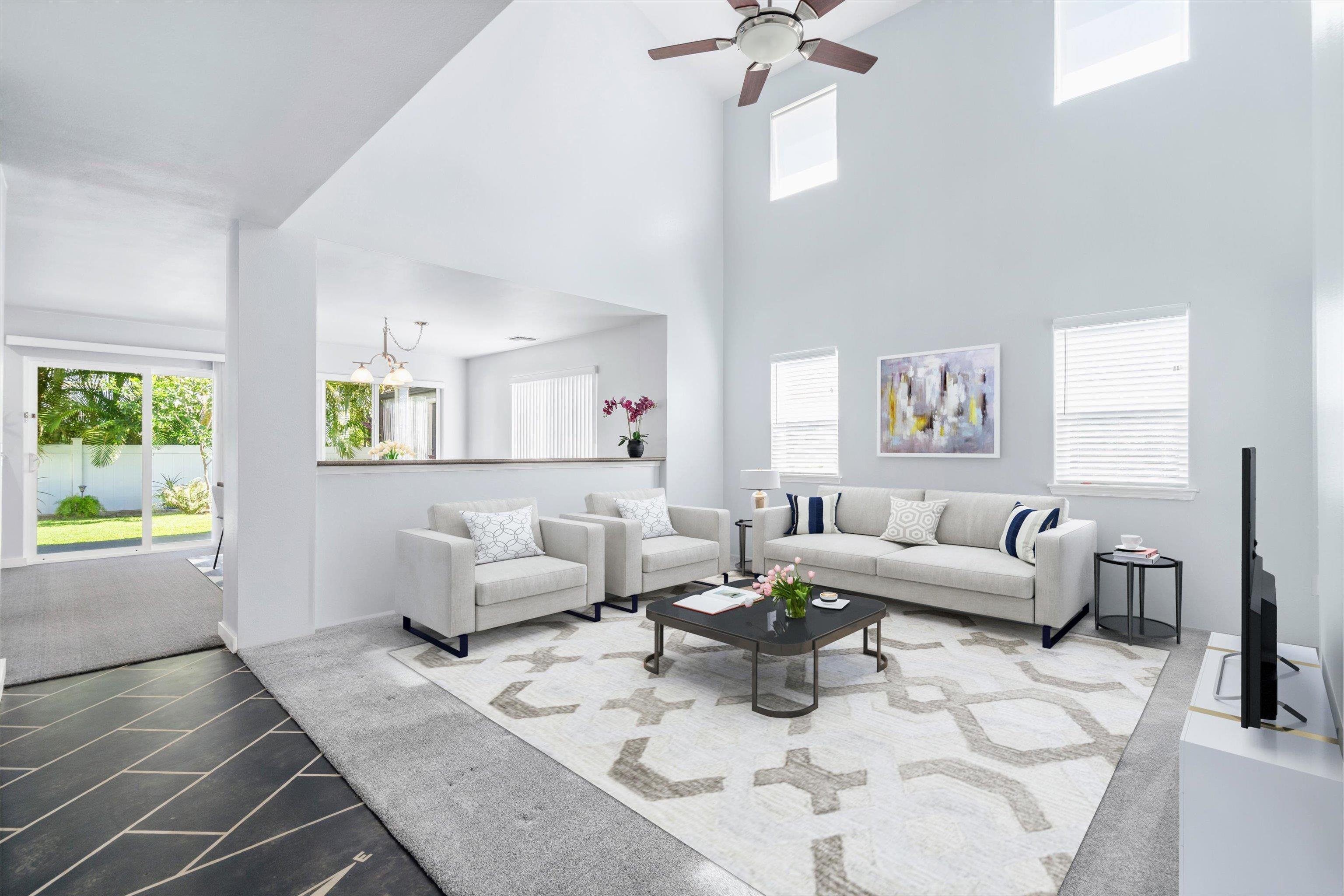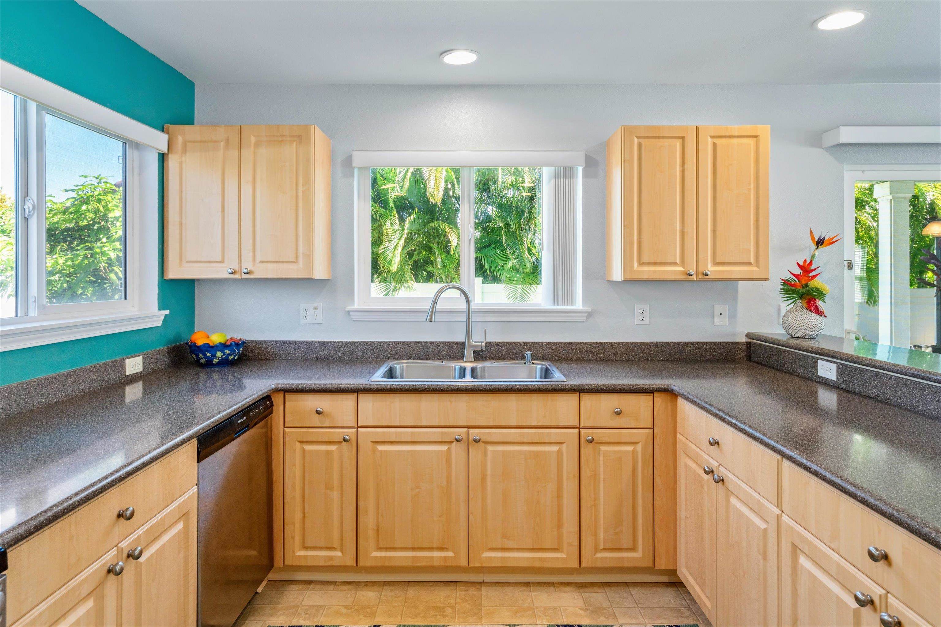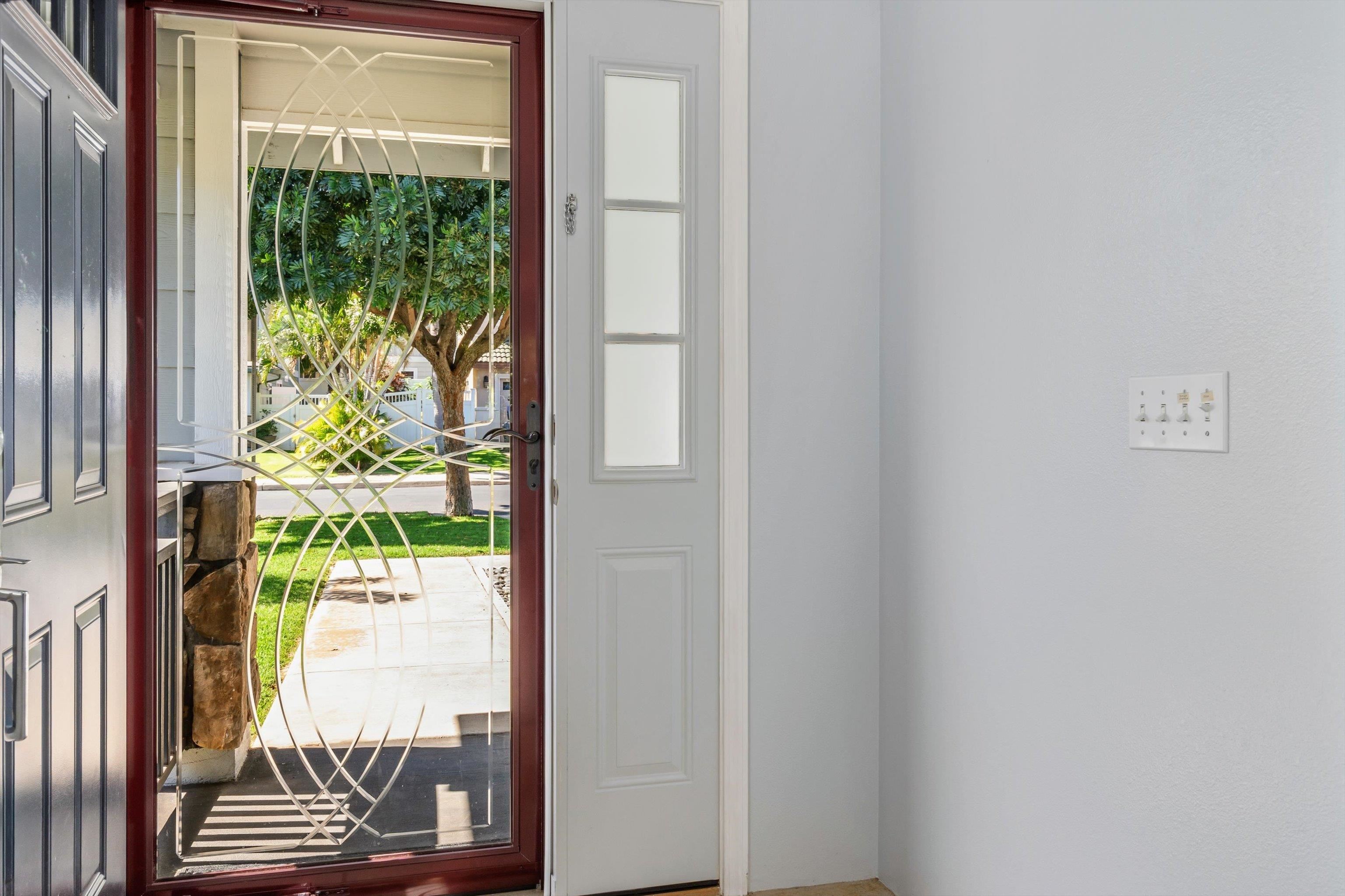 Discover comfort, efficiency, and convenience at 53 Molehulehu Loop in The Legends at Maui Lani. This thoughtfully designed 4-bedroom, 3-bath home welcomes you with vaulted ceilings and a bright, open living space that flows effortlessly into the dining area and kitchen–perfect for everyday living and entertaining. A bedroom and full bath on the main floor provide flexibility for guests, extended family, or a home office. Upstairs, the spacious primary suite offers a private retreat, complemented by two additional bedrooms and a full bath. Energy efficiency is a standout feature with 24 owned photovoltaic panels, two Tesla backup batteries, central AC, and a brand-new 80-gallon solar hot water system installed in 2024. Recently painted inside and out with all new window screens, this home is move-in ready. Enjoy a fenced yard (three sides enclosed), an 8' x 12' storage shed, and a two-car garage. Ideally situated near the Central Maui Regional Sports Complex, schools, Maui Memorial Medical Center, and Maui Lani Golf Course–this home combines comfort, sustainability, and an exceptional Central Maui location.