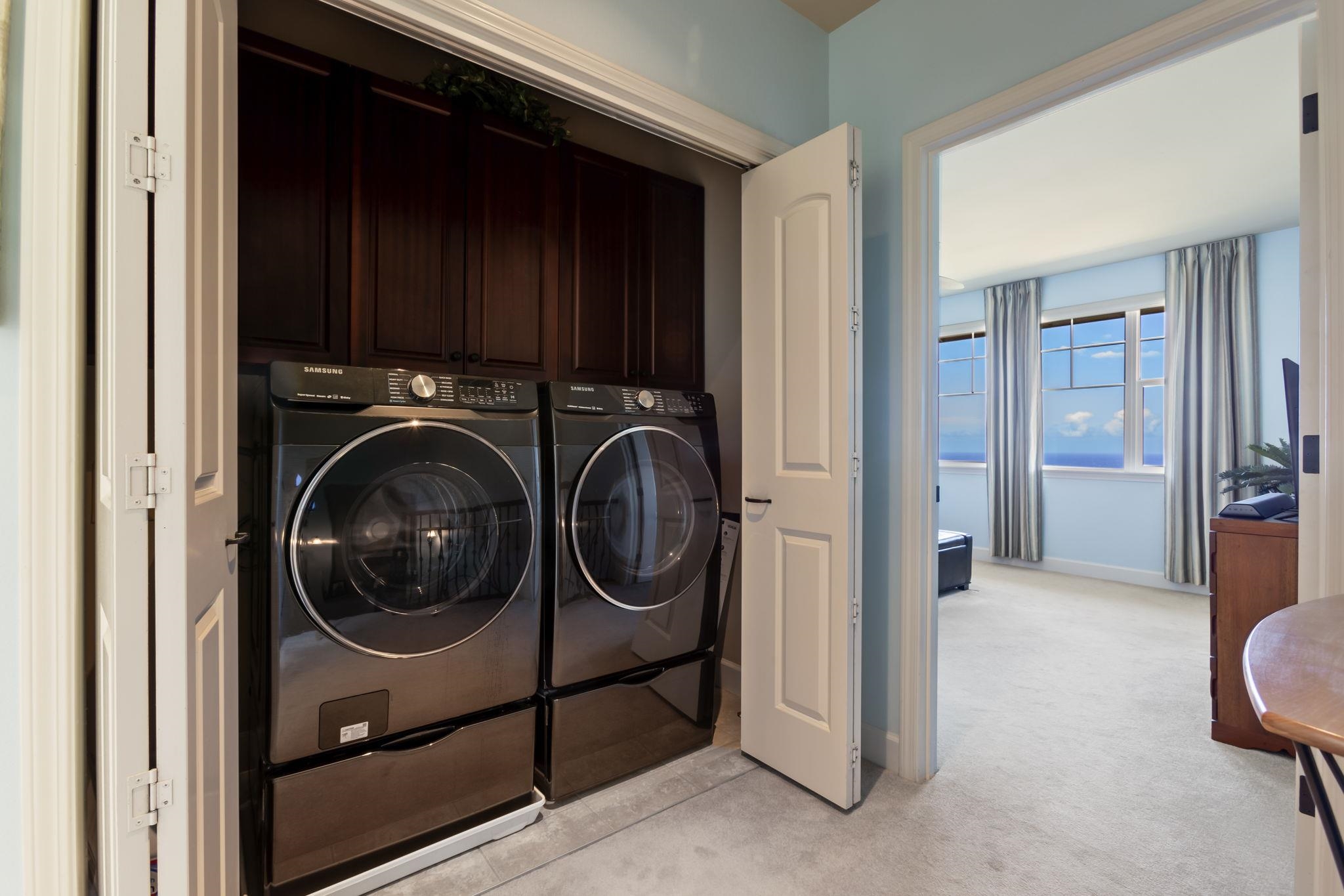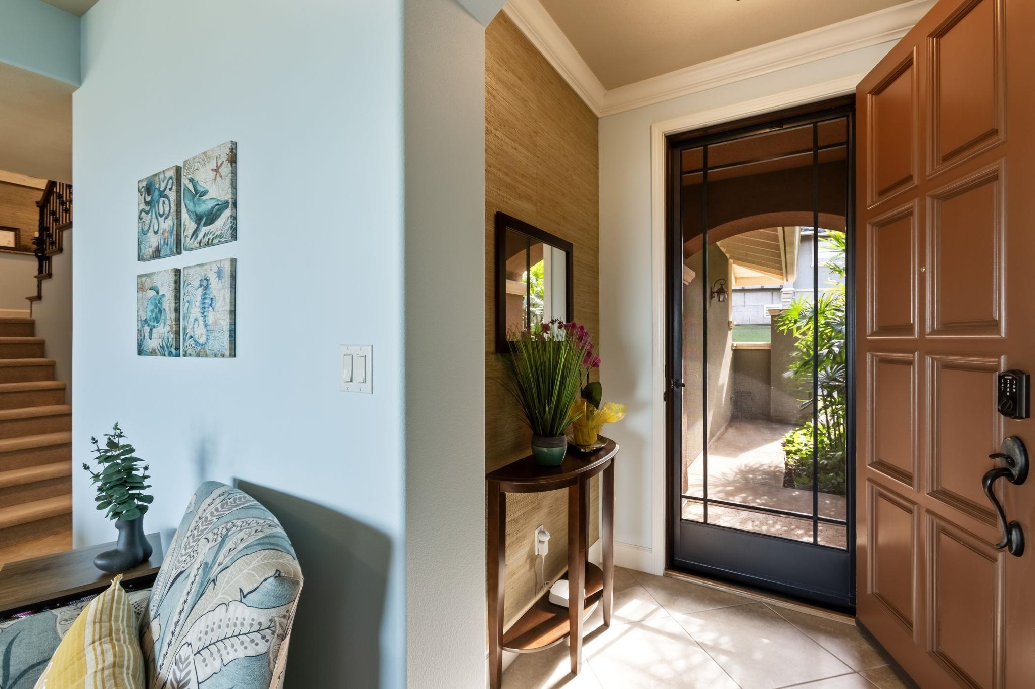 Villas at Kehalani 103~ Experience BREATHTAKING PACIFIC OCEAN, HALEAKALA, HARBOR, AND TWINKLING TOWN LIGHT views from this stunning FRONT ROW luxury townhome, nestled in the hillside setting of the West Maui Mountains. Originally the MODEL HOME for the GATED community of Villas at Kehalani, Unit 103 is an exquisite two-level residence designed with PREMIUM UPGRADES and BEAUTIFULLY IMPROVED AND MAINTAINED over the years. The kitchen has been thoughtfully REDESIGNED, positioning the sink to capture sweeping ocean views, and an added PREP SINK enhances convenience and functionality (please see the list of upgrades and improvements). Valuable features include an OCEAN-VIEW PRIMARY BEDROOM SUITE with a large WALK-IN CLOSET, ENSUITE FULL BATH WITH SOAKING TUB, SEPARATE ENCLOSED SHOWER, and DOUBLE GLASS VESSEL SINKS; a spacious SECOND BEDROOM with an ENSUITE BATH and tub/shower; 9-FOOT CEILINGS on both levels for an airy, open feel; CUSTOM SHADES AND DRAPERIES throughout; elegant TILE FLOORS on the main level; an open-concept living, dining, and kitchen with NEWER modern appliances and granite countertops; CENTRAL AIR-CONDITIONING; a TWO-CAR GARAGE with built-in cabinets and a utility sink; and a LANAI with stunning VIEWS. This complex is NOT part of BILL 9; short-term rentals are prohibited. Could possibly be SOLD FURNISHED via a separate bill of sale. Situated in a prime location near shopping, restaurants, the charming historic town of Wailuku, medical facilities, the iconic Iao Valley, and beautiful beaches, this is an INCREDIBLE opportunity to own a sophisticated, MOVE-IN READY residence in a HIGHLY DESIRABLE GATED COMMUNITY. Available for your exclusive showing by private appointment.