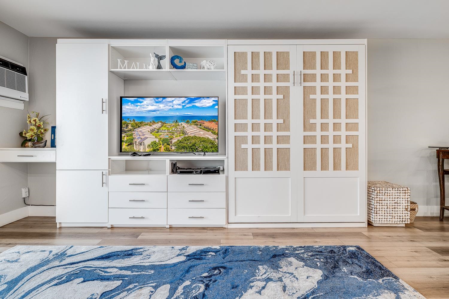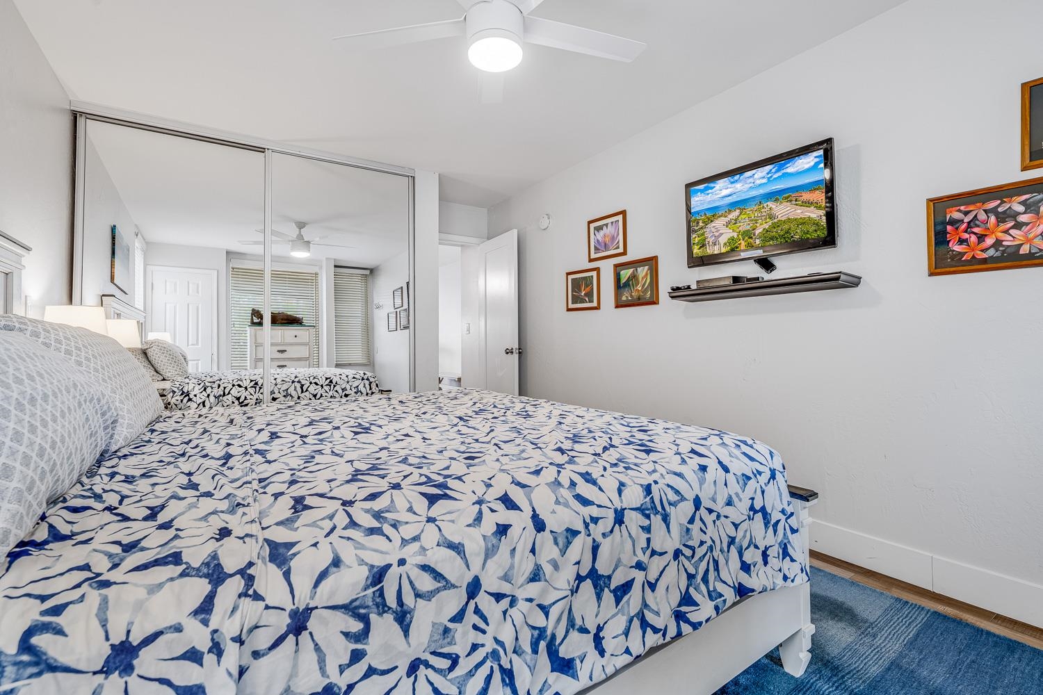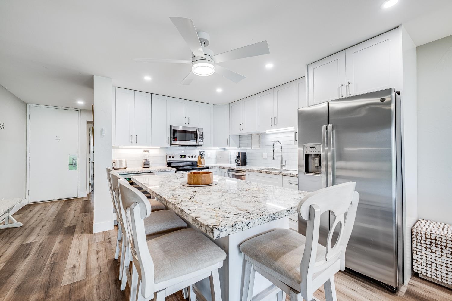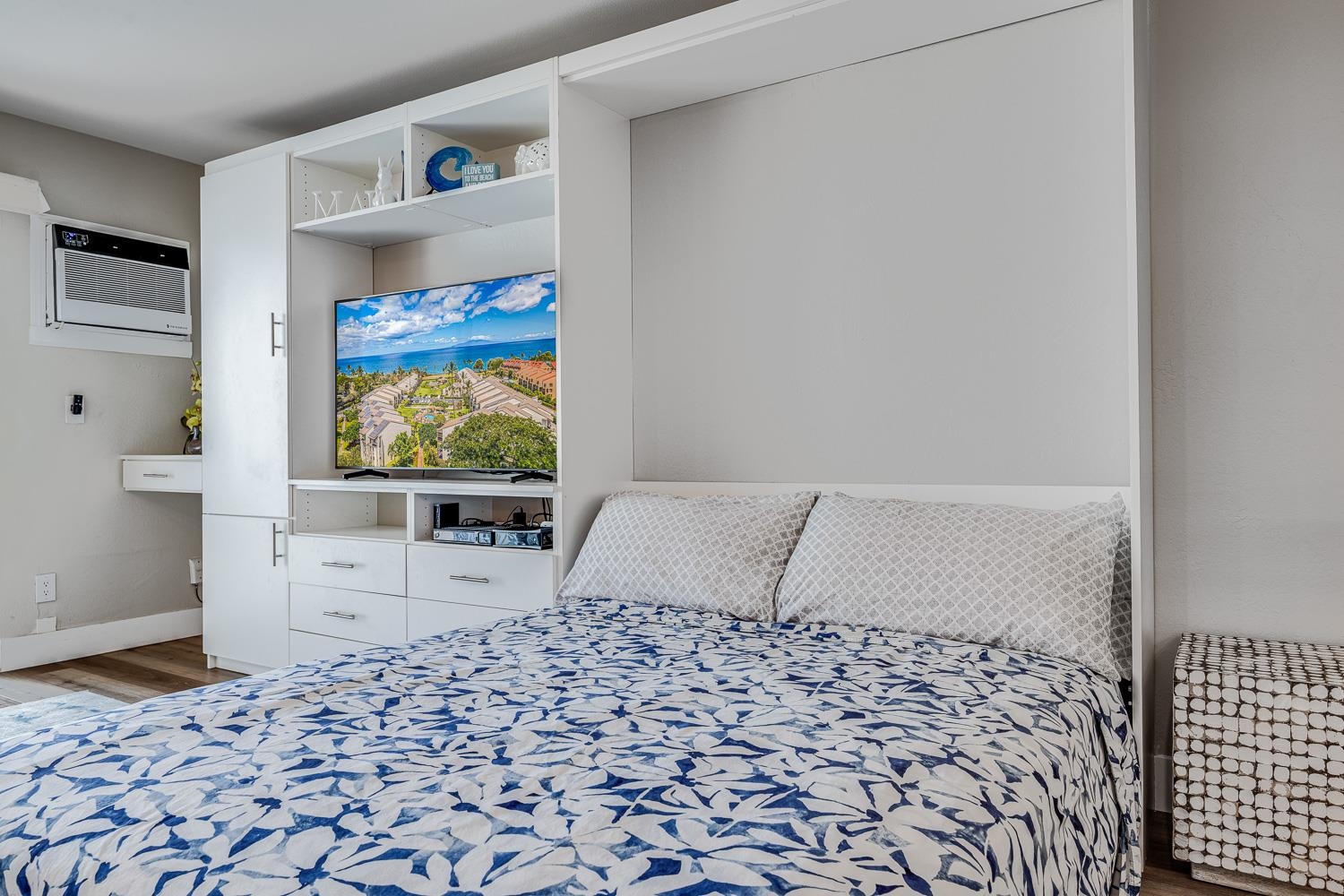 Hale Kamaole 142 is a beautifully remodeled ground floor 1-bedroom, 1-bath condo that delivers a fresh, modern beach vibe just steps from Kamaole Beach Park III and the upper pool. Come experience a true “WOW” with luxury furnishings, cool tile flooring, and a bright open-concept layout that feels larger than a typical one bedroom. The kitchen has been thoughtfully redesigned to create a more spacious dining and living area. Featuring newer appliances, cooking and entertaining at home is a breeze. The bathroom showcases an amazing walk-in tile shower and updated finishes that give the space a sleek, spa-like feel. In the bedroom, a comfortable king bed anchors a clean, contemporary space, complemented by additional sleeping on the queen sofa murphy bed in the living room so you can host family or guests with ease. Every detail of this remodel was done to elevate comfort and livability, from A/C and in-unit washer/dryer to the curated décor and plentiful storage, including an outdoor closet stocked for memorable beach days. Slide open the lanai door and enjoy a seamless indoor-outdoor flow to a broad lawn area just 50 feet from the pool and BBQs, giving this unit the feel of a private backyard retreat in one of South Kihei’s most desirable low-rise complexes. All of this is set in Hale Kamaole’s resort-style setting with two pools, tennis/pickleball, and meticulously maintained tropical grounds, directly across from one of Maui’s best swim and sunset beaches.