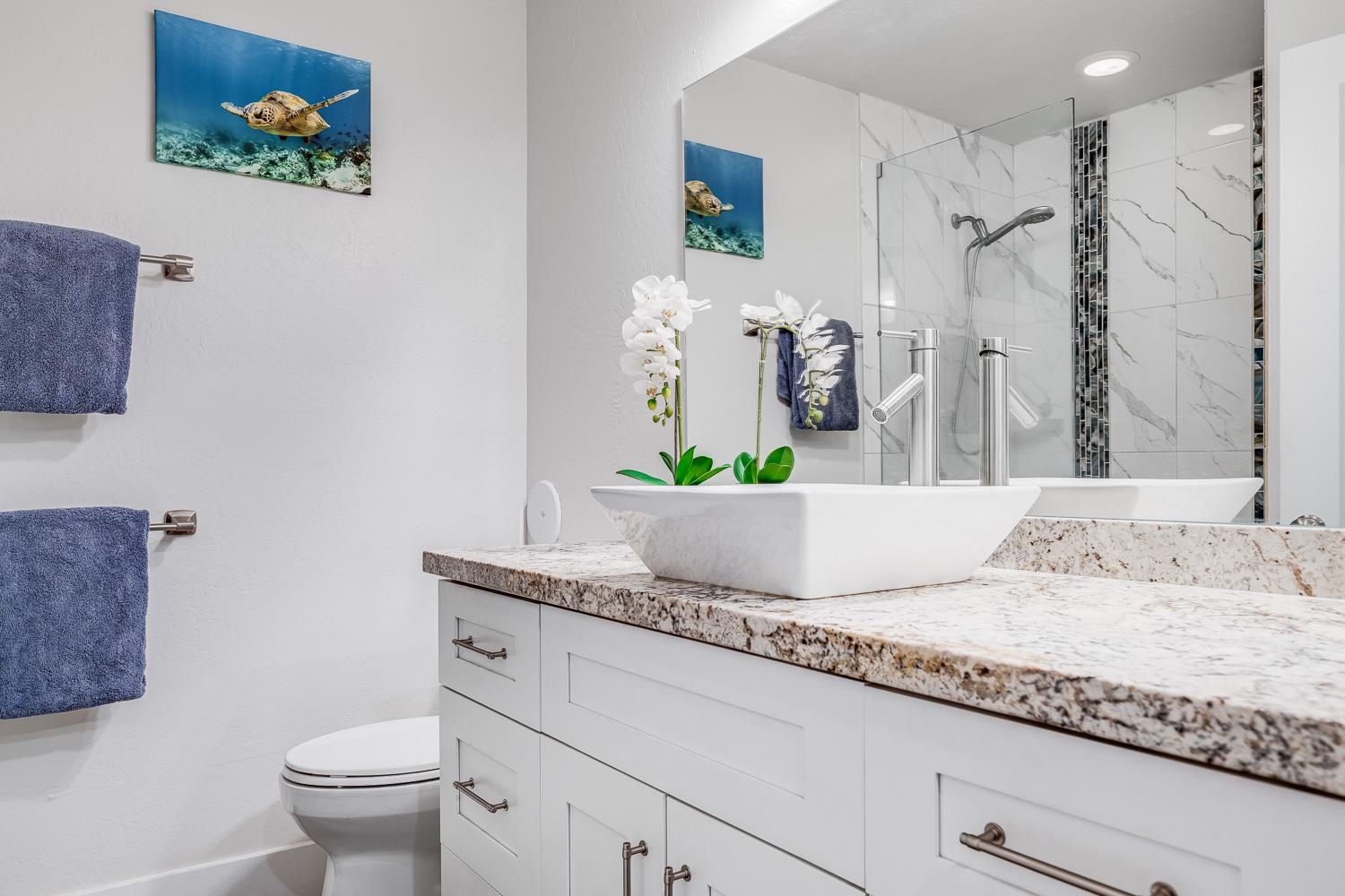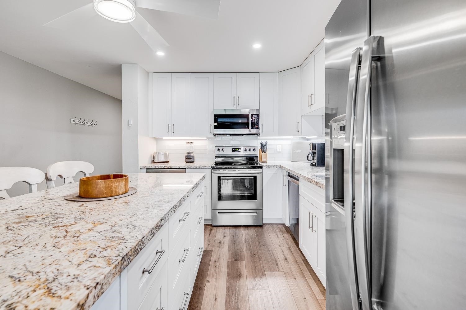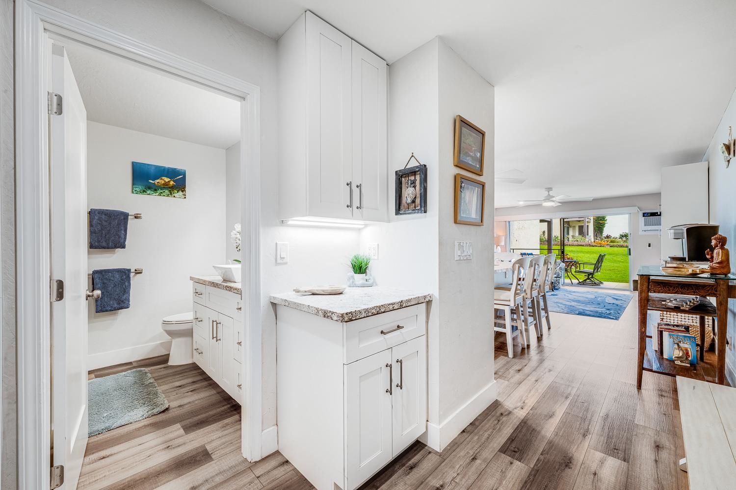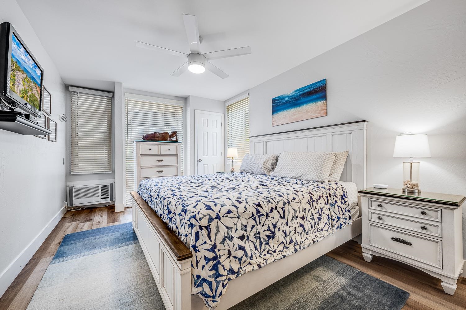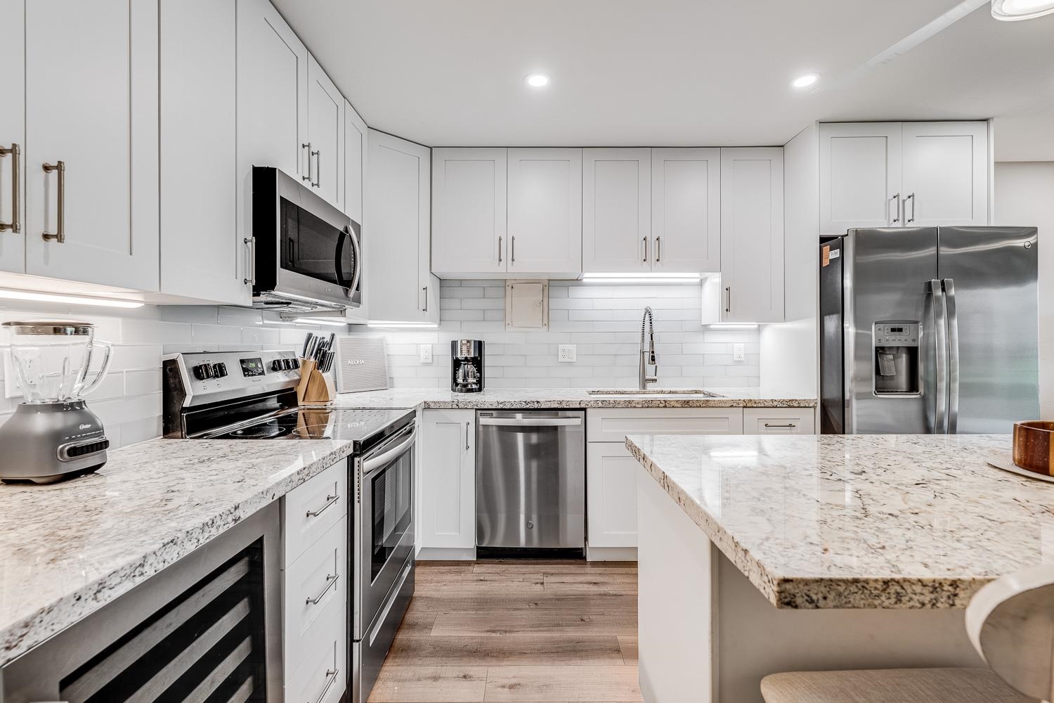 Hale Kamaole 142 is a beautifully remodeled ground floor 1-bedroom, 1-bath condo that delivers a fresh, modern beach vibe just steps from Kamaole Beach Park III and the upper pool. Come experience a true “WOW” with luxury furnishings, cool tile flooring, and a bright open-concept layout that feels larger than a typical one bedroom. The kitchen has been thoughtfully redesigned to create a more spacious dining and living area. Featuring newer appliances, cooking and entertaining at home is a breeze. The bathroom showcases an amazing walk-in tile shower and updated finishes that give the space a sleek, spa-like feel. In the bedroom, a comfortable king bed anchors a clean, contemporary space, complemented by additional sleeping on the queen sofa murphy bed in the living room so you can host family or guests with ease. Every detail of this remodel was done to elevate comfort and livability, from A/C and in-unit washer/dryer to the curated décor and plentiful storage, including an outdoor closet stocked for memorable beach days. Slide open the lanai door and enjoy a seamless indoor-outdoor flow to a broad lawn area just 50 feet from the pool and BBQs, giving this unit the feel of a private backyard retreat in one of South Kihei’s most desirable low-rise complexes. All of this is set in Hale Kamaole’s resort-style setting with two pools, tennis/pickleball, and meticulously maintained tropical grounds, directly across from one of Maui’s best swim and sunset beaches.
