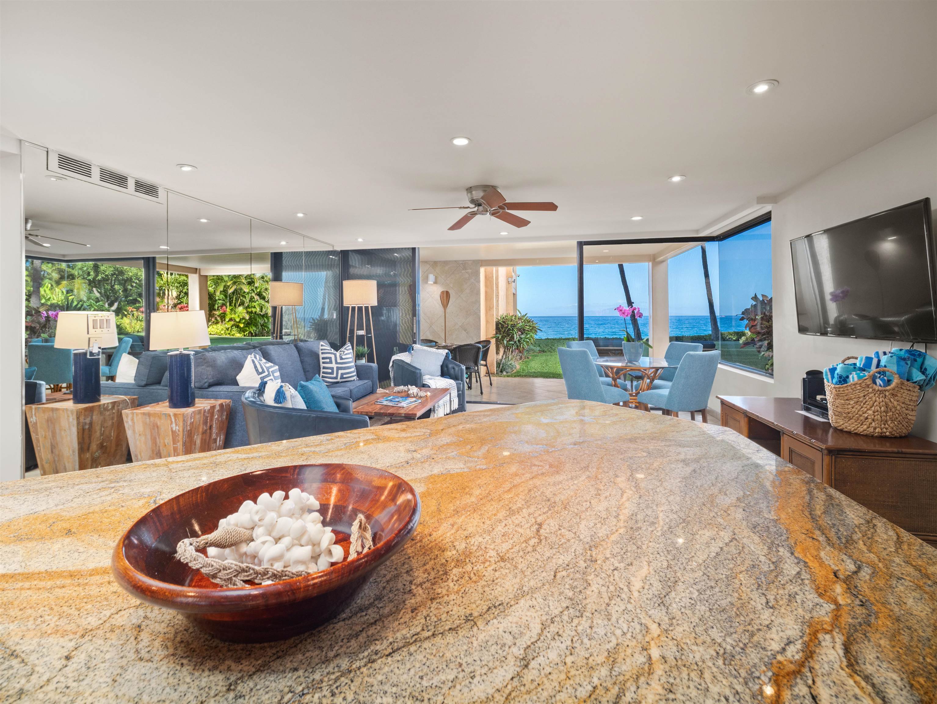 Ideally positioned just one residence off the front row, Polo Beach 107 captures exceptional ocean views while offering the convenience of true ground-floor, walk-out access. From your lanai, step directly onto an expansive greenbelt that seamlessly extends your living space and leads just moments to the white sands of Polo Beach. The outdoor setting is one of this residence’s most compelling features – the wide lawn frontage creates a rare sense of openness and privacy, providing ample space for entertaining, lounging, or enjoying Maui’s year-round indoor—outdoor lifestyle. The interior has been remodeled with updated finishes, presenting a clean, coastal aesthetic that complements its beachfront surroundings. Large openings frame ocean views from the main living areas, allowing natural light and sea breezes to flow throughout. A highly desirable offering within one of Wailea’s most sought-after beachfront communities – combining proximity, privacy, and view.