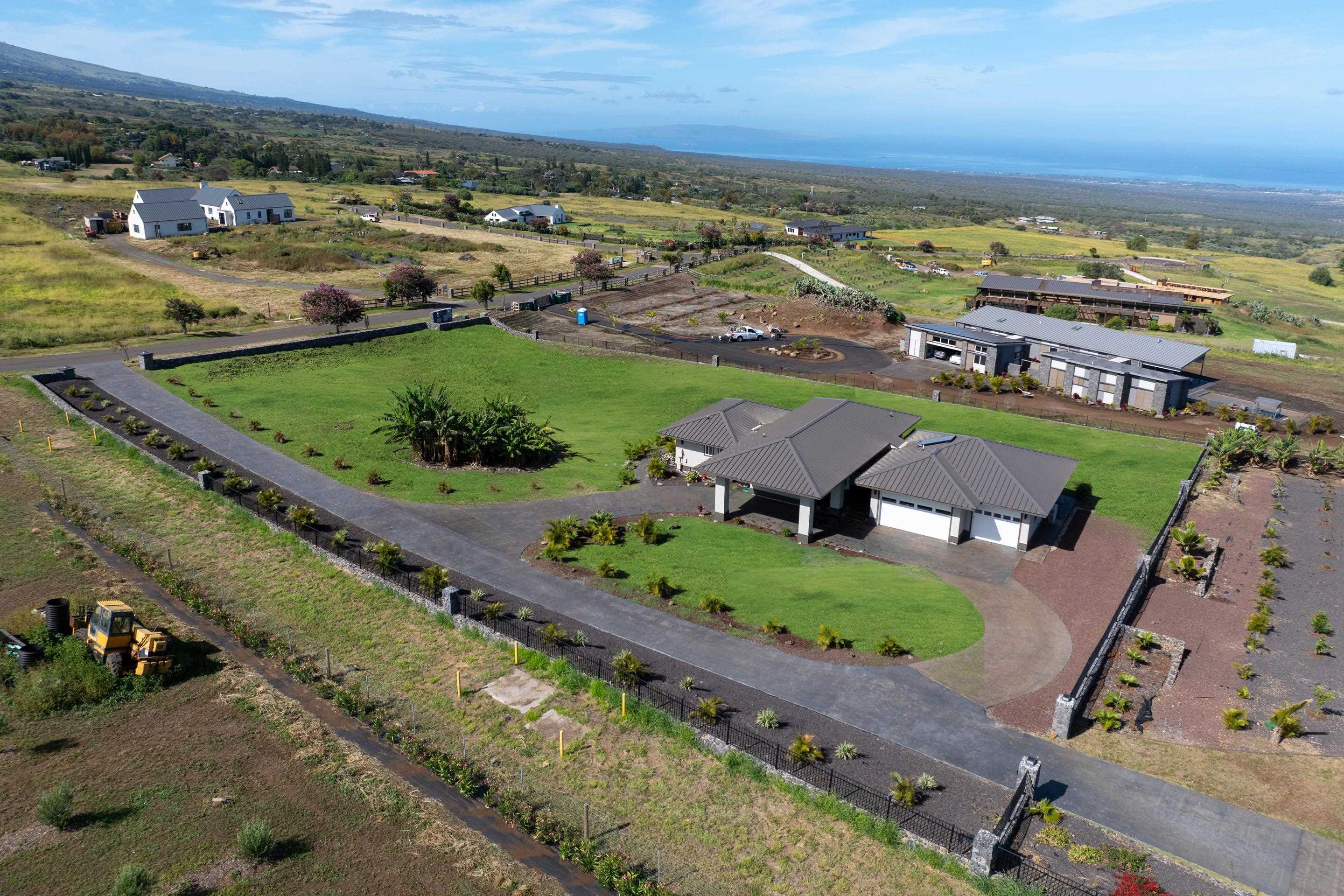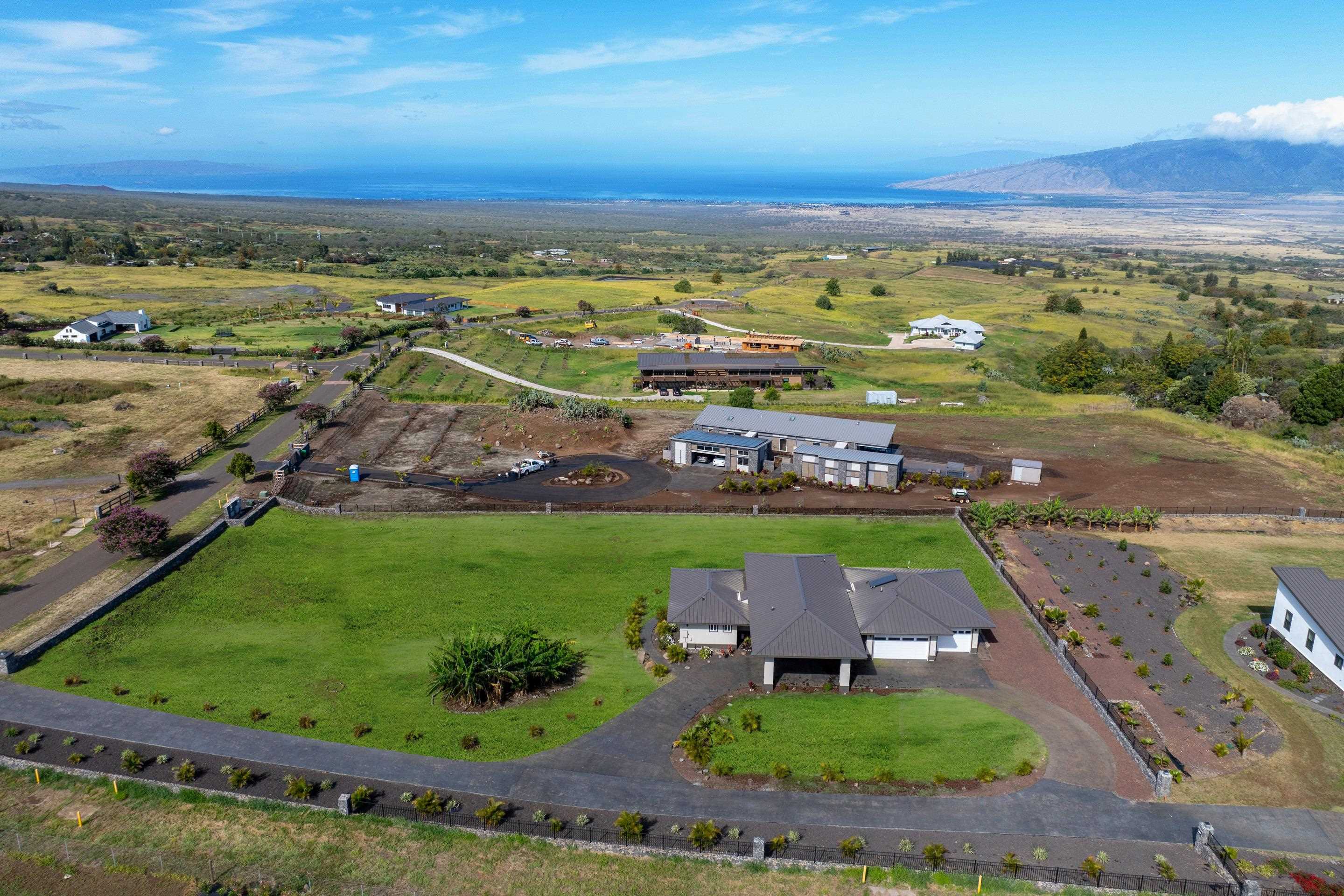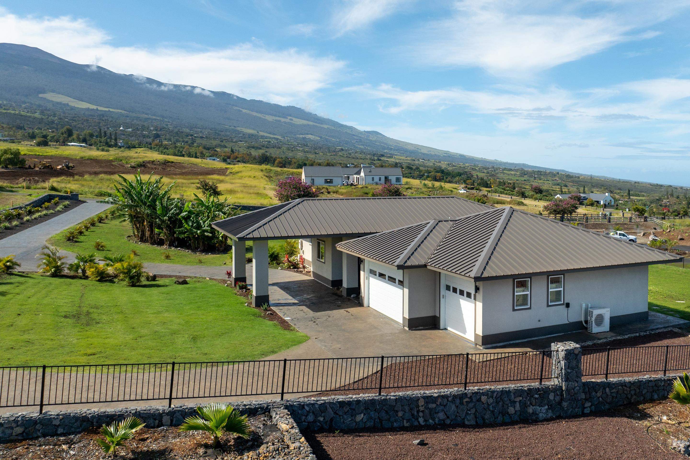 Welcome home to 272 Huahua in Kula I’O, a breathtaking oasis on the slopes of Haleakala. Situated just over 2,000 feet above Maui's pristine beaches, this rare gem is nestled in one of Kula's most luxurious communities. This residential CPR, is a spacious two-bedroom ohana that lives like a three-bedroom house, offering ample outdoor living space, a three-car garage, and over 1.3 acres of serene land. As you arrive, the stunning custom entrance greets you with a beautiful waterfall and koi pond, perfectly paired with high vaulted ceilings and seamless indoor/outdoor design. Step inside to discover an open-concept layout that instantly captivates with mesmerizing views of lush greenery and vibrant blues from every window. The heart of this home is it's perfectly paired kitchen and living room, designed for seamless living and entertaining. The chef's kitchen boasts high-end appliances, elegant stone countertops, and ample storage space, making it a dream for culinary enthusiasts. The southern wing features a luxurious and private primary bedroom with an en suite bathroom, complete with a dual vanity and walk-in shower. The northern wing houses the secondary bedroom, a bathroom with a soaking tub, and an additional room that functions effortlessly as a third bedroom. Imagine stepping through the living room's sliding glass door, which seamlessly opens to an expansive BBQ area, merging indoor comfort with outdoor luxury. This effortless transition invites you to enjoy al fresco dining and entertaining, surrounded by breathtaking views and the soothing sounds of nature. Plus, with a pool permit already in place, you have the exciting opportunity to add a custom pool, transforming your outdoor space into a private resort. It's the perfect setting for creating unforgettable memories with family and friends, enhancing the home's allure and functionality. Experience the perfect Maui lifestyle with ideal temperatures and an atmosphere that exudes tranquility and luxury. Kula I’O is a highly sought-after neighborhood where agriculture meets privacy and sophistication. As you drive into the gated subdivision, you'll be greeted by manicured pathways, fresh Kula breezes, and panoramic ocean views. This 236-acre community spans over 35 large lots and offers unparalleled privacy while being conveniently located near shopping, dining, beaches, a hospital, and Maui's top-rated schools. Nestled just below Haleakala National Park and close to world-renowned hiking trails, botanical gardens, and rolling green hills, this location truly embodies the essence of Kula. Don’t miss your chance to own this one-of-a-kind property, contact your favorite realtor to schedule a showing today! Experience the unparalleled beauty and luxury of 272 Huahua and make it your own. This home is part of a Residential CPR.