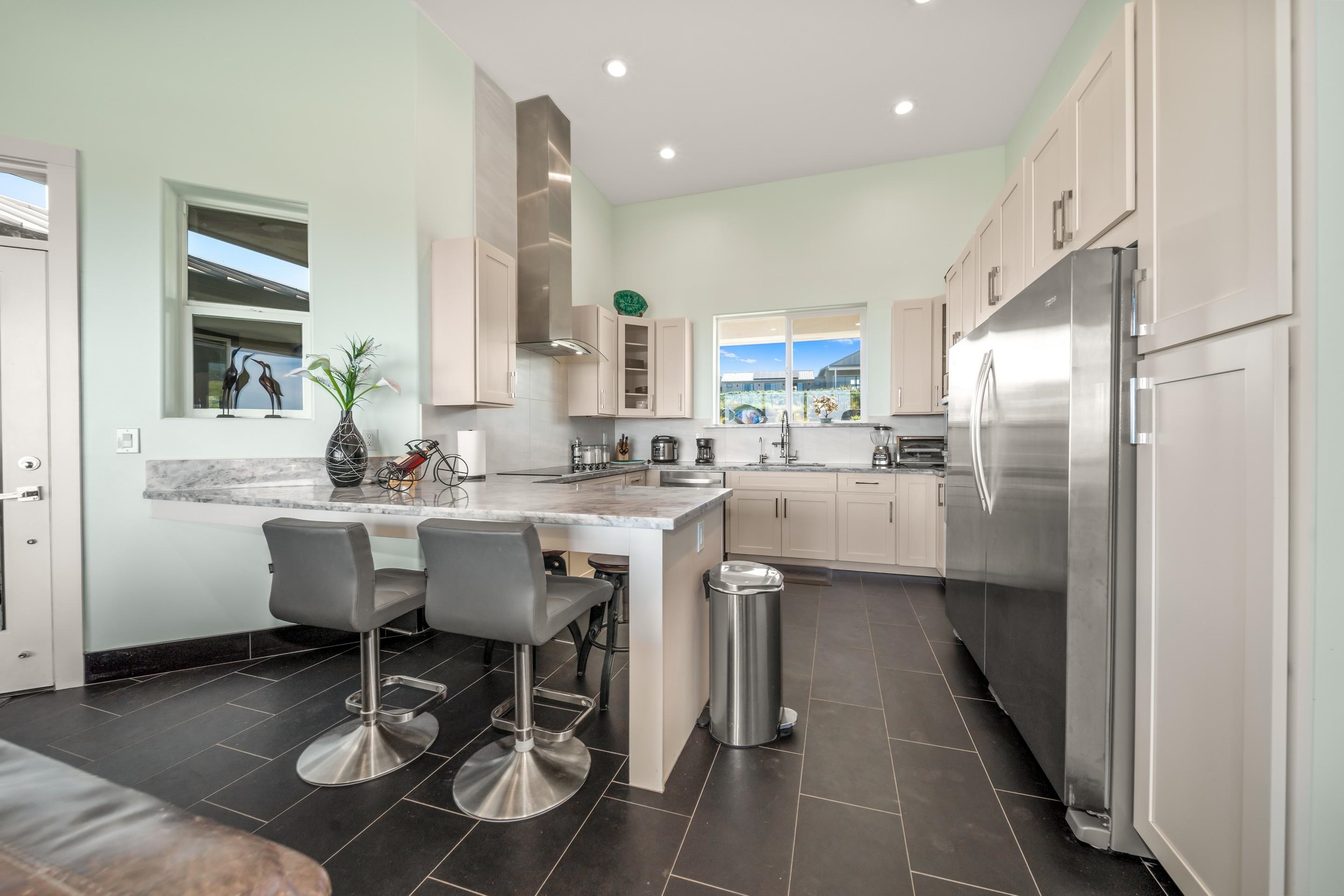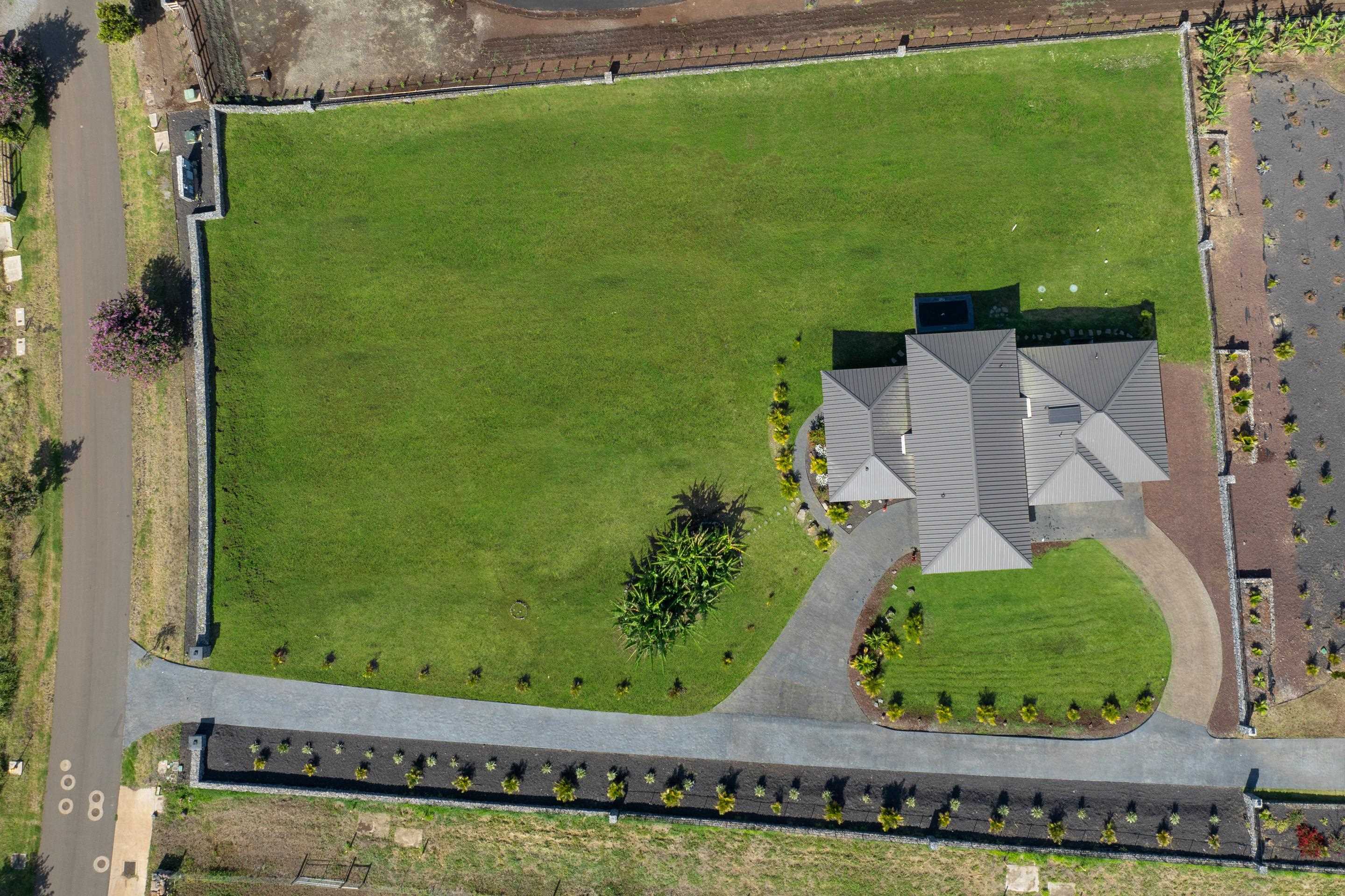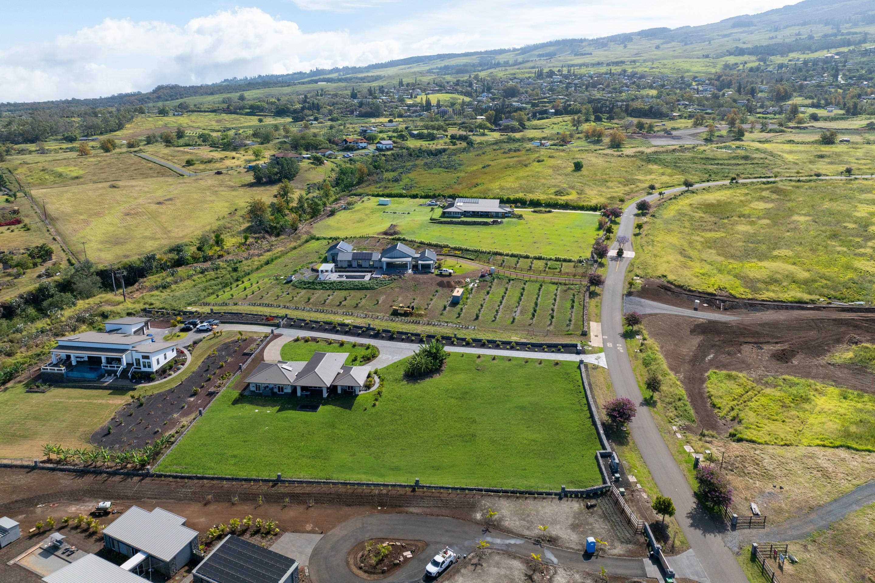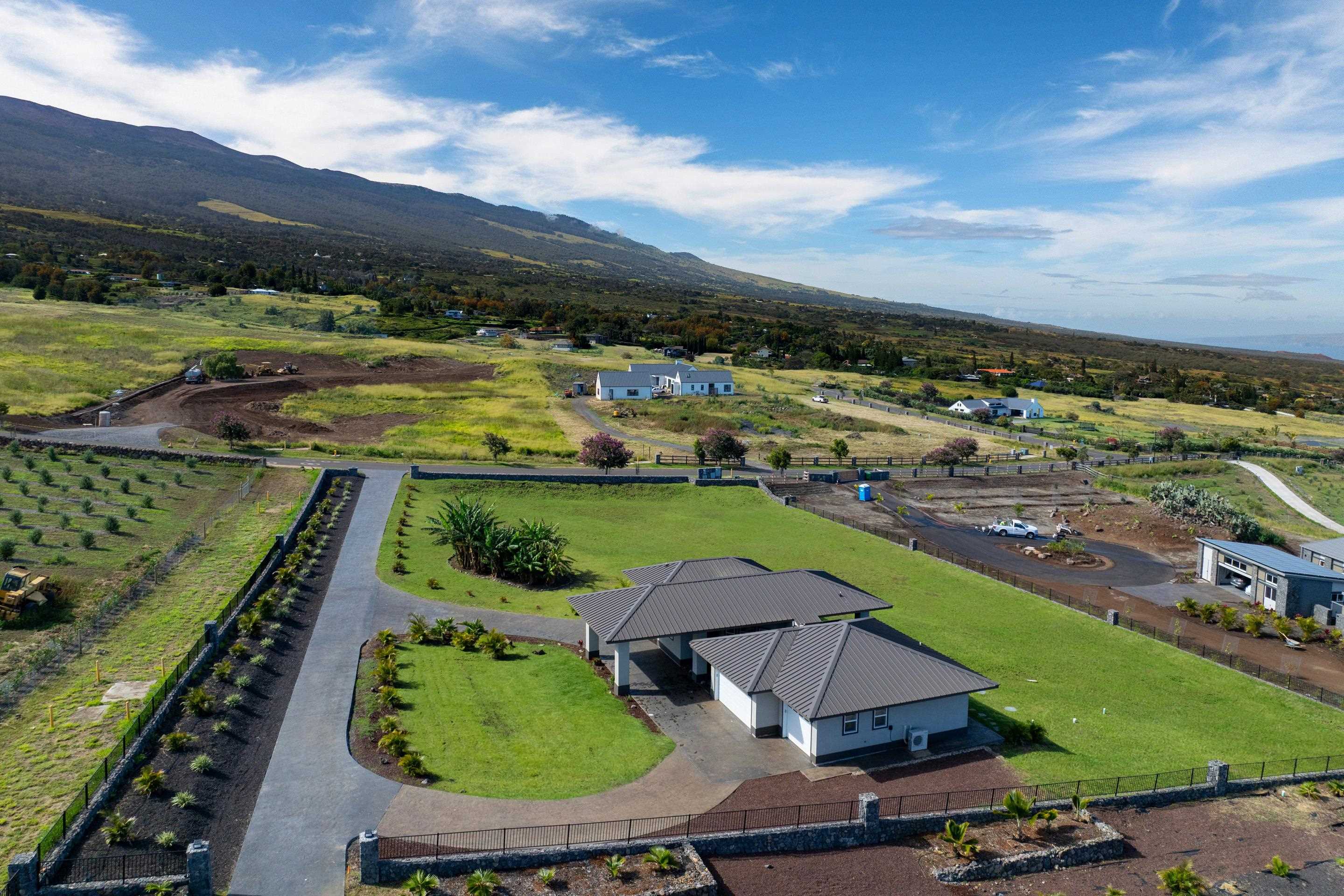 Welcome home to 272 Huahua in Kula I’O, a breathtaking oasis on the slopes of Haleakala. Situated just over 2,000 feet above Maui's pristine beaches, this rare gem is nestled in one of Kula's most luxurious communities. This residential CPR, is a spacious two-bedroom ohana that lives like a three-bedroom house, offering ample outdoor living space, a three-car garage, and over 1.3 acres of serene land. As you arrive, the stunning custom entrance greets you with a beautiful waterfall and koi pond, perfectly paired with high vaulted ceilings and seamless indoor/outdoor design. Step inside to discover an open-concept layout that instantly captivates with mesmerizing views of lush greenery and vibrant blues from every window. The heart of this home is it's perfectly paired kitchen and living room, designed for seamless living and entertaining. The chef's kitchen boasts high-end appliances, elegant stone countertops, and ample storage space, making it a dream for culinary enthusiasts. The southern wing features a luxurious and private primary bedroom with an en suite bathroom, complete with a dual vanity and walk-in shower. The northern wing houses the secondary bedroom, a bathroom with a soaking tub, and an additional room that functions effortlessly as a third bedroom. Imagine stepping through the living room's sliding glass door, which seamlessly opens to an expansive BBQ area, merging indoor comfort with outdoor luxury. This effortless transition invites you to enjoy al fresco dining and entertaining, surrounded by breathtaking views and the soothing sounds of nature. Plus, with a pool permit already in place, you have the exciting opportunity to add a custom pool, transforming your outdoor space into a private resort. It's the perfect setting for creating unforgettable memories with family and friends, enhancing the home's allure and functionality. Experience the perfect Maui lifestyle with ideal temperatures and an atmosphere that exudes tranquility and luxury. Kula I’O is a highly sought-after neighborhood where agriculture meets privacy and sophistication. As you drive into the gated subdivision, you'll be greeted by manicured pathways, fresh Kula breezes, and panoramic ocean views. This 236-acre community spans over 35 large lots and offers unparalleled privacy while being conveniently located near shopping, dining, beaches, a hospital, and Maui's top-rated schools. Nestled just below Haleakala National Park and close to world-renowned hiking trails, botanical gardens, and rolling green hills, this location truly embodies the essence of Kula. Don’t miss your chance to own this one-of-a-kind property, contact your favorite realtor to schedule a showing today! Experience the unparalleled beauty and luxury of 272 Huahua and make it your own. This home is part of a Residential CPR.