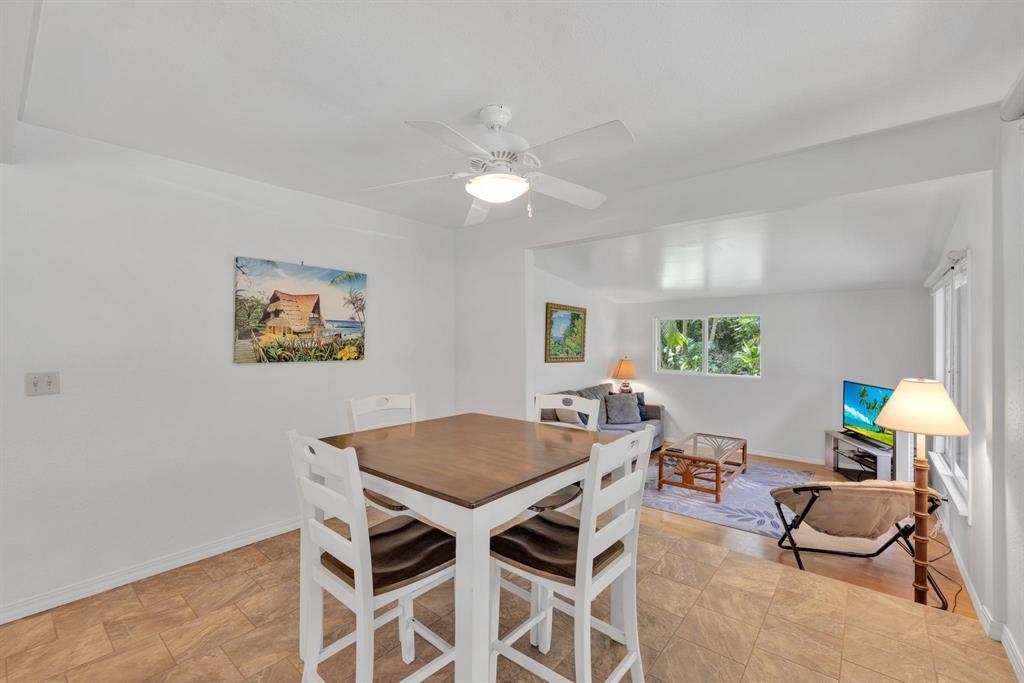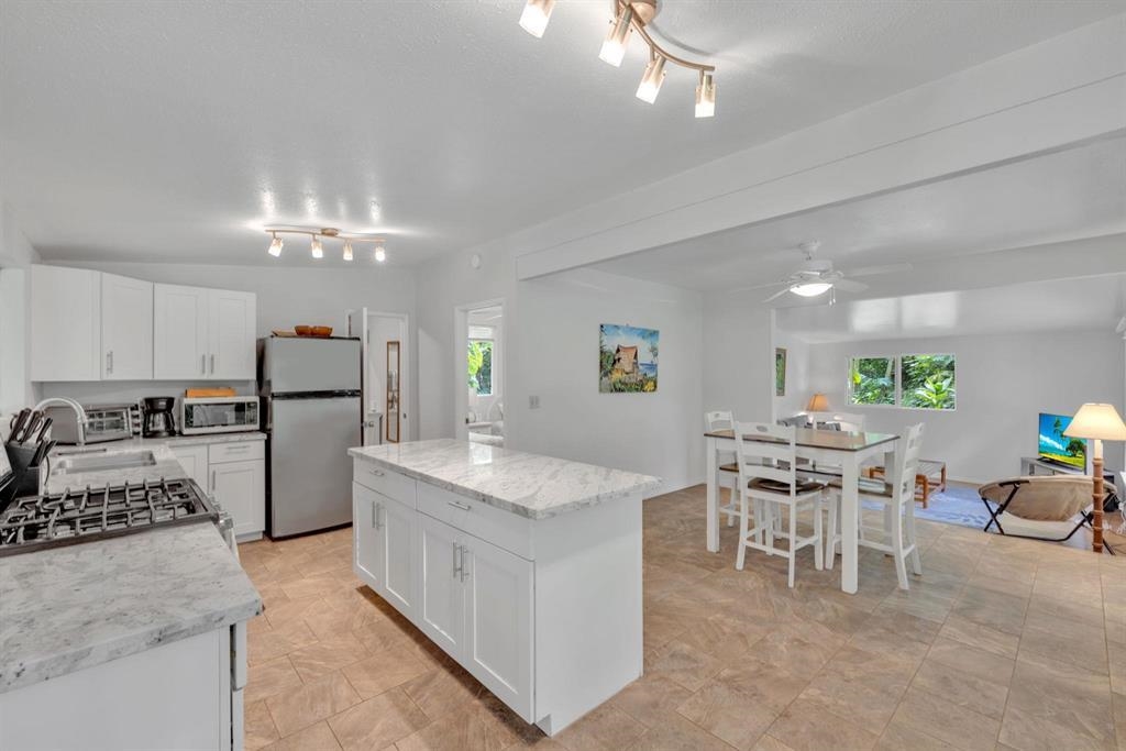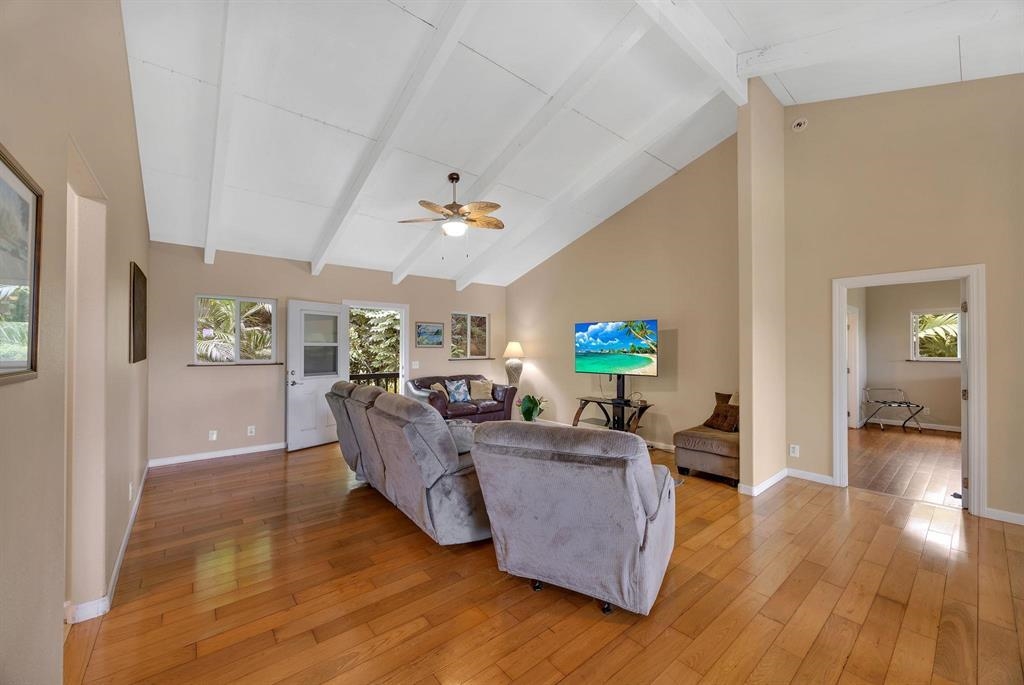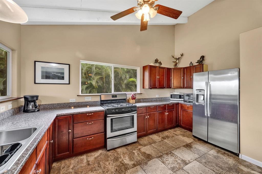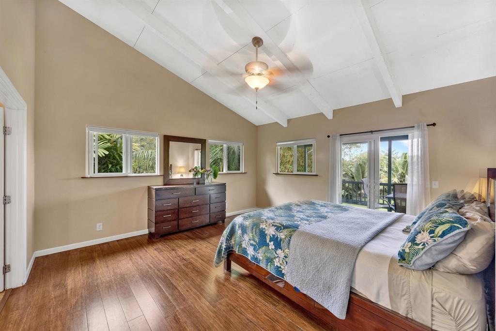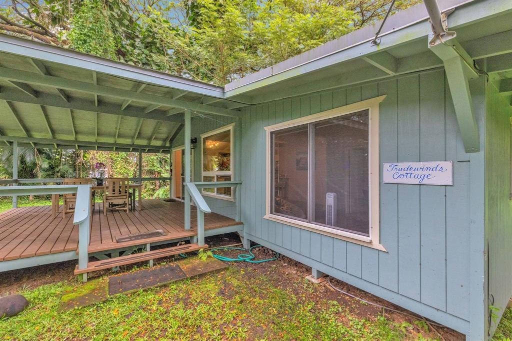 Nestled in seclusion yet just minutes from Hana town, this beautiful home and cottage offer a serene retreat reminiscent of Old Hawaii. The main home feels like a private treetop sanctuary, featuring an expansive deck and a spacious open floor plan with abundant windows that invite natural light and lush views. Designed for the culinary enthusiast, the kitchen boasts generous space, granite countertops, rich wood cabinetry, and a gas stove. The primary suite is a luxurious haven, complete with a walk-in closet and a spa-like en-suite bath featuring double sinks, a large shower, and a separate soaking tub. Below the home, there's ample space for an entertainment area, storage, or covered parking. The level yard has many fruit trees and tropical plantings and provides plenty of room to add a pool. The charming cottage offers a welcoming, oversized covered porch, leading into a cozy 2-bedroom, 1-bath retreat–perfect for guests or additional living space. Ideally situated near Hana town, pristine beaches, and the airport, this tropical paradise seamlessly blends privacy, convenience, and the timeless beauty of Hawaii.