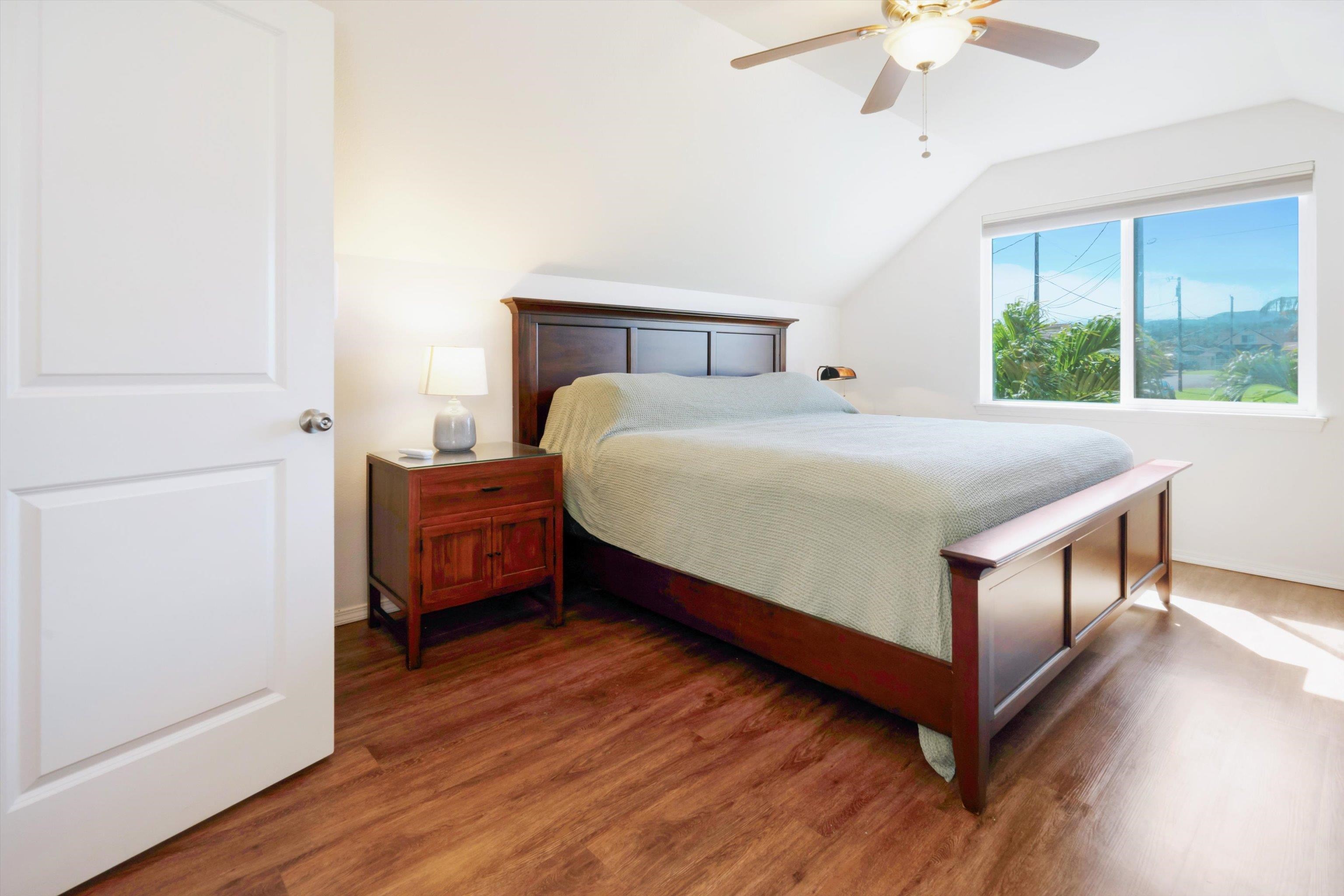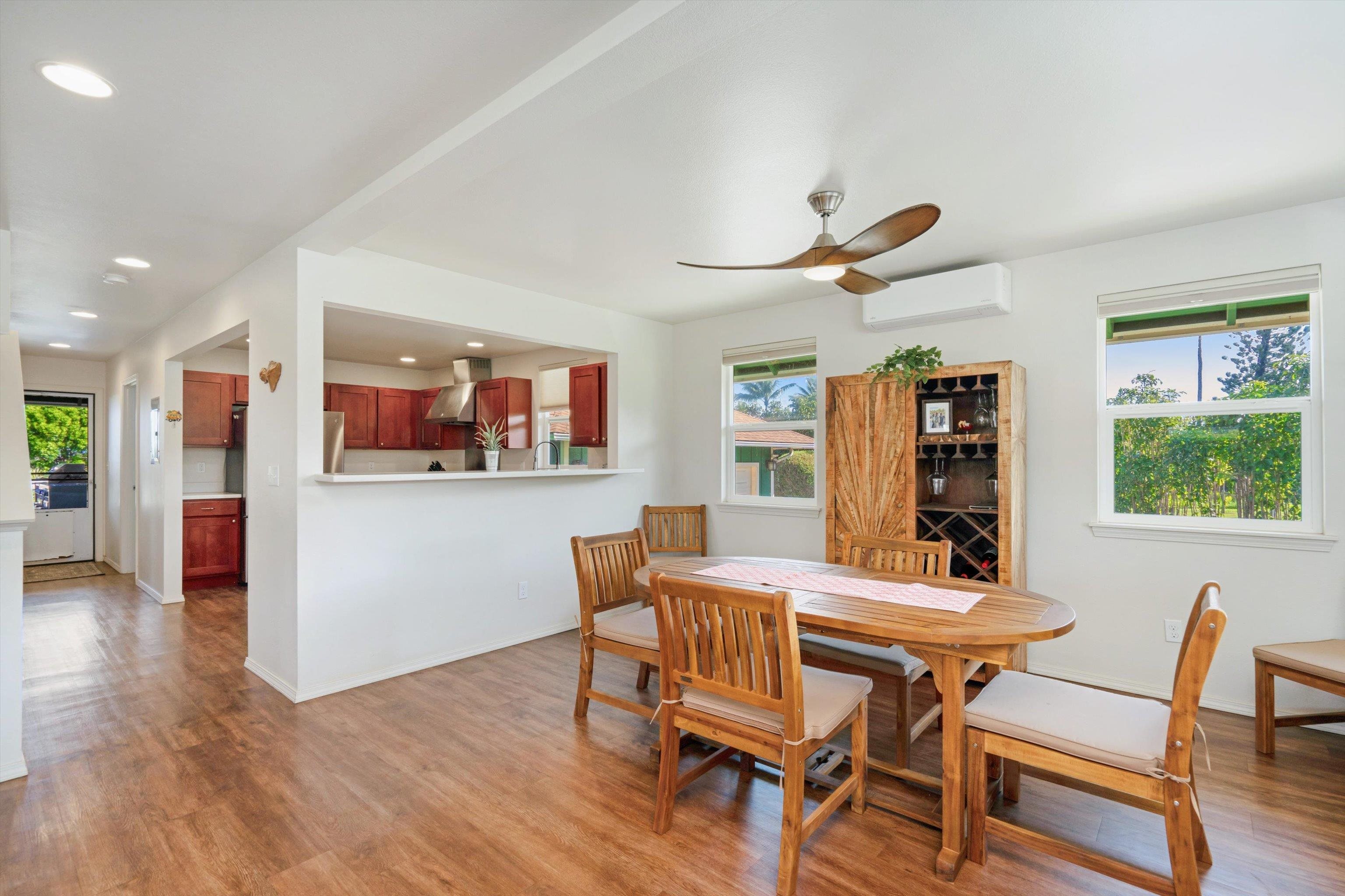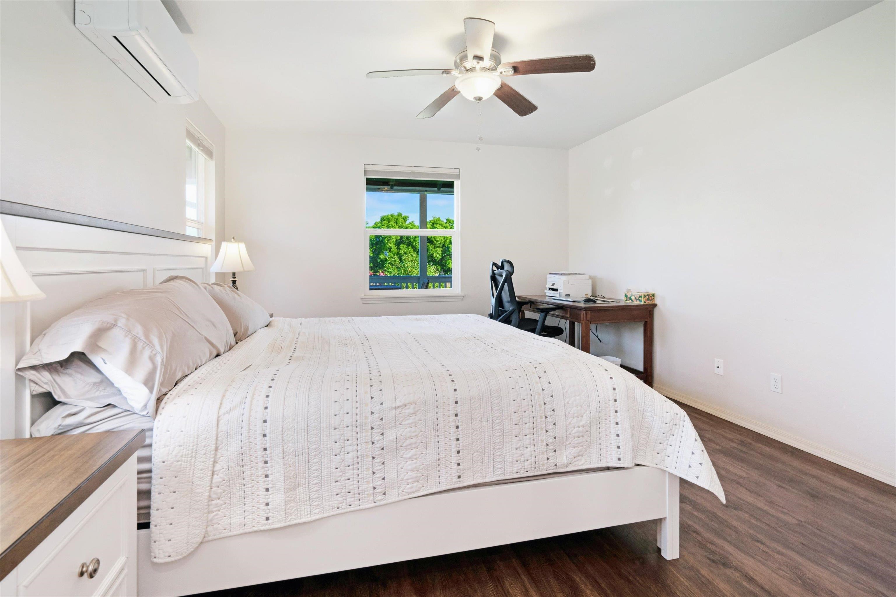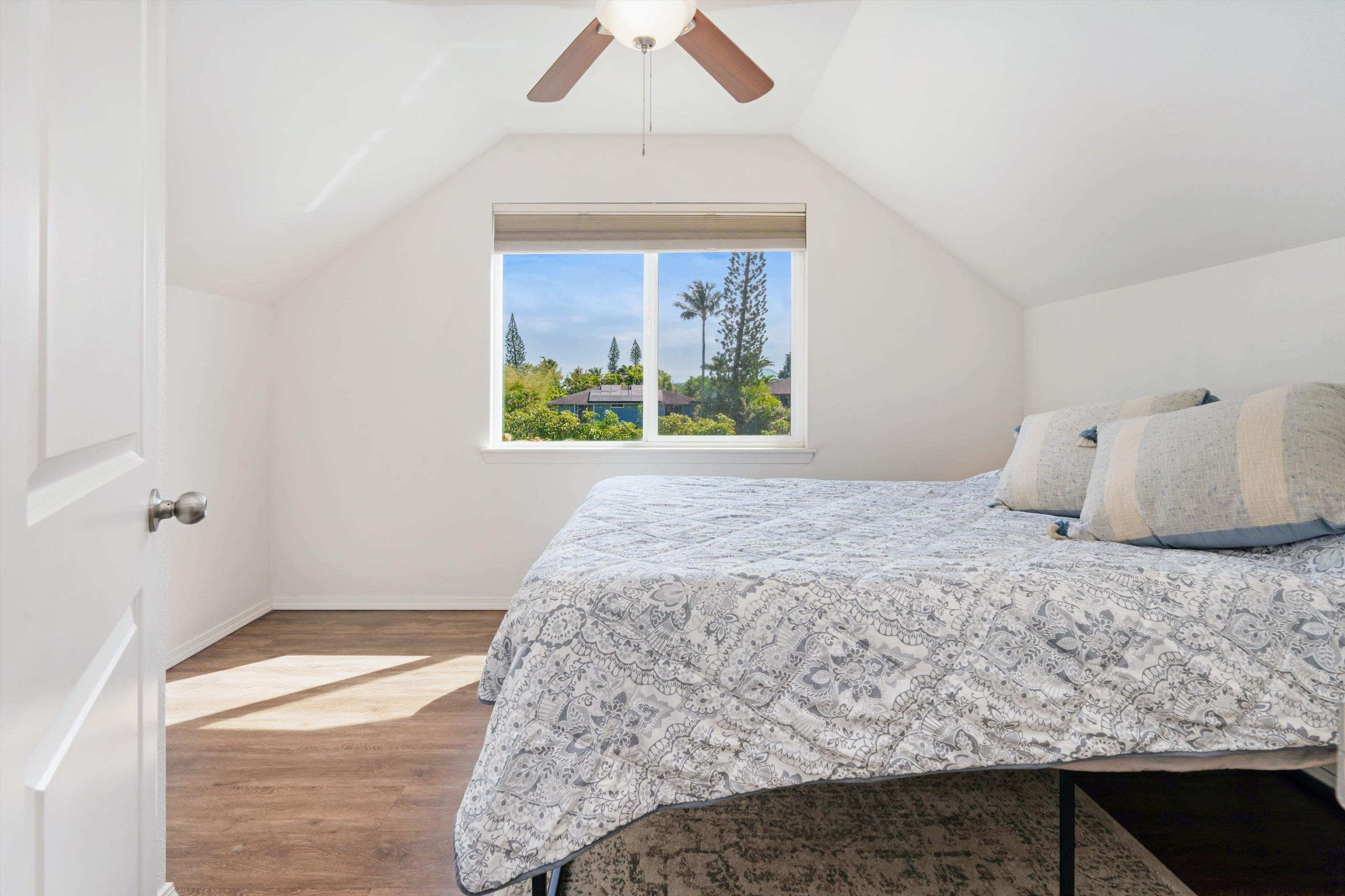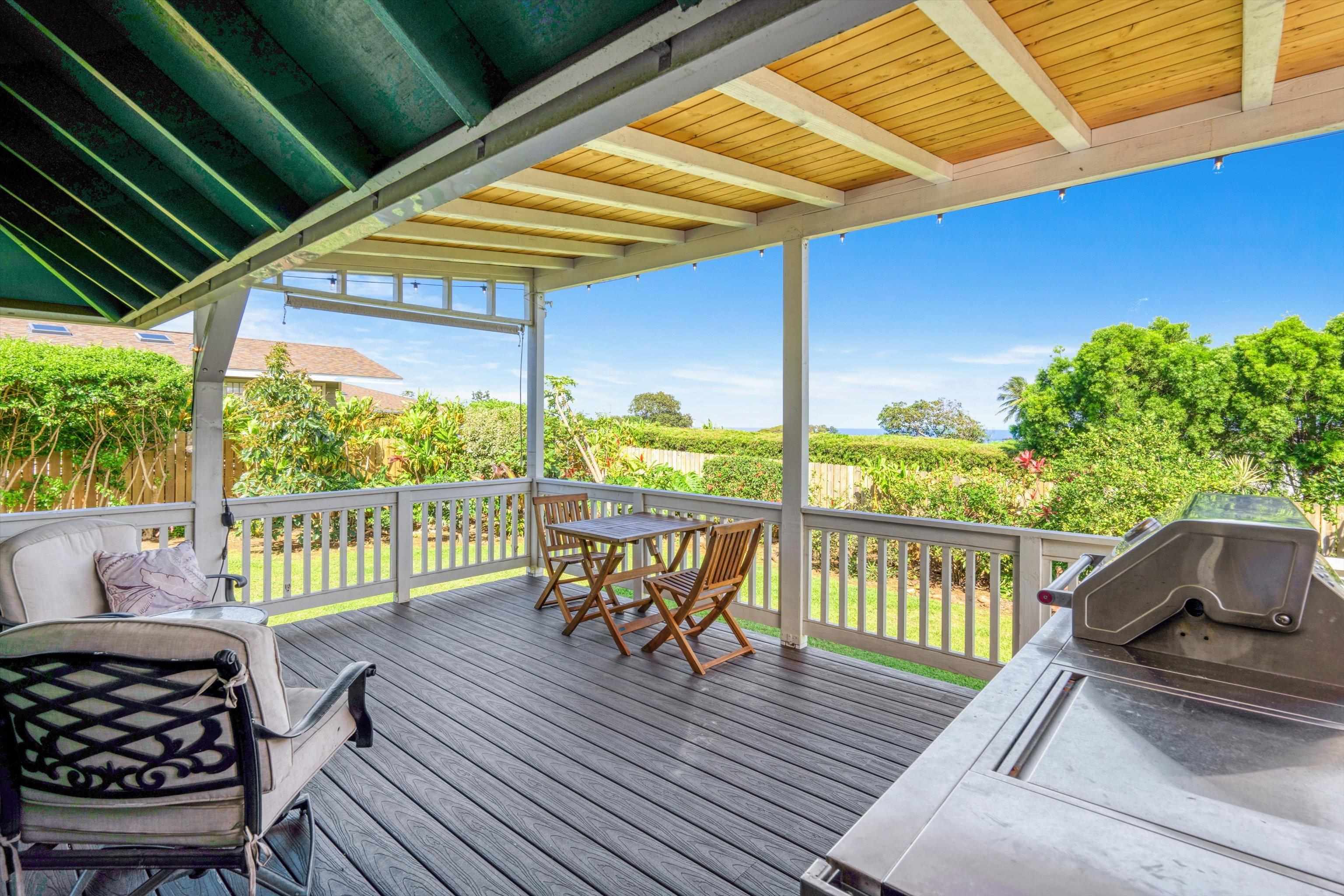 Experience the essence of North Shore living with this exceptional plantation-style residence in Haiku. Thoughtfully constructed in 2018 with high-quality materials–including durable cement board siding, asphalt shingle roofing, and dual-pane windows–this home blends timeless design with modern comfort. The home also features 5 split AC systems for all areas of the home. Nestled at the end of a tranquil lane within a gated, private enclave of just 33 homes, it embodies a sustainable urban farm lifestyle unique to the Pauwela Homes community. The front farmer’s porch welcomes the first light of east-facing sunrises, while the ocean-view back lanai invites relaxation beneath the glow of Maui’s breathtaking sunsets. From multiple rooms and vantage points, enjoy sweeping views of the Pacific Ocean and majestic Haleakala. The well-designed floor plan features a first-floor primary suite and three additional upstairs bedrooms, each enjoying elevated outlooks and gentle trade winds. A spacious chef’s kitchen anchors the home, showcasing stainless steel appliances and seamless access to the ocean-view lanai–perfect for entertaining or unwinding with family and friends. The beautifully landscaped backyard is a tropical sanctuary with over 15 varieties of fruit trees and a full irrigation system to support year-round abundance. Adding to its allure is a deeded 5,000-square-foot fenced farm plot boasting mature fruit trees–including avocado, citrus, mango, banana, and cherry varieties–ideal for those seeking a productive garden or hobby farm. Perfectly positioned adjacent to Haiku Elementary and the neighborhood park, this property is minutes from Kuiaha Bay and world-famous Pe'ahi (Jaws) surf break, and less than 20 minutes from town. Pride of ownership defines this exclusive community, where homes rarely become available for sale. This remarkable home invites you to step effortlessly into the Maui lifestyle–complete with exclusive use of your private yard and farm plot–and begin enjoying the best of North Shore living from day one. This is a residential CPR with 11,587 sq ft of land for the dwelling + 5,000 sq ft farm plot = 16,587 total land sq ft.