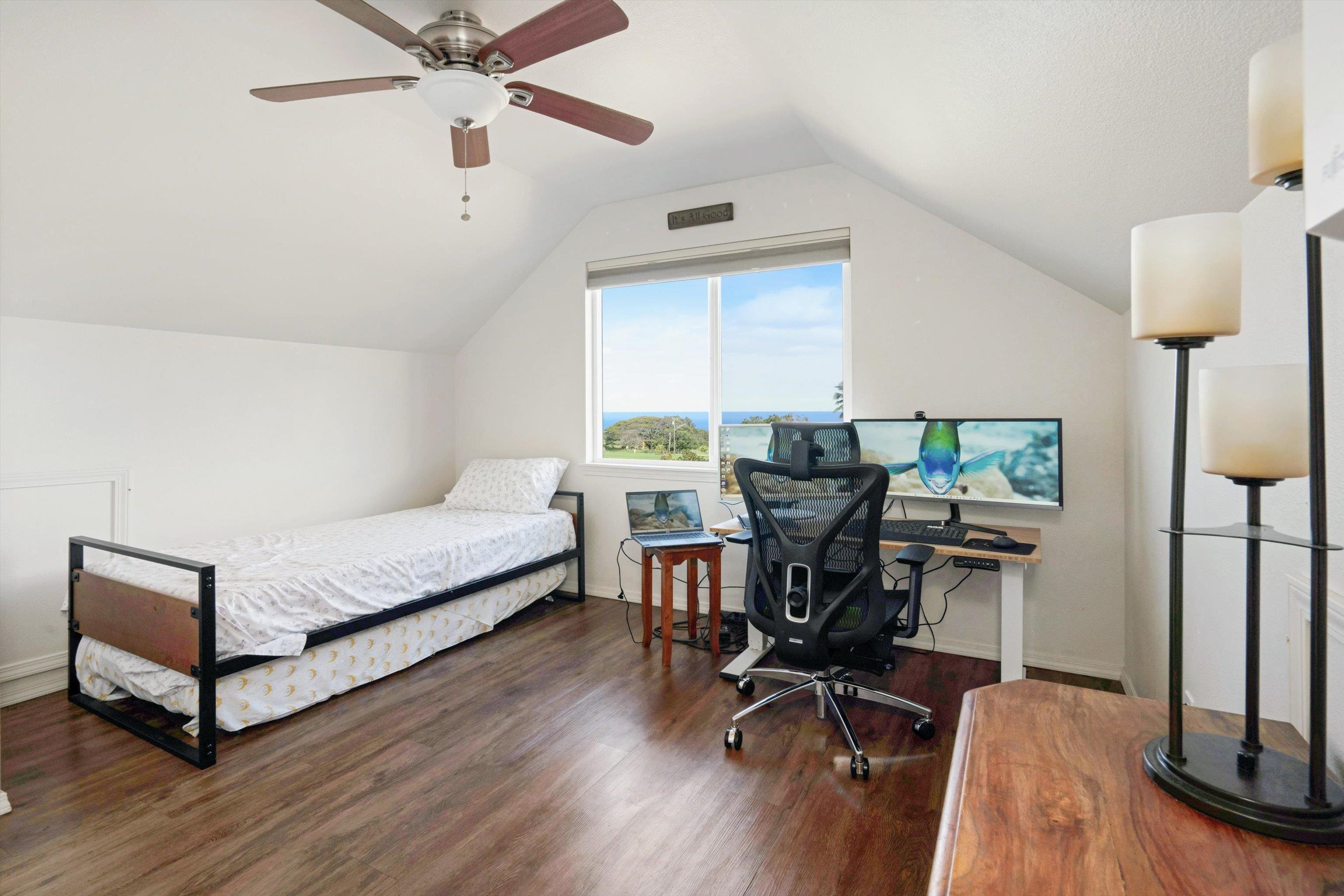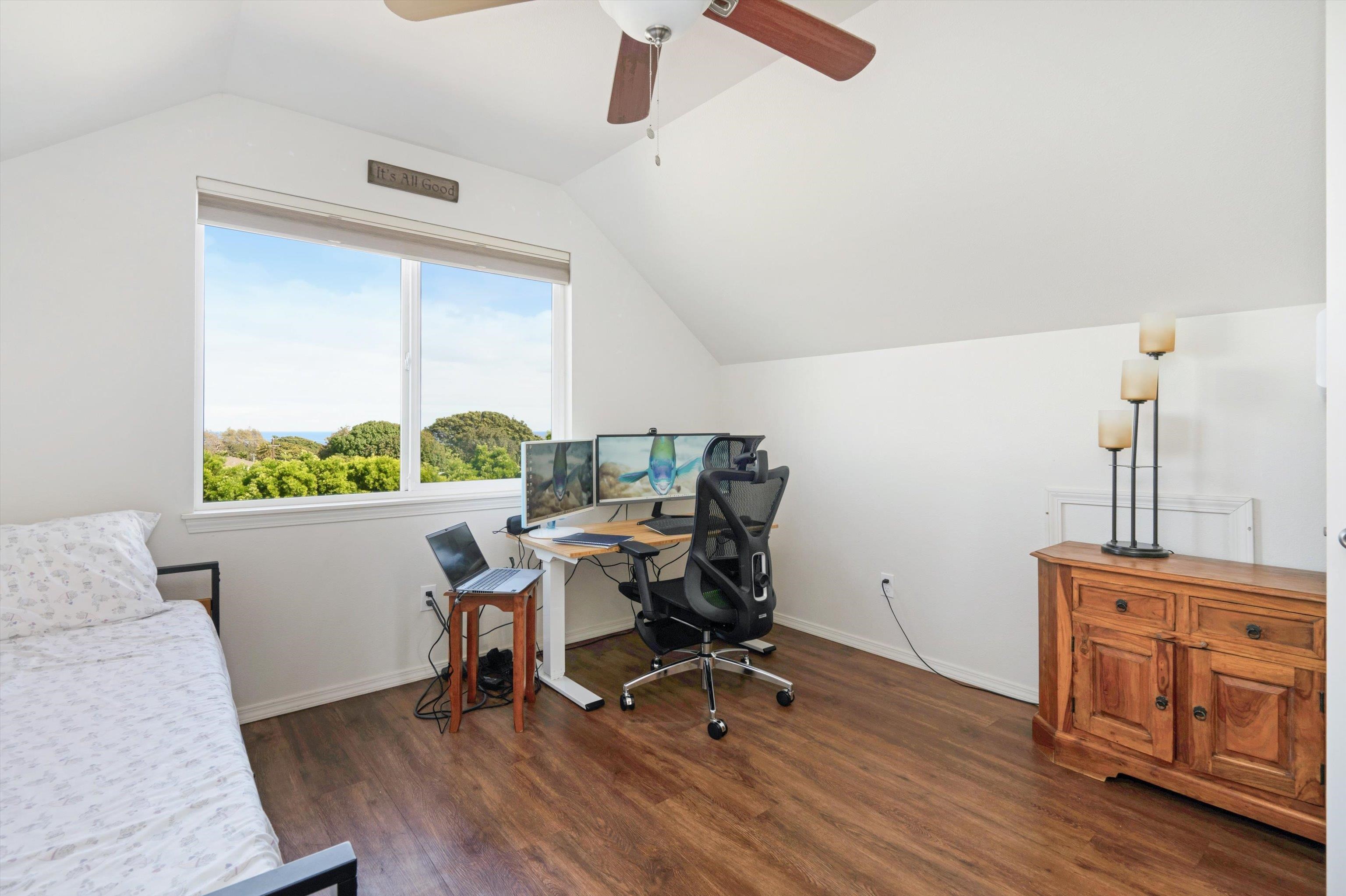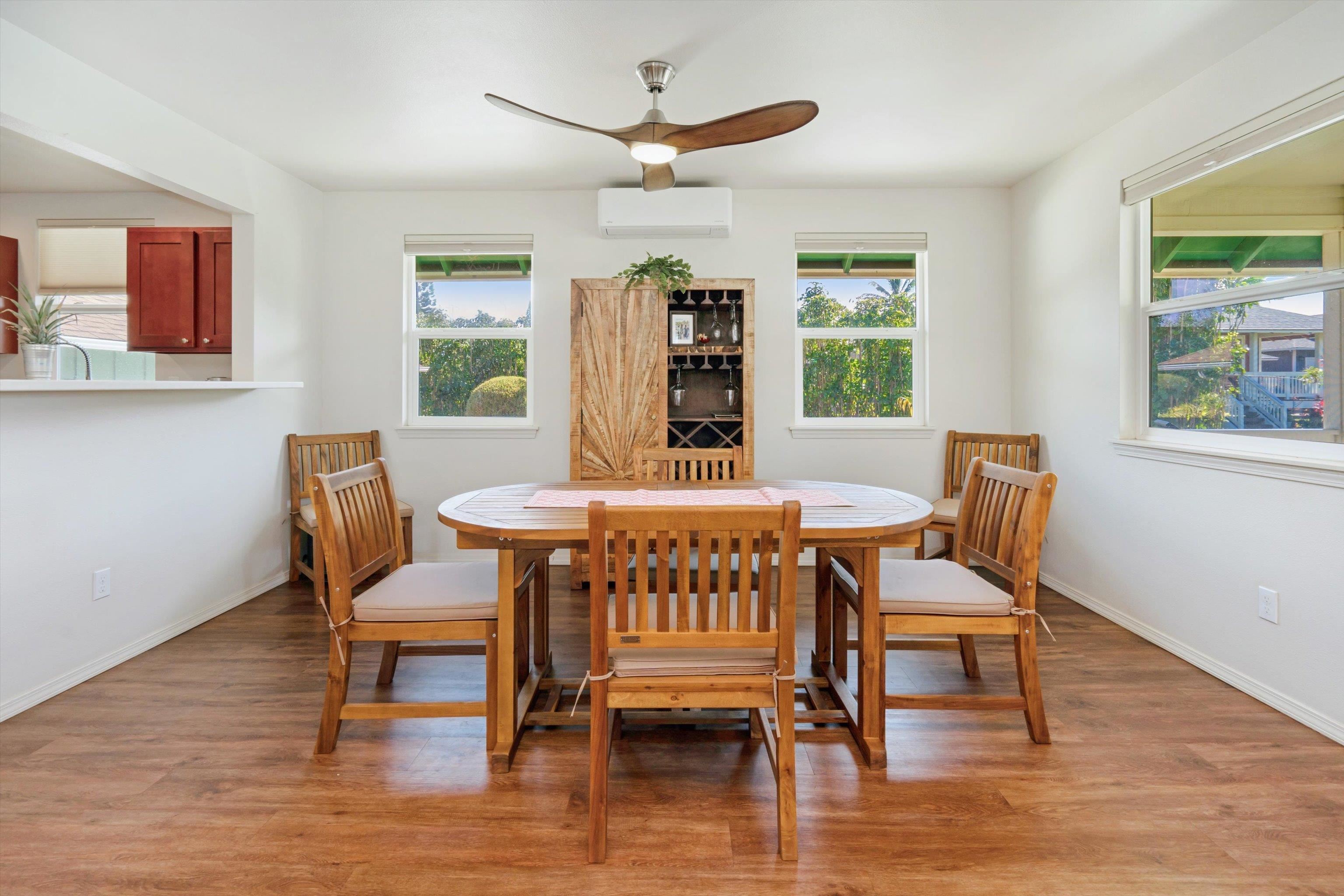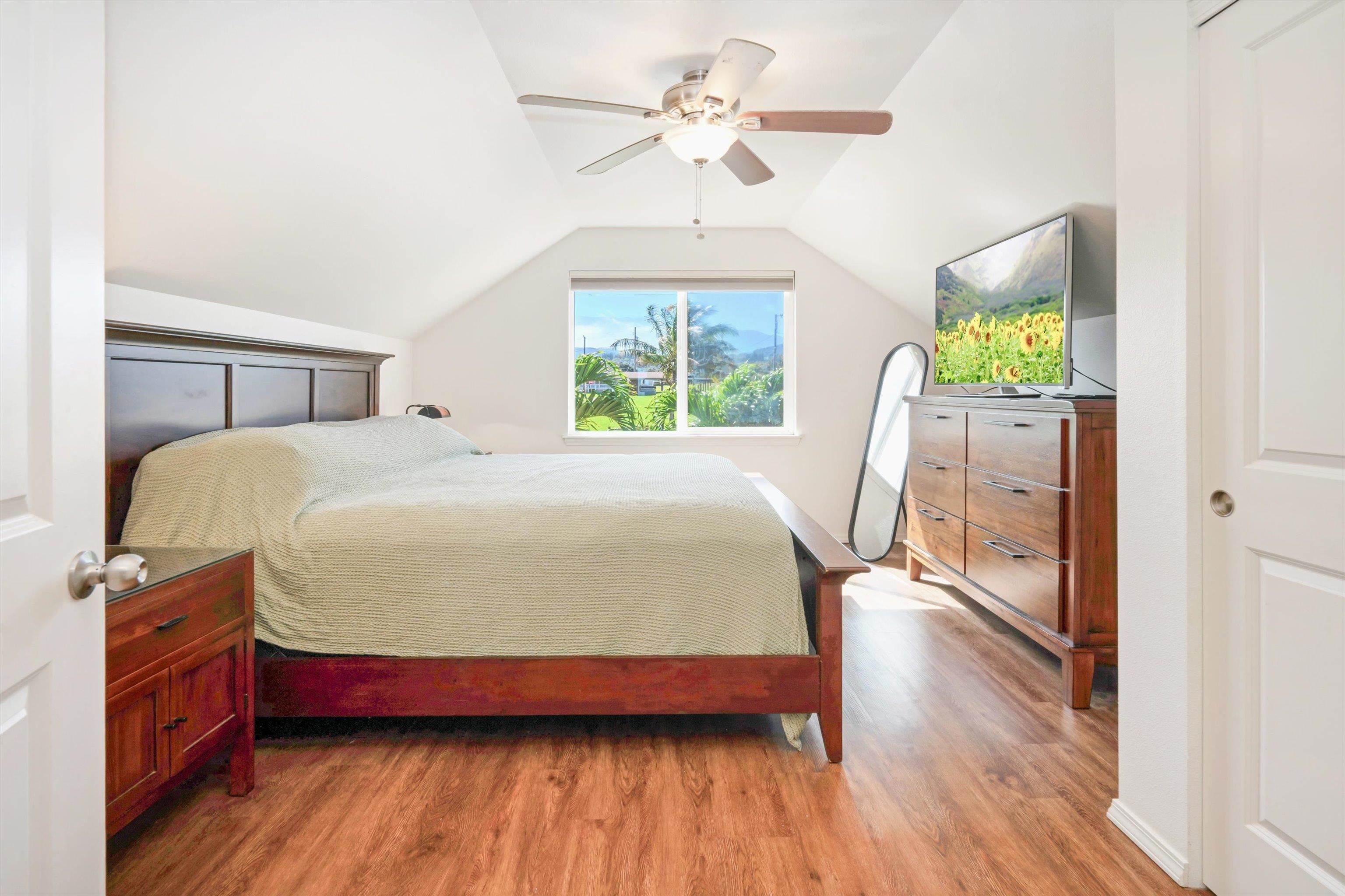 Experience the essence of North Shore living with this exceptional plantation-style residence in Haiku. Thoughtfully constructed in 2018 with high-quality materials–including durable cement board siding, asphalt shingle roofing, and dual-pane windows–this home blends timeless design with modern comfort. The home also features 5 split AC systems for all areas of the home. Nestled at the end of a tranquil lane within a gated, private enclave of just 33 homes, it embodies a sustainable urban farm lifestyle unique to the Pauwela Homes community. The front farmer’s porch welcomes the first light of east-facing sunrises, while the ocean-view back lanai invites relaxation beneath the glow of Maui’s breathtaking sunsets. From multiple rooms and vantage points, enjoy sweeping views of the Pacific Ocean and majestic Haleakala. The well-designed floor plan features a first-floor primary suite and three additional upstairs bedrooms, each enjoying elevated outlooks and gentle trade winds. A spacious chef’s kitchen anchors the home, showcasing stainless steel appliances and seamless access to the ocean-view lanai–perfect for entertaining or unwinding with family and friends. The beautifully landscaped backyard is a tropical sanctuary with over 15 varieties of fruit trees and a full irrigation system to support year-round abundance. Adding to its allure is a deeded 5,000-square-foot fenced farm plot boasting mature fruit trees–including avocado, citrus, mango, banana, and cherry varieties–ideal for those seeking a productive garden or hobby farm. Perfectly positioned adjacent to Haiku Elementary and the neighborhood park, this property is minutes from Kuiaha Bay and world-famous Pe'ahi (Jaws) surf break, and less than 20 minutes from town. Pride of ownership defines this exclusive community, where homes rarely become available for sale. This remarkable home invites you to step effortlessly into the Maui lifestyle–complete with exclusive use of your private yard and farm plot–and begin enjoying the best of North Shore living from day one. This is a residential CPR with 11,587 sq ft of land for the dwelling + 5,000 sq ft farm plot = 16,587 total land sq ft.
