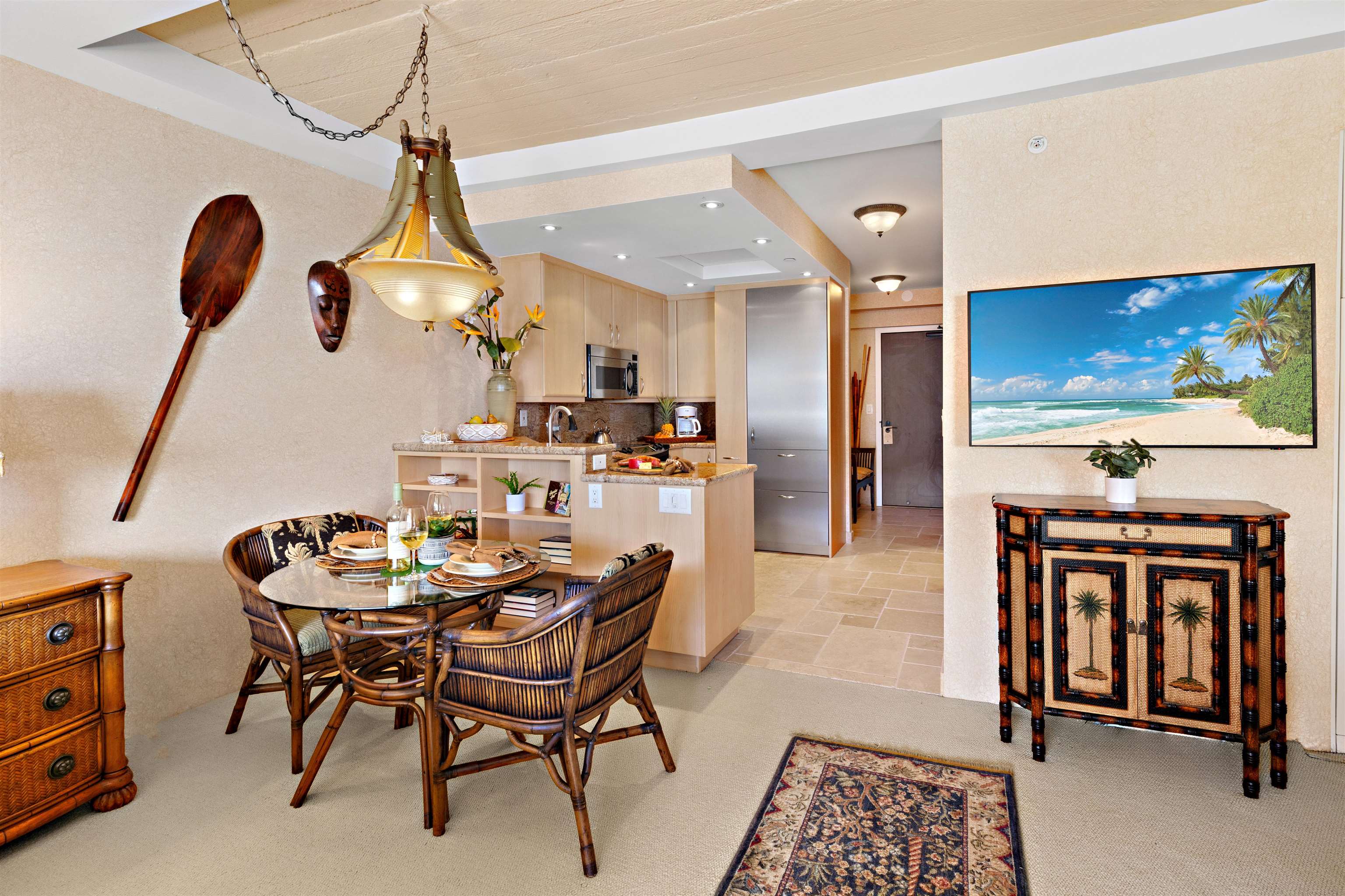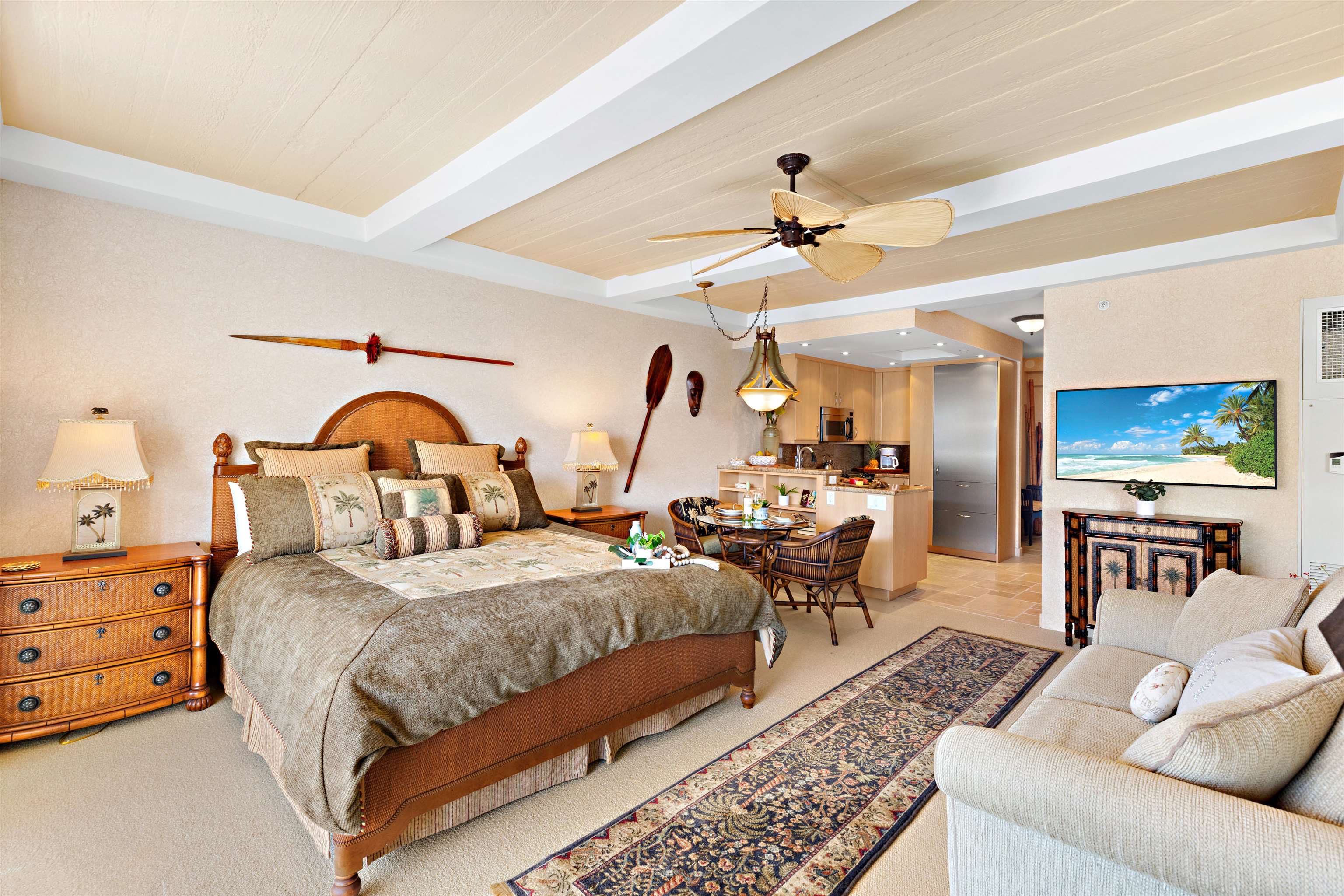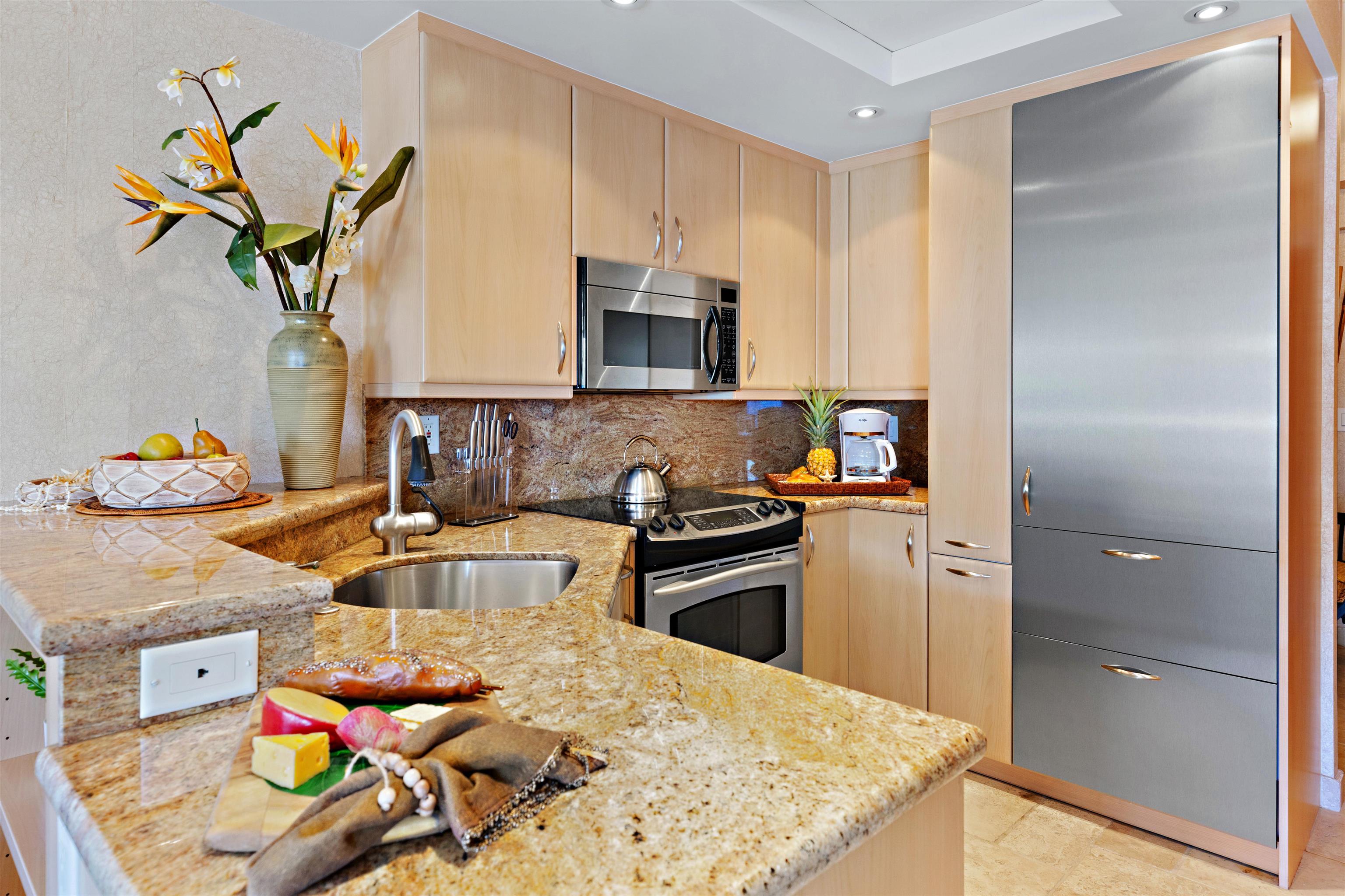 Positioned along the world-renowned shores of Ka?anapali Beach, Residence 913 at The Whaler presents a rare opportunity to own a hotel-zoned beachfront retreat with sweeping ocean views and effortless resort-style living. From the moment you step inside, the expansive lanai and interior living space frame the Pacific, creating a seamless indoor-outdoor experience that captures Maui’s most iconic sunsets. Thoughtfully upgraded, the residence features a refined kitchen outfitted with premium stainless steel appliances, custom cabinetry, granite surfaces, and a Sub-Zero refrigeration system–designed to blend functionality with elevated design. The bathroom has been tastefully renovated with a spacious walk-in shower, while a generous owner’s storage closet discreetly incorporates an in-unit washer and dryer–an uncommon convenience in this setting. The Whaler delivers a full-service resort experience, offering an array of amenities including oceanfront pool and spa, tennis and pickleball courts, a modern fitness center, and attentive front desk and concierge services. An established on-site rental program provides flexibility for both personal use and income potential. Located in the heart of Ka?anapali, you are just steps from beachfront dining, luxury shopping, and the vibrant energy of one of Maui’s most desirable destinations. Covered underground parking with direct building access adds to the ease of ownership. Whether you’re seeking a personal sanctuary or a high-performing vacation rental, this residence embodies the essence of Maui beachfront ownership–where lifestyle, location, and investment potential converge.
