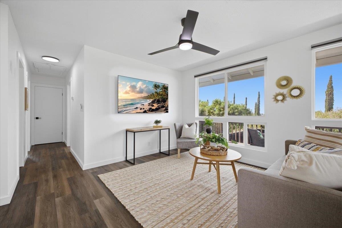Welcome to Maui Uplands! This beautiful 2-bedroom, 2-bath home with views of the West Maui mountains was fully renovated in 2023. Luxury vinyl flooring, custom bathrooms, a bright and functional kitchen are just some of the wonderful features of this spacious 1,012 sqft home. Attic insulation was installed to maximize the efficiency of a new Bosch central AC and heating system for those hot summer days and cool upcountry winter mornings. A 200amp power upgrade was completed to the home in April of 2024 along with a Tesla Wall Charger. A privacy fence, brand new hot tub, and concrete slab are the icing on the cake to this sweet upcountry retreat. Maui Upland residents enjoy access to a private, gated pool and tennis courts. Whether you're relaxing indoors or taking in the Mountain views from your lanai, this home is designed to provide a comfortable and enjoyable living experience, making it a perfect place to call home. This is unit B of a CPR Property.