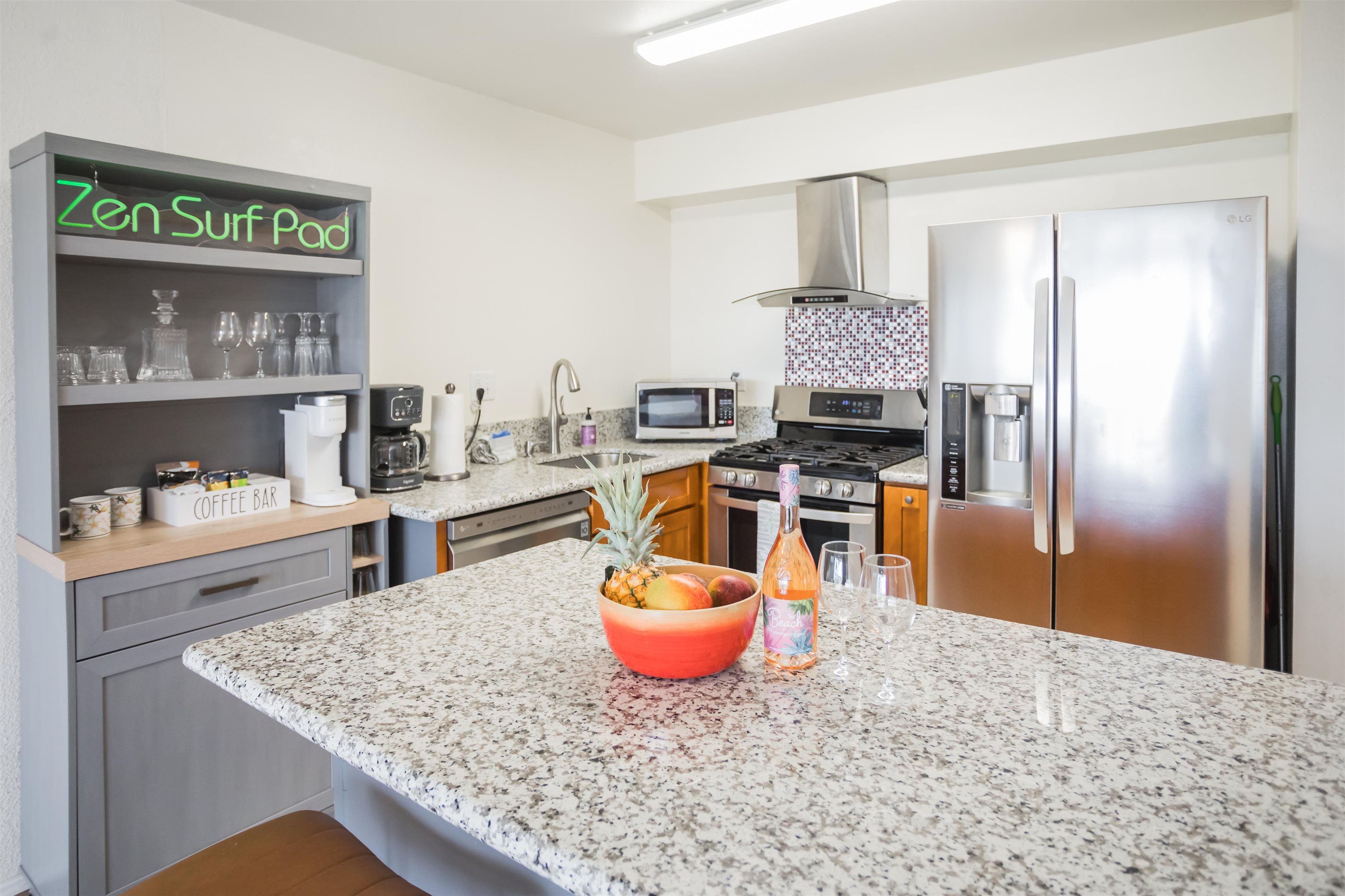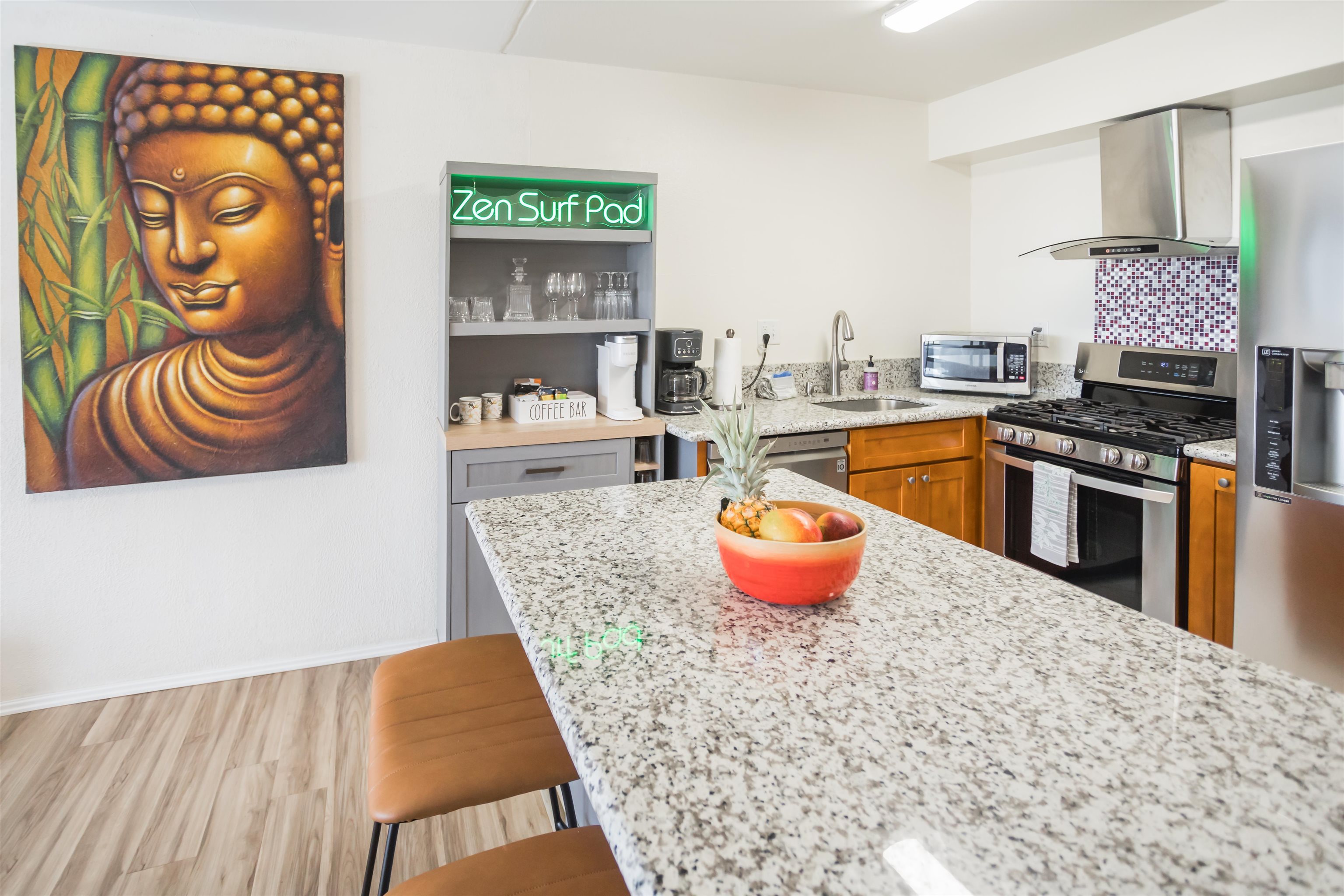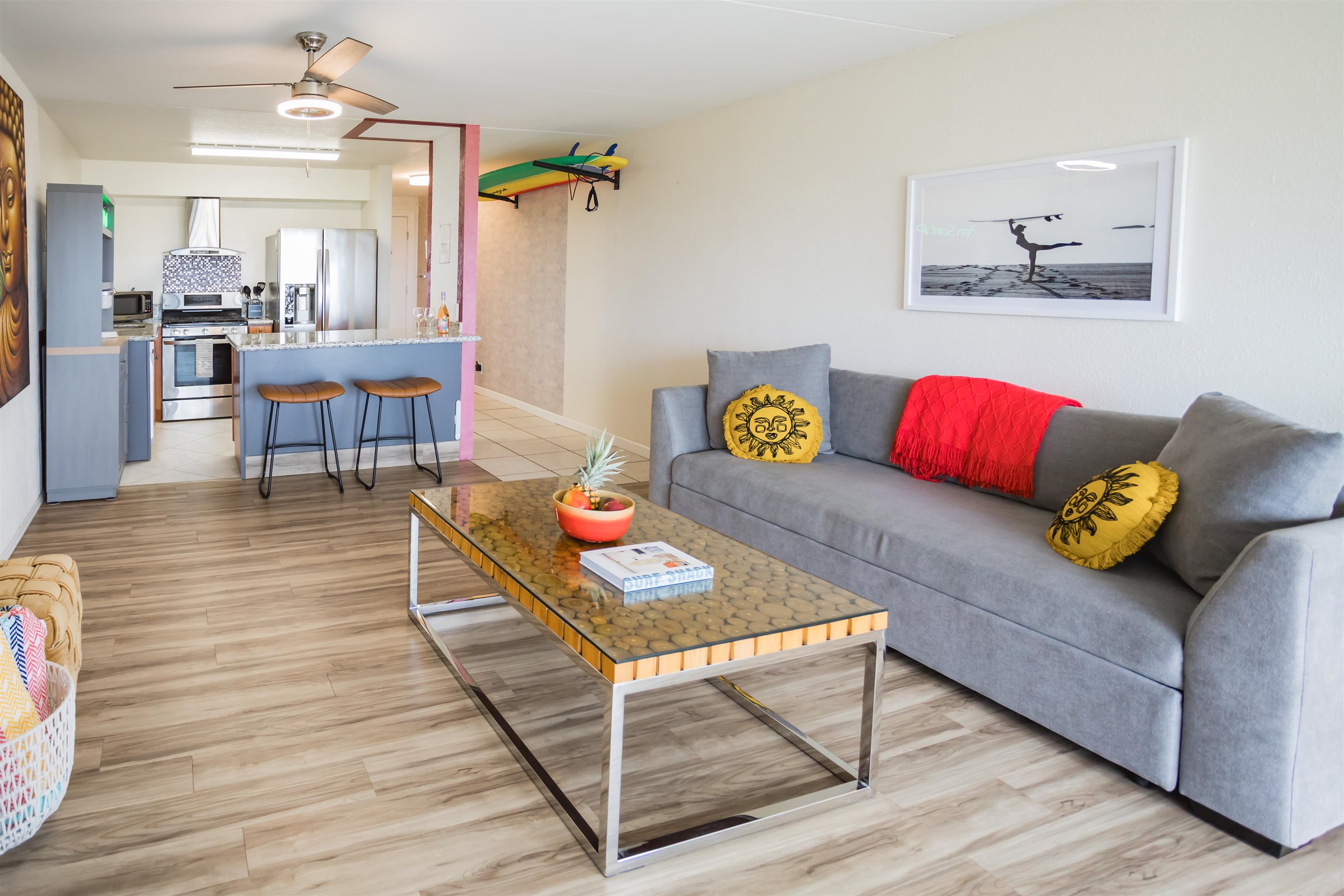 Welcome to the Zen Surf Pad at Kihei Akahi where you will never miss another Sunset. 1 bedroom 1 bath in the D building 4th floor where the ocean views are excellent. Kihei Akahi D409 has a 2021 renovation with new kitchen, cabinets and floors in the highly sought after D Building of Kihei Akahi. This unit is hotel zoned and fully furnished with modern furniture and decor with an in unit washer and Dryer, and large TVs in the living room and bedroom. Located on the fourth floor, the Lanai boasts exceptional views that will make you understand why Kihei Maui is great for sunsets. The complex features great resort amenities including two swimming pools, barbecue area and tennis courts, and some of the fullest gardens in Kihei. Just across the street from Kihei's Kamaole ll beach, this convenient location is just a short distance away from shopping, restaurants, and some of Maui's most enjoyed Golf Courses. This is an opportunity to own a piece of Maui on earth. Listing Agent is married to the Seller.