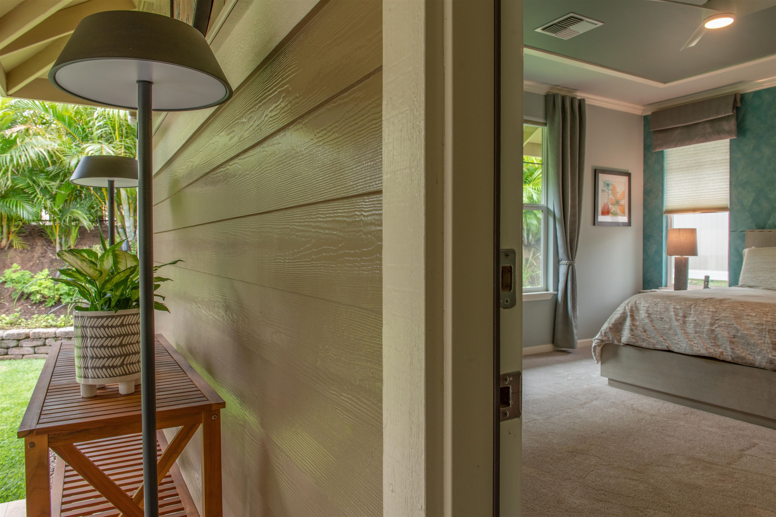 Originally built as the developer’s Model Home in The Parkways at Maui Lani, this elevated single-level Mauna Kea floor plan on Olina Street was built to set the standard for the entire subdivision. The 1,941 sq ft residence sits on one of the community’s largest lots at 9,728 sq ft and showcases refined woodwork, crown moulding, a designer color palette, 9 ft. ceilings, 8 ft doors, and an open, thoughtfully designed layout that feels both spacious and livable. Recent improvements enhance both comfort and efficiency, including a 2023 Solar Sun Chiller heat pump system powered by 6 PV panels for year-round cooling with reduced energy costs. Additional upgrades include interior paint, custom drapes, a California Closets system in the primary suite, new ceiling fans, tile on both lanais, and an alarm system on all windows and doors. The fully enclosed backyard, with perimeter fencing, mature areca palms, lush sod, and irrigation, creates a rare sense of privacy, while the covered lanai is ideally positioned for outdoor dining and entertaining. An oversized 3 car garage and the home being offered fully furnished means no waiting on construction timelines, no landscaping bids, no months of settling in. This is a move-in-ready opportunity within Maui Lani’s golf course community.