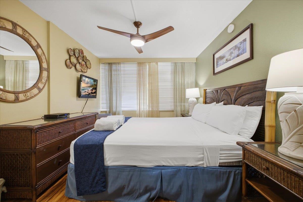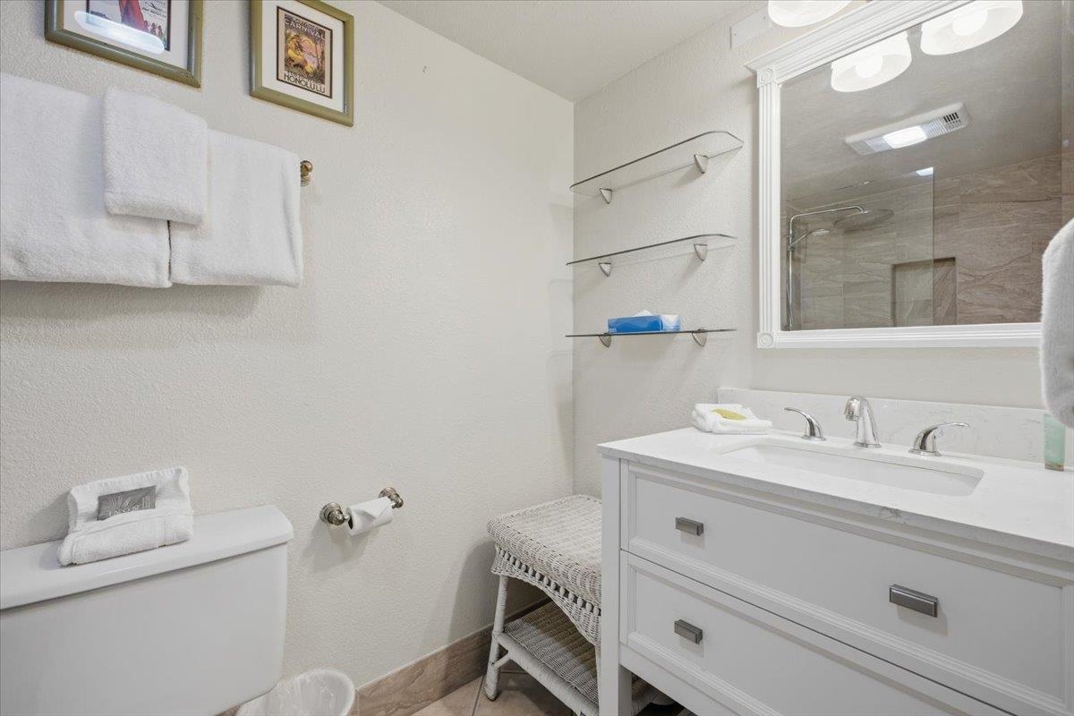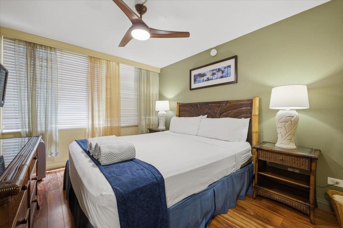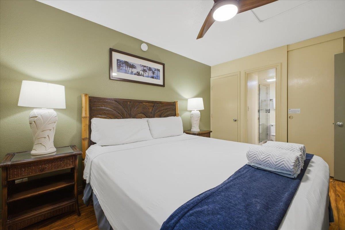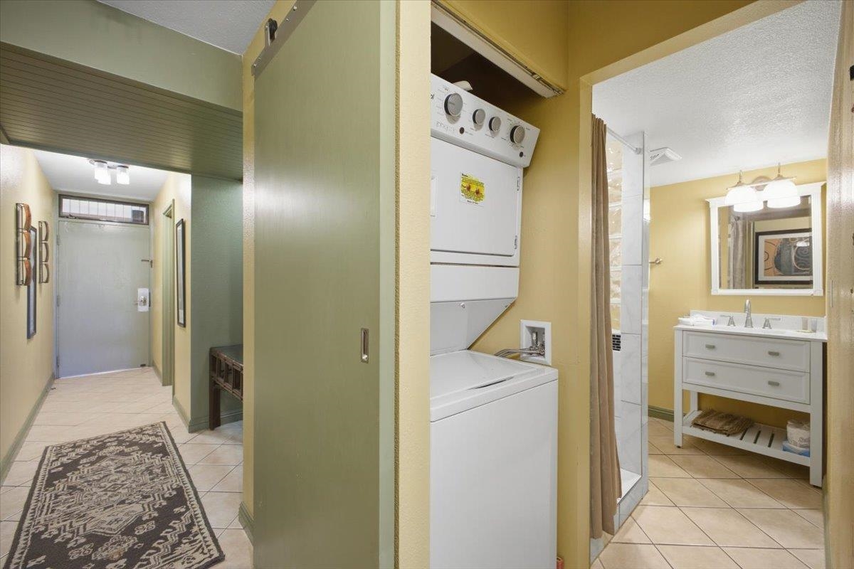 Exceptional Value Alert! Remodeled, nicely appointed, and very well kept first floor unit across the street from Kamaole Beach Park III at an amazing price! Step inside and enjoy the incredible privacy with cool tile floors stretching throughout the unit and lanai, plus vinyl plank hardwood floors in the bedroom. Perfect for you and your family - or rental guests when you are away. The tasteful updates include nice lighting fixtures throughout, granite countertops with mosaic tile backsplash in the kitchen with clean white appliances, set off by handsome dark wood cabinetry. You’ll notice the beautiful art decor throughout lending a true Hawaiiana feel. Moving into the living area you find a attractive dining setup, then the comfortable sleeper sofa and a large ornate area rug to set off the space. The lanai is peaceful and private with a garden view of the impeccably kept grounds of the community. The hall bath has been remodeled with the convenience of a stacked washer/dryer and it features an updated tile shower, recent vanity, and stylish barn door access. The bedroom has a king bed, decorative fan, and nice artistic touches with the beautiful wood vinyl flooring. The main bathroom has also been updated with a beautiful tile shower plus updated vanity and lighting. This location puts you in the best, most walkable part of South Kihei, close to one beautiful world class beach after another and convenient to all the shopping and restaurants and everything in South Maui and the Wailea Resort. Don’t miss this excellent opportunity!