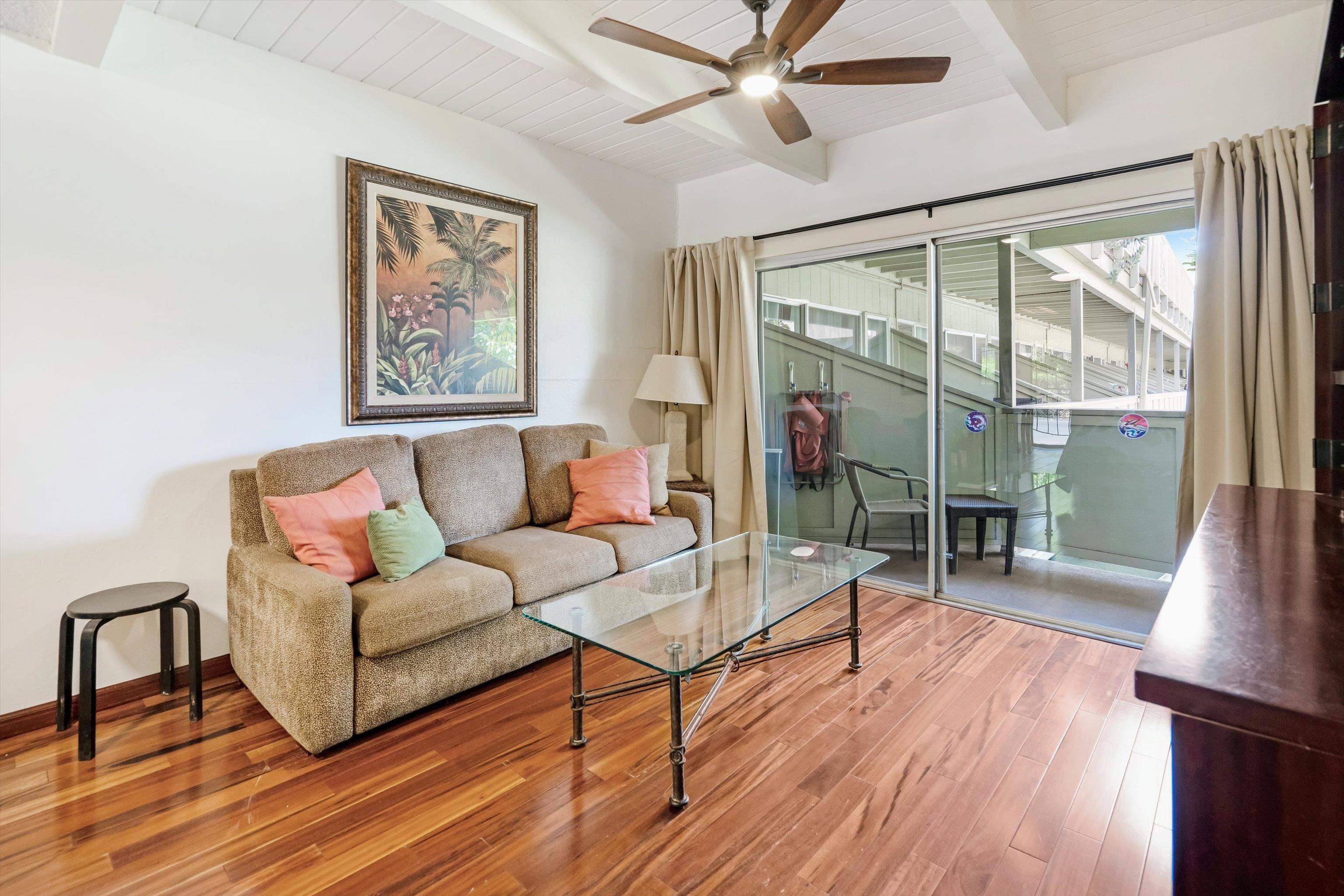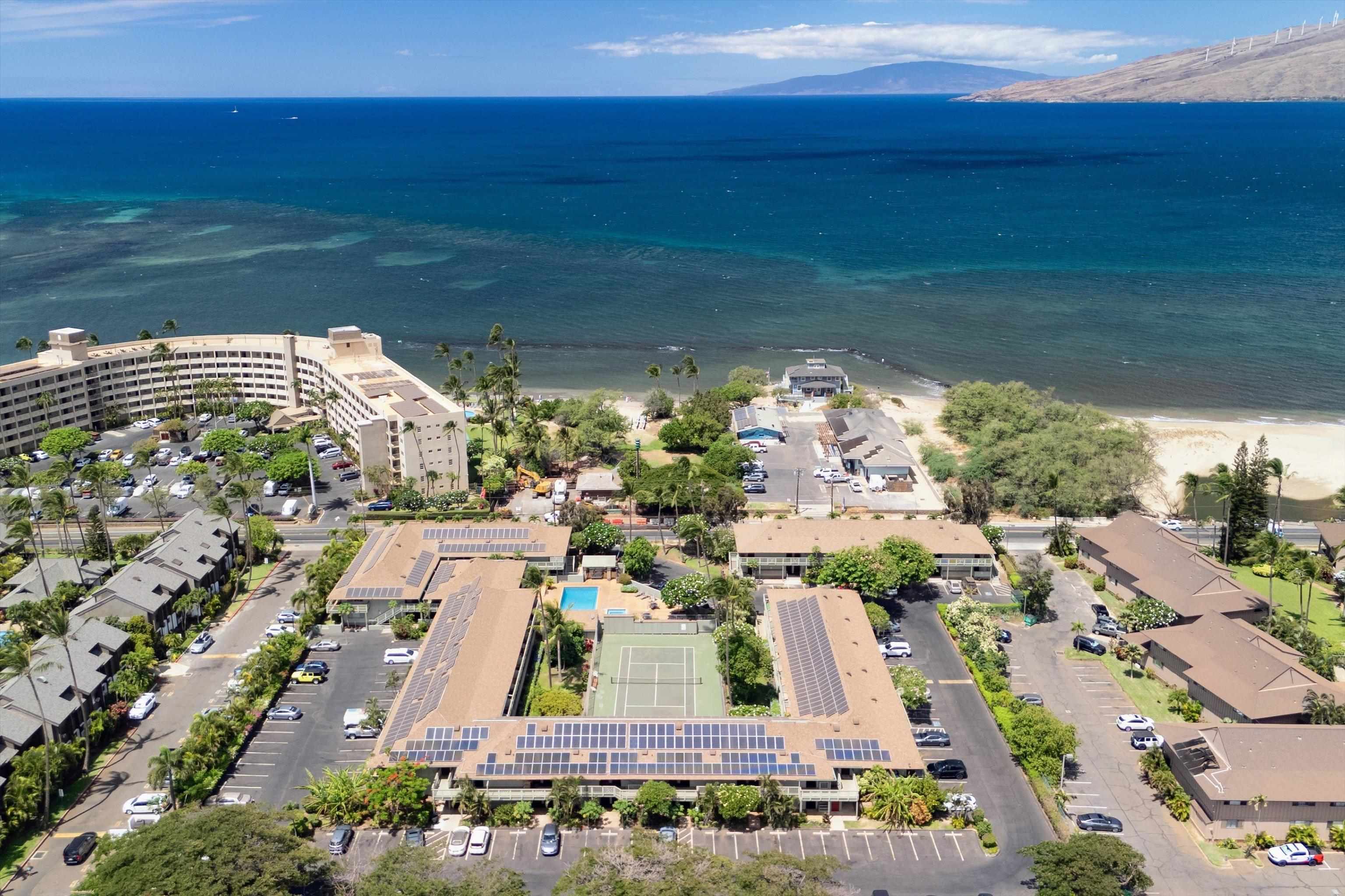 Don’t let the square footage fool you this studio delivers a full dose of tropical charm. Located in the boutique Kihei Bay Surf community, just across from Kalepolepo Beach Park, the unit offers a seamless blend of comfort, style, and convenience. Inside, you’ll find a thoughtfully designed space featuring a mix of tile and wood flooring throughout, granite countertops, and a kitchen equipped with a range and oven, and microwave perfect for preparing everything from quick bites to island-inspired meals. The private lanai invites you to relax with your morning coffee or unwind in the evening breeze, surrounded by lush tropical landscaping. Kihei Bay Surf is known for its resort-style amenities, including a sparkling pool and hot tub, a single tennis court, and a BBQ area ideal for entertaining or enjoying a casual evening outdoors. On-site laundry facilities and assigned parking add to the ease of living, while the location offers quick access to Kihei’s vibrant shops, restaurants, and coastal trails. Whether you're seeking a personal retreat, a low-maintenance island escape, or a smart investment opportunity, this studio is move-in ready and full of potential. With its unbeatable location and inviting atmosphere, it’s your launchpad to laid-back luxury and sun-soaked adventure.