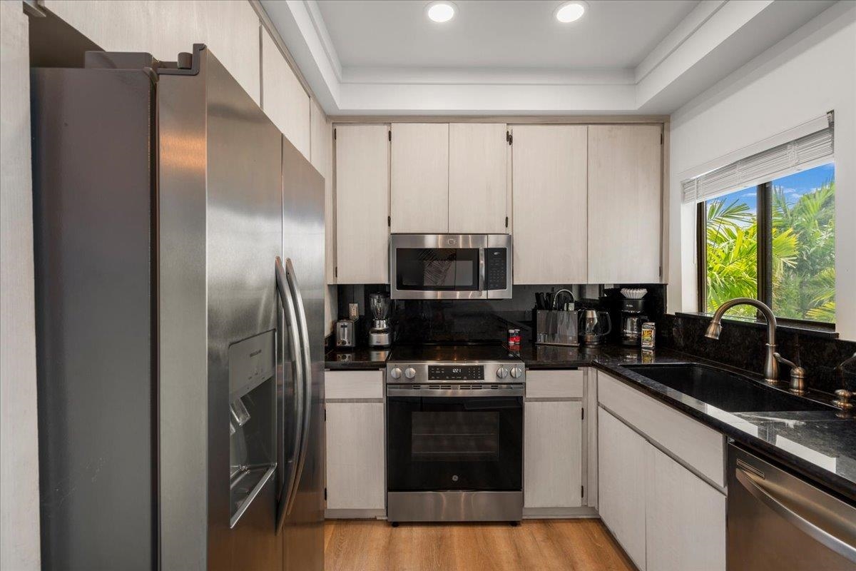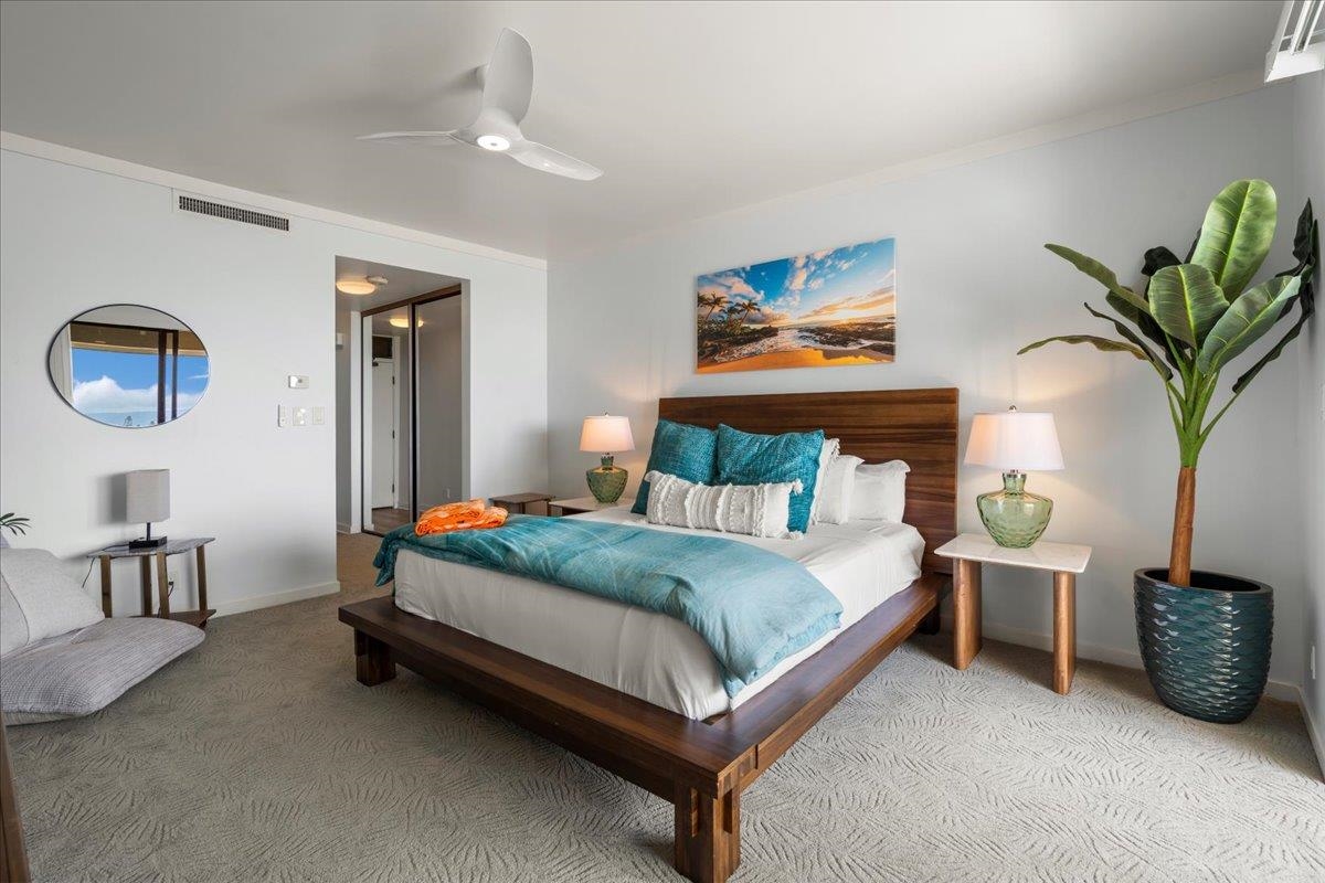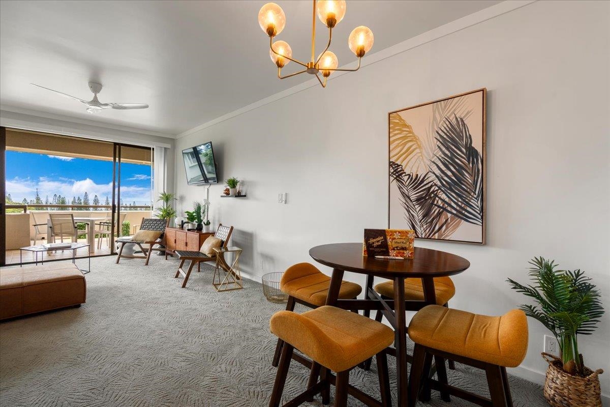 Positioned within the highly desirable Kapalua Golf Villas, Residence 20T1-2 offers an elevated island lifestyle with captivating ocean views and a prime vantage point overlooking the Kapalua Bay Course. This west-facing, one-bedroom, two-bathroom upper-level villa spans approximately 972 square feet and is perfectly oriented to enjoy Maui’s year-round sunsets and seasonal whale activity. The interior has been tastefully modernized, featuring updated flooring, a redesigned kitchen and bathrooms, stone countertops, stainless steel appliances, and a clean, contemporary color palette throughout. The layout is designed to embrace indoor-outdoor living, with both an upper lanai and a covered lower lanai providing multiple spaces to relax or entertain while taking in the surrounding scenery. Additional comforts include central air conditioning and dedicated covered parking. Kapalua Golf Villas residents enjoy access to a collection of resort-style amenities, including multiple swimming pools, spas, tennis courts, and barbecue areas, all set within beautifully maintained grounds. Conveniently located near Kapalua’s celebrated beaches, dining, golf, and the nearby Montage wellness facilities, this residence offers both tranquility and accessibility in one of West Maui’s most sought-after destinations. Offered fully furnished, this turnkey villa is ready for immediate enjoyment or rental potential.
