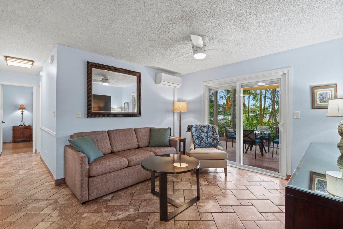 Welcome to a rarely available opportunity in Kihei Villages–where location within the complex truly matters. This 2-bedroom, 1.5-bath condo stands out as one of the most private and usable properties in the community.Set along the edge of the complex with frontage on open space, this unit enjoys a more peaceful, open setting with fewer immediate neighbors–creating a sense of breathing room that's hard to find here. Out back, you'll discover one of the home's best features: a large, fully fenced yard that has been completely reimagined. With refreshed landscaping, a brand-new irrigation system, and plenty of room to relax or entertain, this outdoor space lives more like a single-family home than a condo. Adding to the convenience, the property offers direct gated access to Kenolio Road–making it easy to head to the beach, nearby park, or your daily routine without navigating through the entire complex. From inside and out, enjoy a subtle ocean view (more than just peek-a-boo) that enhances the overall island feel. The home has been thoughtfully refreshed to feel clean, modern, and move-in ready from day one. Recent improvements include new interior and exterior paint, giving the space a bright, updated look, along with updated lighting, switches, and outlets that add a more polished, contemporary feel. Stay comfortable year-round with a split AC system in the living room and both bedrooms, providing efficient cooling throughout the home. The property is also being offered fully furnished with all new pieces, along with updated décor and artwork–creating a cohesive, comfortable space that's ready to enjoy immediately without the hassle of setting it up yourself. The open living and dining area flows naturally out to the yard, making it easy to enjoy Maui’s indoor-outdoor lifestyle every day.