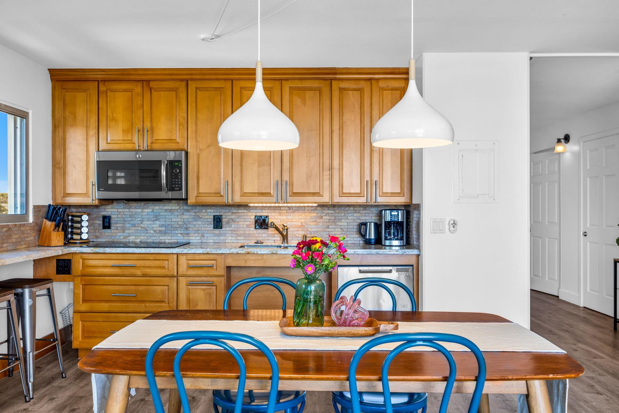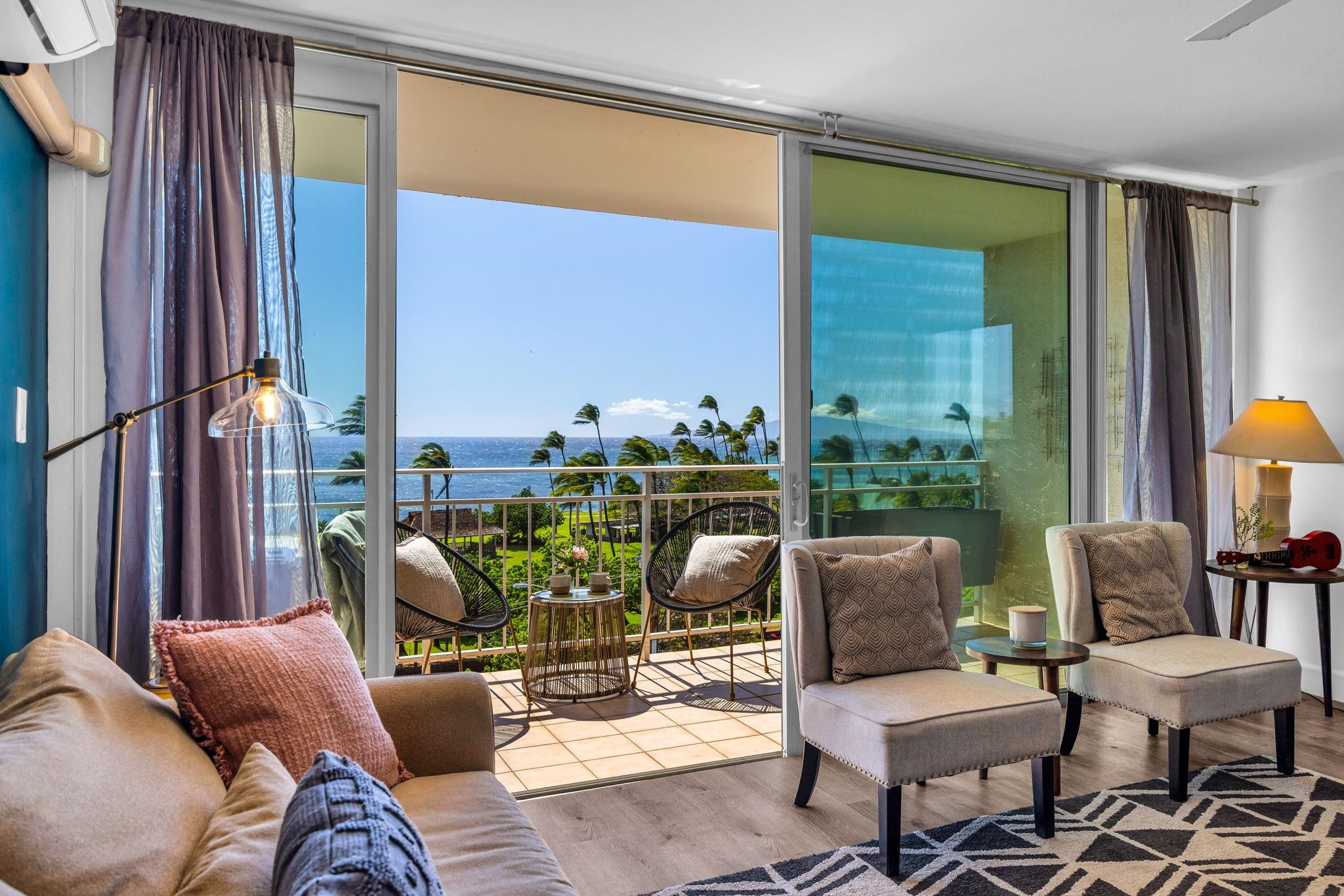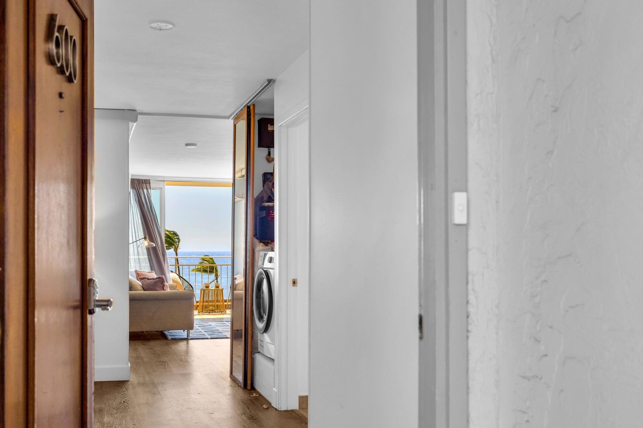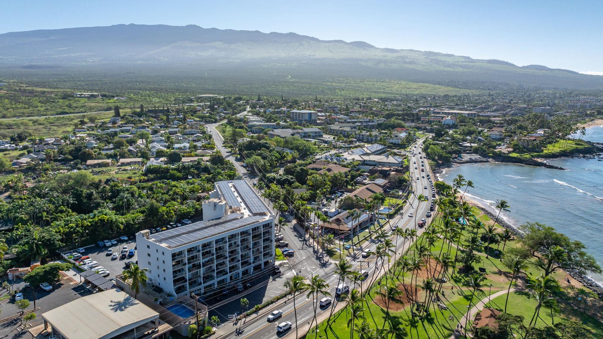 Welcome to Island Surf #600, a rare top-floor corner vacation rental in the heart of South Kihei, offering exceptional flexibility, income potential, and sweeping island views. Situated within a Business Community (B-2) Zone, this property is not affected by proposed short-term rental phase-out legislation, making it a compelling option for investors seeking stability and long-term viability. This 2-bedroom, 2-bathroom unit spans 921 square feet and is thoughtfully designed with a lock-off configuration, allowing for multiple rental strategies. With two separate entrances, the unit can be rented as a full 2-bedroom, or split into a 1-bedroom and a studio - creating a duplex-style setup that maximizes occupancy and income potential. Whether you’re looking to diversify your rental approach or cater to different guest needs, the flexibility here is a standout feature. Positioned on the top (6th) floor and at the corner of the building, Unit #600 enjoys added privacy, extra windows, and an abundance of natural light throughout. The elevated vantage point captures panoramic ocean views and stunning West Maui Mountain vistas, while its location on the quieter side of the complex - furthest from the South Kihei Road and Auhana Road intersection - helps minimize road noise and enhances the overall living experience. Island Surf is known for its unbeatable central location and mixed-use convenience. The ground level is home to a variety of local businesses, shops, and dining options, while directly across the street you’ll find The Cove surf break at Kalama Park - one of South Maui’s most popular beginner-friendly surf spots. Just behind the complex is South Maui Gardens, a vibrant open-air gathering place featuring food trucks and a weekly Thursday market with local vendors offering art, jewelry, clothing, and more. Offered fully furnished and with future bookings in place, Island Surf #600 is a turnkey opportunity ready for immediate use and income generation. With its flexible layout, strong rental appeal, and prime Kihei location, this is a property that truly checks all the boxes.