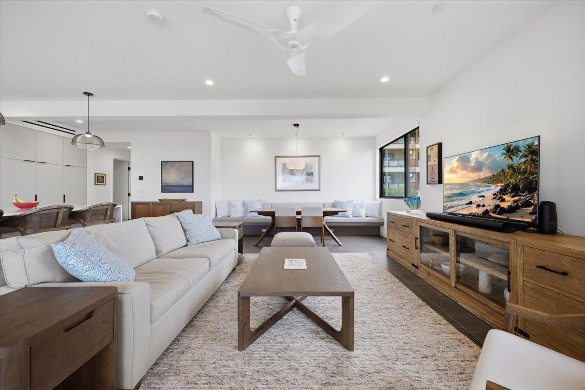 The One You’ve Been Waiting For! This pristine, second floor 2 Bedroom 2 Bath unit in Wailea’s Newest Development has it all. This premium location provides you with amazing Ocean and Outer Island views with incredible sunsets and the indescribable joy of great whale watching from your new home. La’i Loa 11C features an open floor plan that sits wide to the view for maximum enjoyment throughout all of your living areas and the generously oversized lanai. The beautiful lanai doors disappear into the walls to create a seamless indoor outdoor lifestyle where your Maui future awaits. This home is offered turnkey with gorgeous furnishings designed by Philpotts Interiors including Arhaus, DWR, RH, and Mitchell Gold. The handsome tile flooring upgrade extends to all areas and the world class chef’s kitchen with high end appliances including gas range from Bosch and Fisher Paykel double drawer dishwasher is designed to be completely open for entertaining or your daily relaxation with loved ones. The expansive lanai is impressive and where much of your Maui life will unfold. It features a Coyote gas grill with plenty of room for outdoor dining and an outdoor living area. The dining area features custom banquette and seating. You’ll notice the Hunter Douglas auto blinds and shades on all windows, plus the auto sunscreens on both sides of the oversized lanai, which provides you with the flexible privacy and customizable mood setting for appreciating the beauty of each Maui day. The two baths are elegant in both decor and function, offering the comfort and quality feel of resort type spa living. In addition to the community gates, each building has electronic access gates and garage, plus an elevator to all levels. Your private storage space in the garage area is huge and so convenient for extra storage, ready for any bikes, clubs, and all of your other Maui accessories. The gated community has unbelievable amenities including an expansive infinity edge pool with dedicated lap end, a giant hot tub spa, steam and sauna in the facilities, state of the art fitness center with free weights, two gathering areas, a secluded area with gas fired pit for sunset watching and more. This incredible unit is being sold turnkey - so just get ready to drop your bags and start living the good life in the one of a kind Wailea Resort, with all the world class beaches, shopping, restaurants, and amazing beauty of Maui to enjoy.