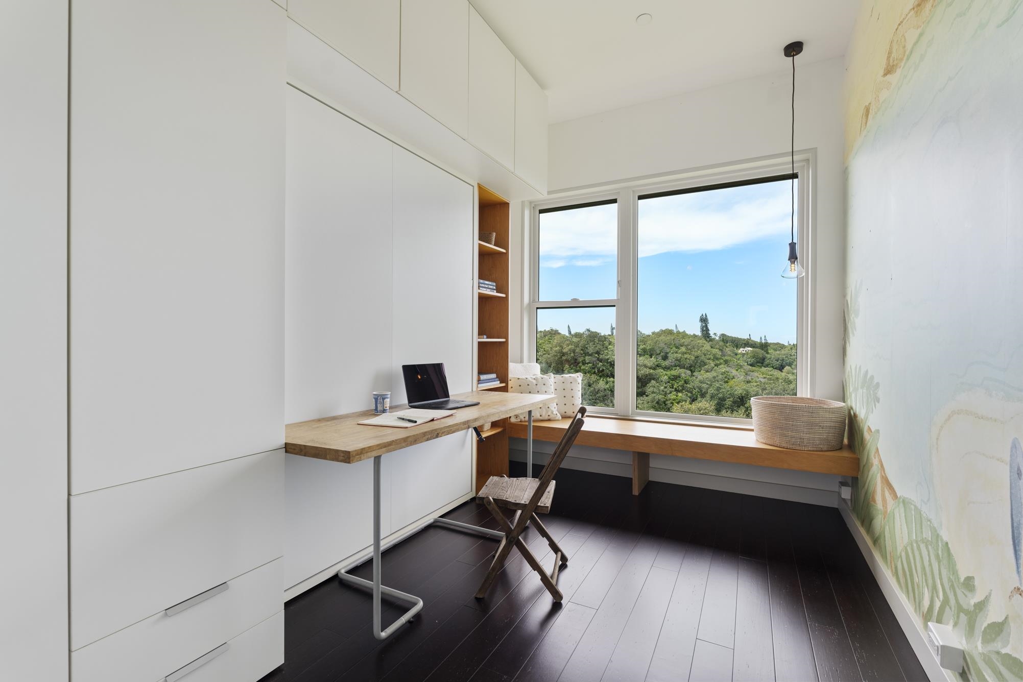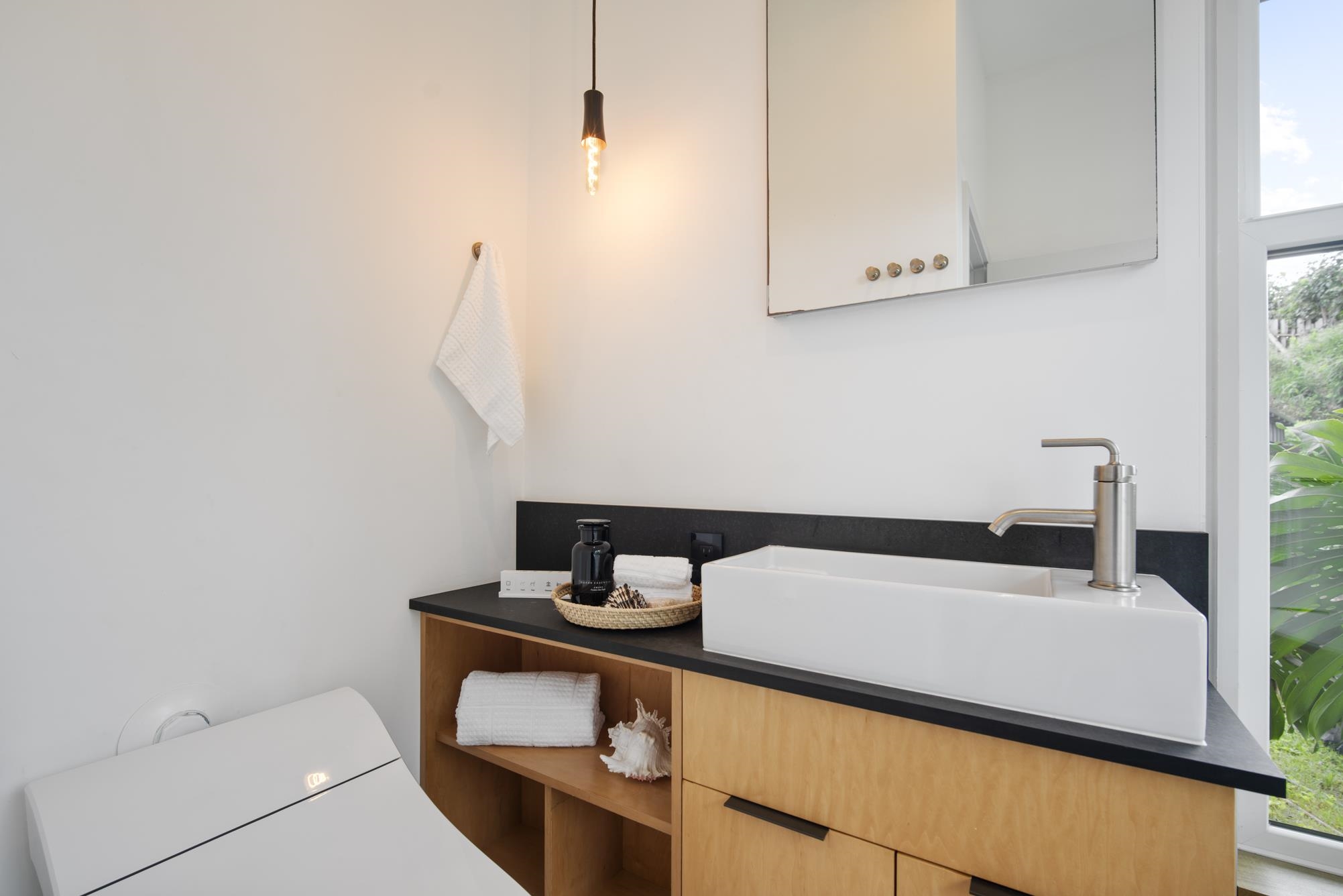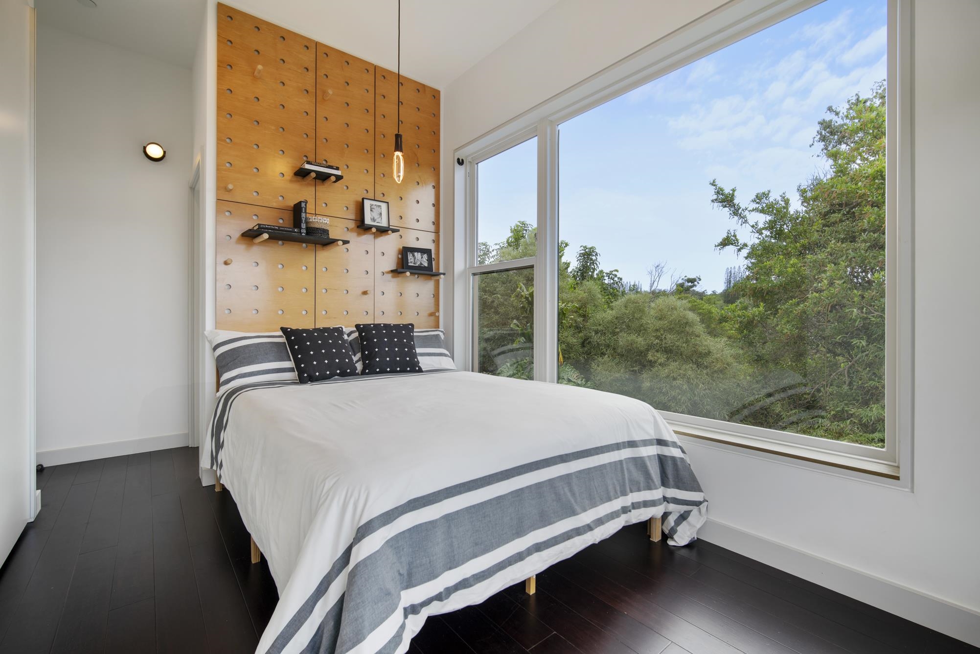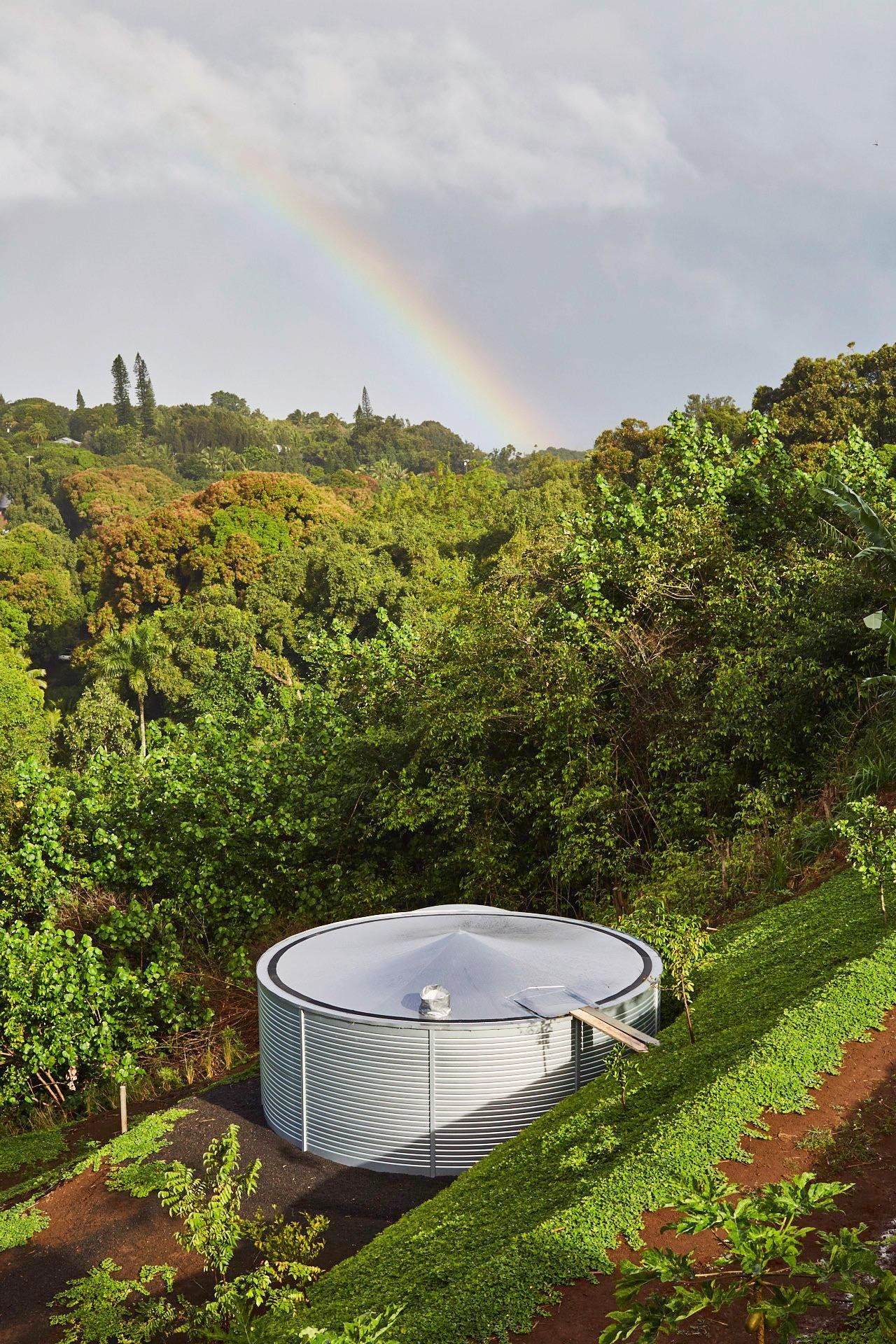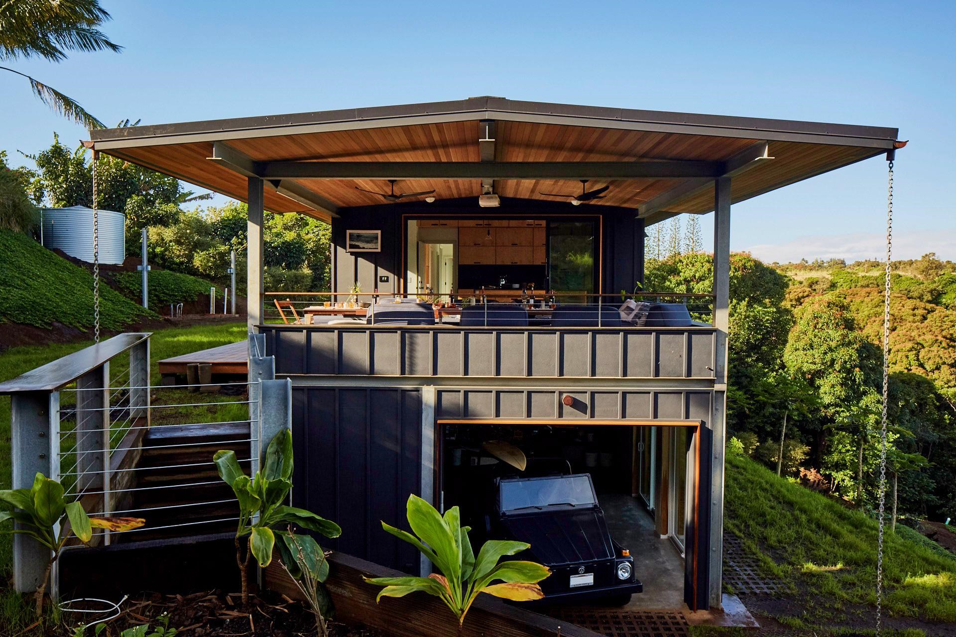 A private 2.2-acre compound in Haiku with expansive forested outlooks, ocean and mountain views. Accessed via a long driveway off a cul-de-sac and set behind an electric gate, the property offers a strong sense of arrival and privacy. The total covered space spans approximately 2,750 square feet. The main residence offers 1,008 square feet of living space with four bedrooms, three bathrooms, and open living areas. Three of the four bedrooms feature transforming furniture systems that convert seamlessly between sleeping, working, and living configurations. An approximately 400-square-foot covered lanai connects directly to the interior via a large-format sliding door system that fully opens the kitchen to the outdoor space, allowing the two areas to function as one. The additional 1,344-square-foot ground floor provides flexible garage/workshop/office, or studio space. Originally designed by Graham Hill (TreeHugger, LifeEdited), whose work on efficient living has been widely viewed through a TED Talk and featured in The New York Times, HGTV, and other media, the property was built as a high-functioning, real-world home combining modern design, flexible living, and independent infrastructure. The layout functions as a small compound, supporting privacy, guests, multi-generational living, and multiple home offices. Spaces are arranged from public to private, with sound-attenuating construction throughout, including double-layer drywall with acoustic damping compound and a suspended floating ceiling below the main living level, allowing areas to be fully closed off for privacy and quiet. Designed for airflow, durability, and comfort, with natural cross-ventilation and passive design, large six-foot overhangs for shade and weather protection, high ceilings, large picture windows, dual Kohler soaking tubs, and Ipe decking and railings. The home remains consistently dry and well-ventilated, aided by its siting, airflow, and rainscreen-style siding system with an air gap behind. The home operates on a high-capacity off-grid system designed for daily reliability and resilience: 14 kW solar array (36 panels), 48 kWh Blue Ion battery storage, Level 2 EV charger, and solar thermal hot water. Water is supplied by a 20,000-gallon catchment system with double-barrel filtration and UV treatment, plus a county water connection via shared meter. High-speed Starlink internet supports full-time remote work. The 2.2-acre parcel features strong sun exposure, consistent airflow, ample parking for 10+ vehicles, and approximately 40 fruit trees, many actively fruiting, including papaya, mango, avocado, banana, lychee, jackfruit, breadfruit, star fruit, longan, soursop, jaboticaba, and grumichama. Raised garden beds complement the orchard. Additional features include a lower terrace with campfire area, an outdoor shower with forest views, and infrastructure in place for a future approximately 200-square-foot agricultural office or accessory building, including foundation, I-beam, and footing - architectural plans included. A tiny house is currently parked on site and offered separately. Despite its private, tucked-away setting - with expansive greenery, ocean and mountain views, and a strong sense of being removed from it all - the property remains highly accessible: just 2 minutes to Baked on Maui café, bakery, small grocery, and hardware store; 6 minutes to Haiku Marketplace with grocery, gym, restaurants, and shops; 9 minutes to Ho'okipa Beach, known for world-class surf and sea turtles; 12 minutes to a network of North Shore waterfalls; and approximately 23 minutes to Kahului Airport and town amenities. The property is part of a two-unit CPR on agricultural land.