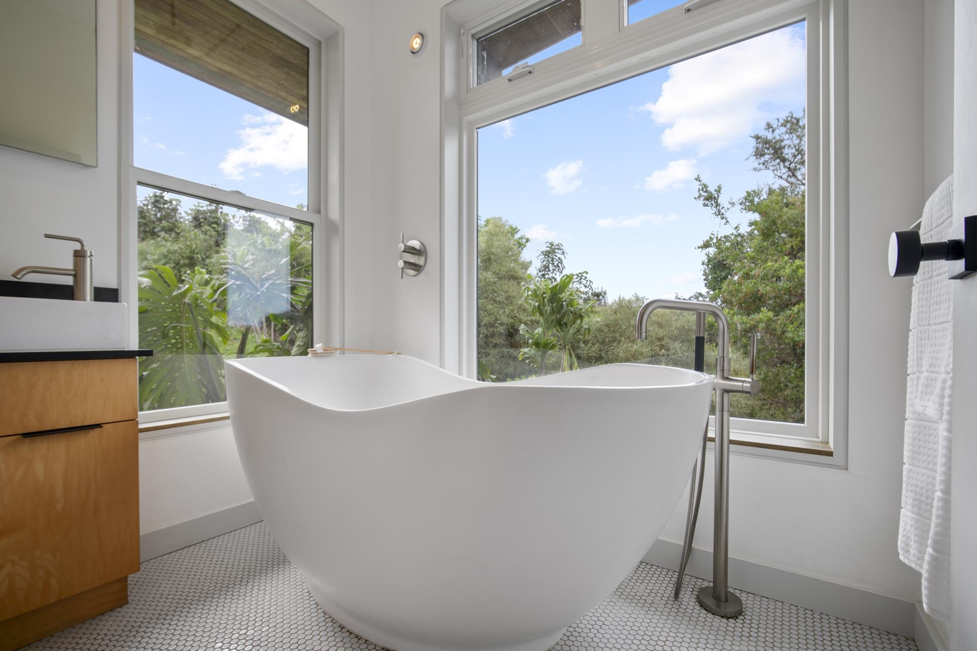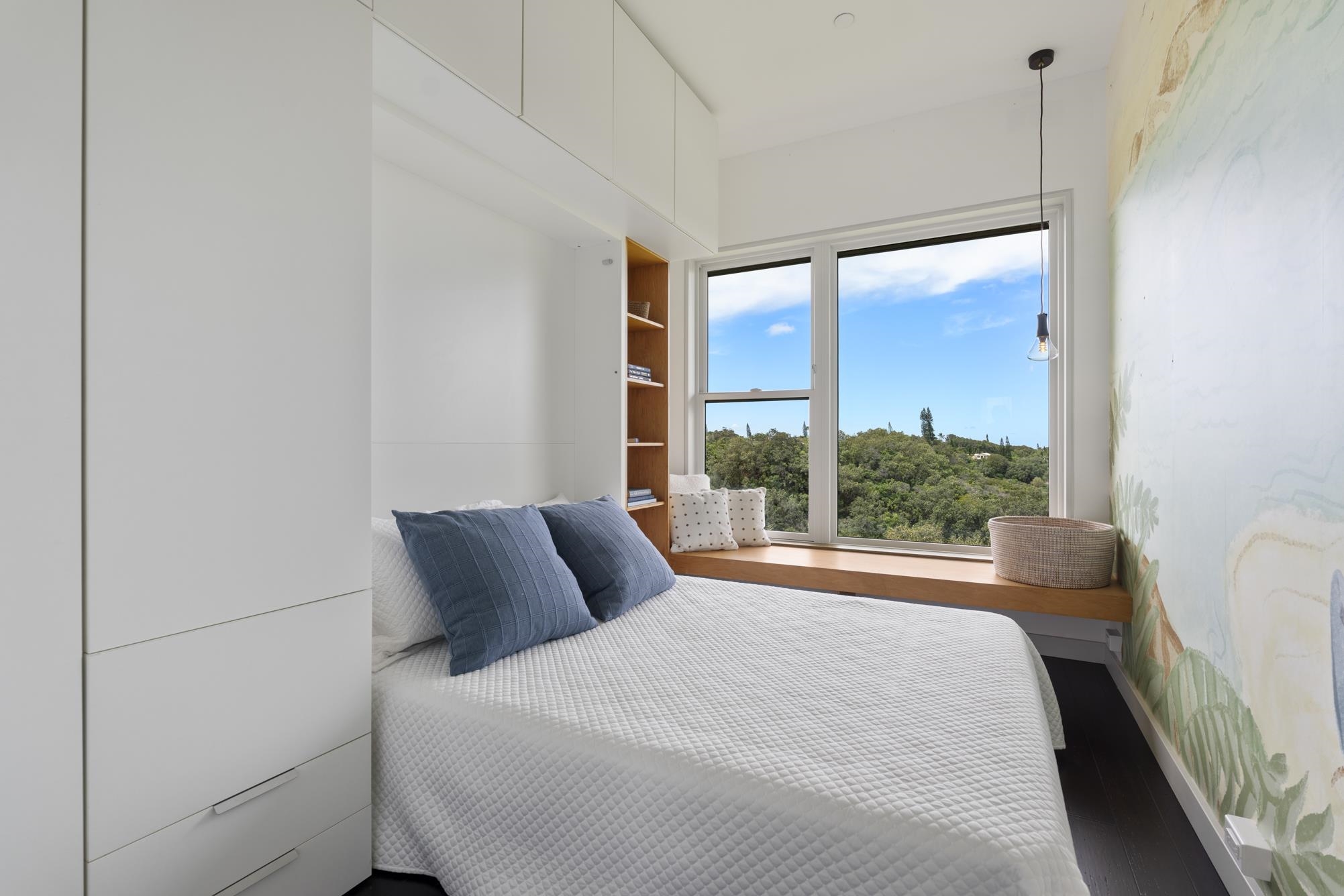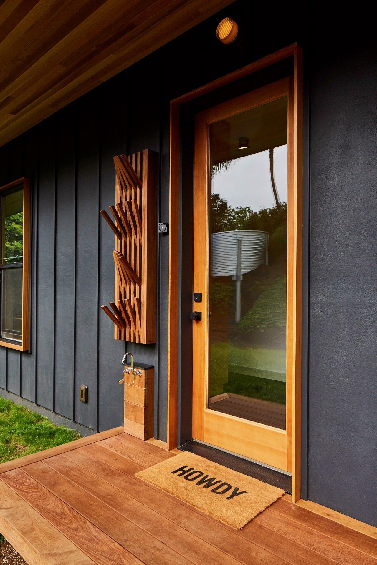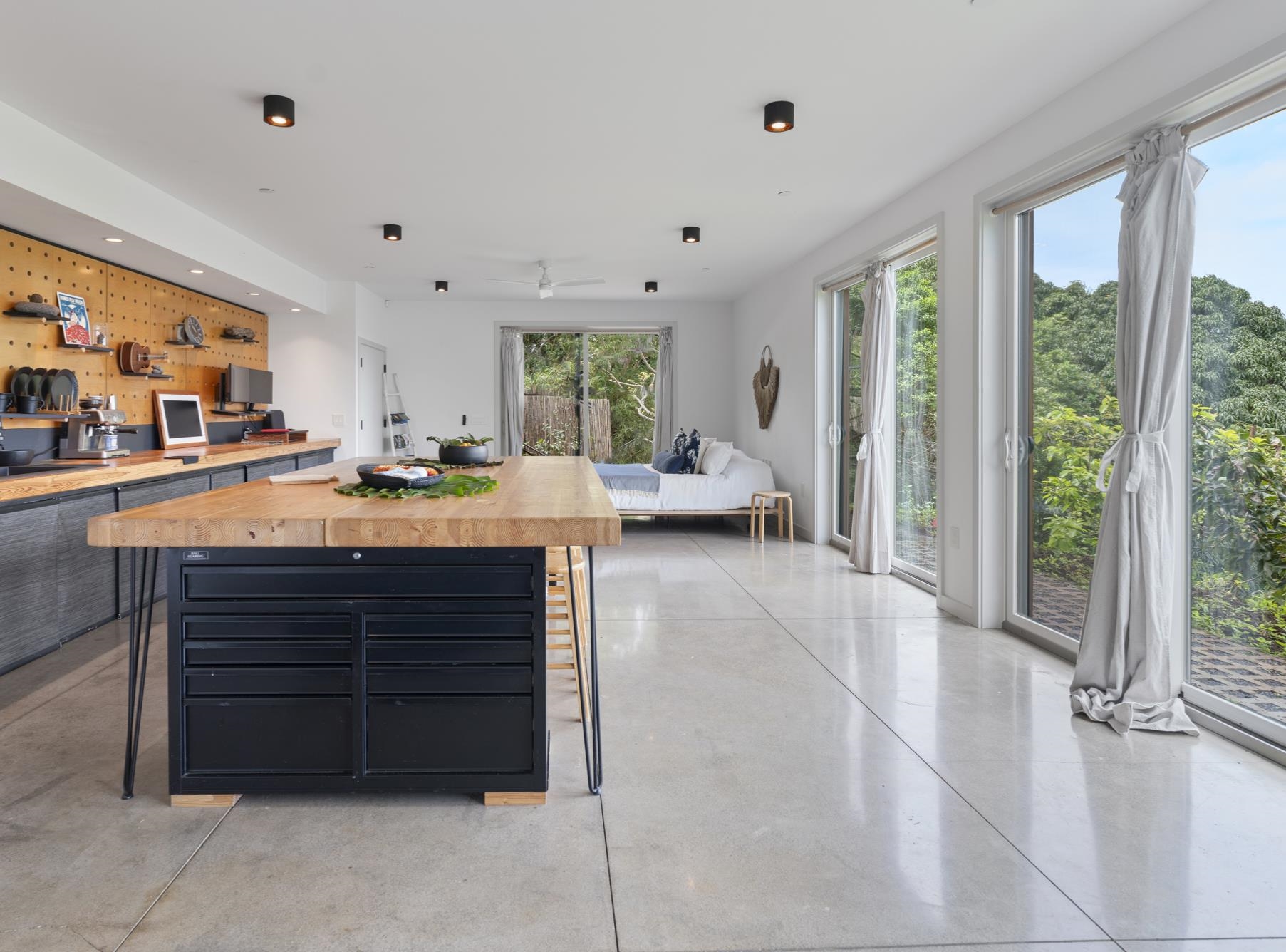 A private 2.2-acre compound in Haiku with expansive forested outlooks, ocean and mountain views. Accessed via a long driveway off a cul-de-sac and set behind an electric gate, the property offers a strong sense of arrival and privacy. The total covered space spans approximately 2,750 square feet. The main residence offers 1,008 square feet of living space with four bedrooms, three bathrooms, and open living areas. Three of the four bedrooms feature transforming furniture systems that convert seamlessly between sleeping, working, and living configurations. An approximately 400-square-foot covered lanai connects directly to the interior via a large-format sliding door system that fully opens the kitchen to the outdoor space, allowing the two areas to function as one. The additional 1,344-square-foot ground floor provides flexible garage/workshop/office, or studio space. Originally designed by Graham Hill (TreeHugger, LifeEdited), whose work on efficient living has been widely viewed through a TED Talk and featured in The New York Times, HGTV, and other media, the property was built as a high-functioning, real-world home combining modern design, flexible living, and independent infrastructure. The layout functions as a small compound, supporting privacy, guests, multi-generational living, and multiple home offices. Spaces are arranged from public to private, with sound-attenuating construction throughout, including double-layer drywall with acoustic damping compound and a suspended floating ceiling below the main living level, allowing areas to be fully closed off for privacy and quiet. Designed for airflow, durability, and comfort, with natural cross-ventilation and passive design, large six-foot overhangs for shade and weather protection, high ceilings, large picture windows, dual Kohler soaking tubs, and Ipe decking and railings. The home remains consistently dry and well-ventilated, aided by its siting, airflow, and rainscreen-style siding system with an air gap behind. The home operates on a high-capacity off-grid system designed for daily reliability and resilience: 14 kW solar array (36 panels), 48 kWh Blue Ion battery storage, Level 2 EV charger, and solar thermal hot water. Water is supplied by a 20,000-gallon catchment system with double-barrel filtration and UV treatment, plus a county water connection via shared meter. High-speed Starlink internet supports full-time remote work. The 2.2-acre parcel features strong sun exposure, consistent airflow, ample parking for 10+ vehicles, and approximately 40 fruit trees, many actively fruiting, including papaya, mango, avocado, banana, lychee, jackfruit, breadfruit, star fruit, longan, soursop, jaboticaba, and grumichama. Raised garden beds complement the orchard. Additional features include a lower terrace with campfire area, an outdoor shower with forest views, and infrastructure in place for a future approximately 200-square-foot agricultural office or accessory building, including foundation, I-beam, and footing - architectural plans included. A tiny house is currently parked on site and offered separately. Despite its private, tucked-away setting - with expansive greenery, ocean and mountain views, and a strong sense of being removed from it all - the property remains highly accessible: just 2 minutes to Baked on Maui café, bakery, small grocery, and hardware store; 6 minutes to Haiku Marketplace with grocery, gym, restaurants, and shops; 9 minutes to Ho'okipa Beach, known for world-class surf and sea turtles; 12 minutes to a network of North Shore waterfalls; and approximately 23 minutes to Kahului Airport and town amenities. The property is part of a two-unit CPR on agricultural land.