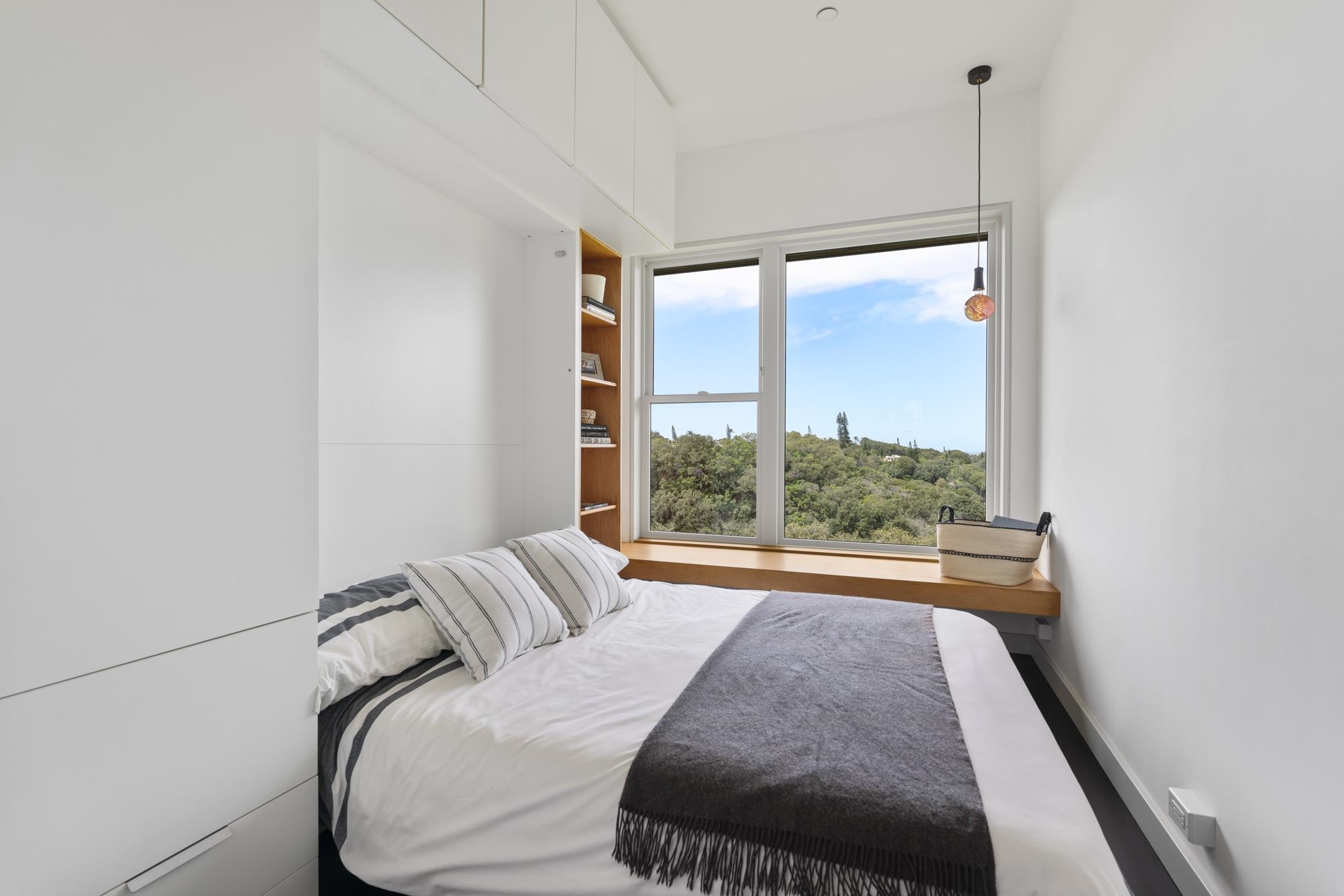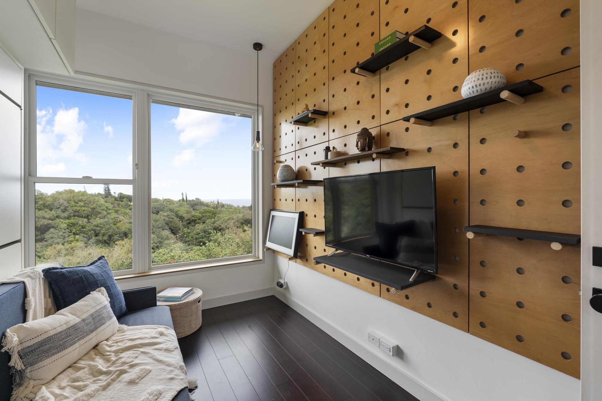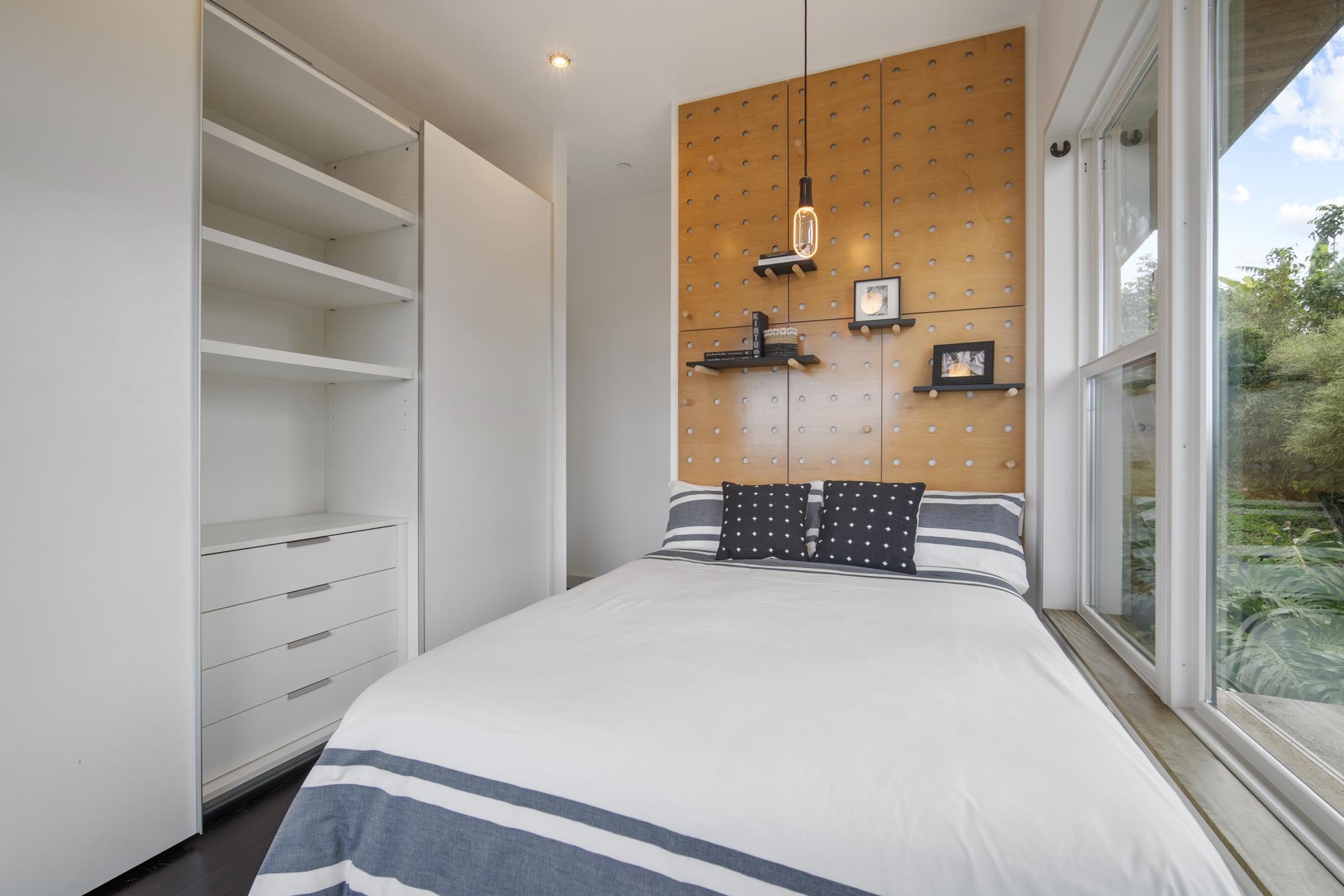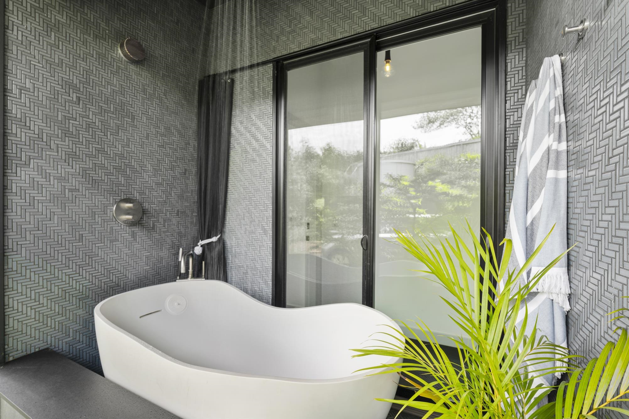 A private 2.2-acre compound in Haiku with expansive forested outlooks, ocean and mountain views. Accessed via a long driveway off a cul-de-sac and set behind an electric gate, the property offers a strong sense of arrival and privacy. The total covered space spans approximately 2,750 square feet. The main residence offers 1,008 square feet of living space with four bedrooms, three bathrooms, and open living areas. Three of the four bedrooms feature transforming furniture systems that convert seamlessly between sleeping, working, and living configurations. An approximately 400-square-foot covered lanai connects directly to the interior via a large-format sliding door system that fully opens the kitchen to the outdoor space, allowing the two areas to function as one. The additional 1,344-square-foot ground floor provides flexible garage/workshop/office, or studio space. Originally designed by Graham Hill (TreeHugger, LifeEdited), whose work on efficient living has been widely viewed through a TED Talk and featured in The New York Times, HGTV, and other media, the property was built as a high-functioning, real-world home combining modern design, flexible living, and independent infrastructure. The layout functions as a small compound, supporting privacy, guests, multi-generational living, and multiple home offices. Spaces are arranged from public to private, with sound-attenuating construction throughout, including double-layer drywall with acoustic damping compound and a suspended floating ceiling below the main living level, allowing areas to be fully closed off for privacy and quiet. Designed for airflow, durability, and comfort, with natural cross-ventilation and passive design, large six-foot overhangs for shade and weather protection, high ceilings, large picture windows, dual Kohler soaking tubs, and Ipe decking and railings. The home remains consistently dry and well-ventilated, aided by its siting, airflow, and rainscreen-style siding system with an air gap behind. The home operates on a high-capacity off-grid system designed for daily reliability and resilience: 14 kW solar array (36 panels), 48 kWh Blue Ion battery storage, Level 2 EV charger, and solar thermal hot water. Water is supplied by a 20,000-gallon catchment system with double-barrel filtration and UV treatment, plus a county water connection via shared meter. High-speed Starlink internet supports full-time remote work. The 2.2-acre parcel features strong sun exposure, consistent airflow, ample parking for 10+ vehicles, and approximately 40 fruit trees, many actively fruiting, including papaya, mango, avocado, banana, lychee, jackfruit, breadfruit, star fruit, longan, soursop, jaboticaba, and grumichama. Raised garden beds complement the orchard. Additional features include a lower terrace with campfire area, an outdoor shower with forest views, and infrastructure in place for a future approximately 200-square-foot agricultural office or accessory building, including foundation, I-beam, and footing - architectural plans included. A tiny house is currently parked on site and offered separately. Despite its private, tucked-away setting - with expansive greenery, ocean and mountain views, and a strong sense of being removed from it all - the property remains highly accessible: just 2 minutes to Baked on Maui café, bakery, small grocery, and hardware store; 6 minutes to Haiku Marketplace with grocery, gym, restaurants, and shops; 9 minutes to Ho'okipa Beach, known for world-class surf and sea turtles; 12 minutes to a network of North Shore waterfalls; and approximately 23 minutes to Kahului Airport and town amenities. The property is part of a two-unit CPR on agricultural land.