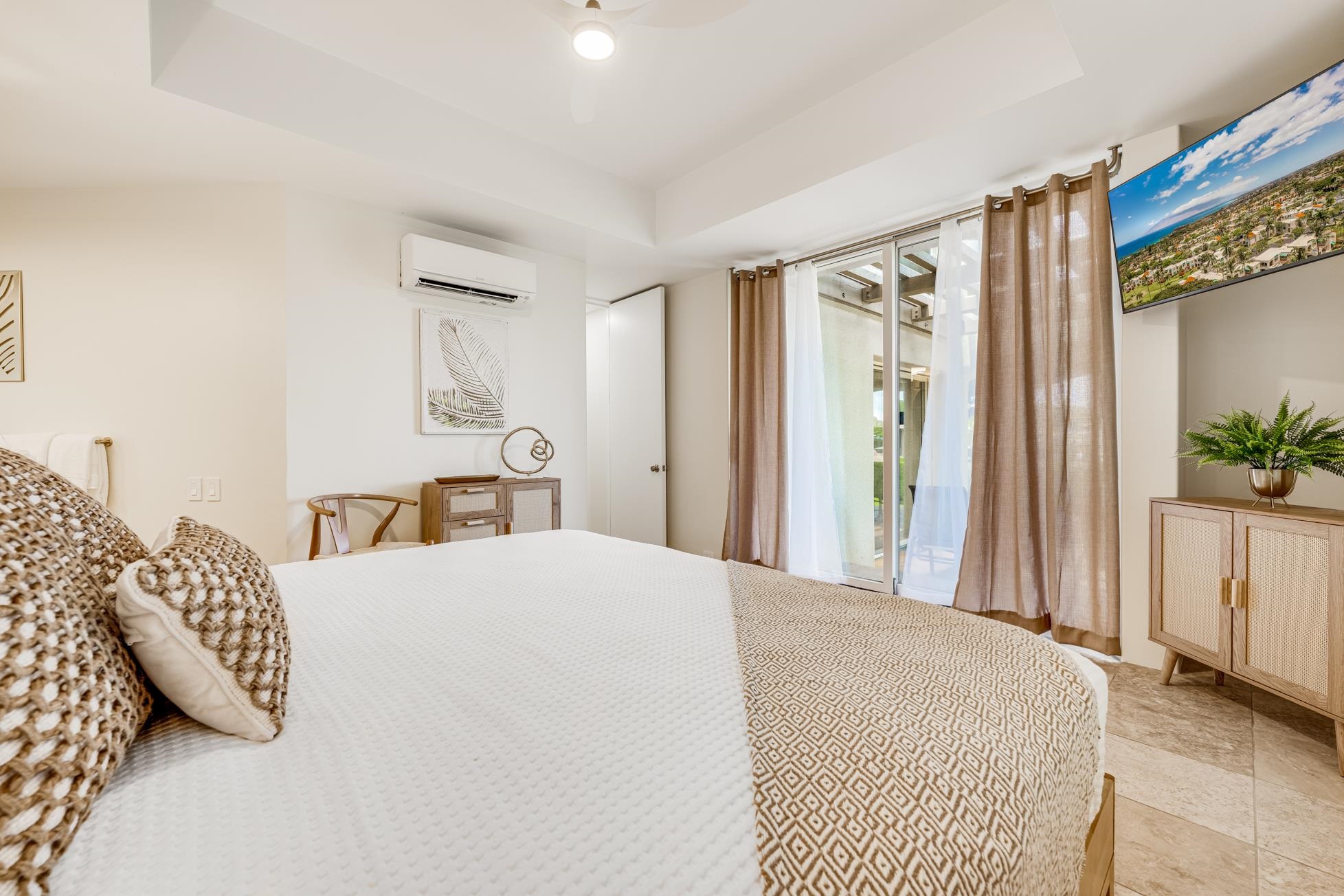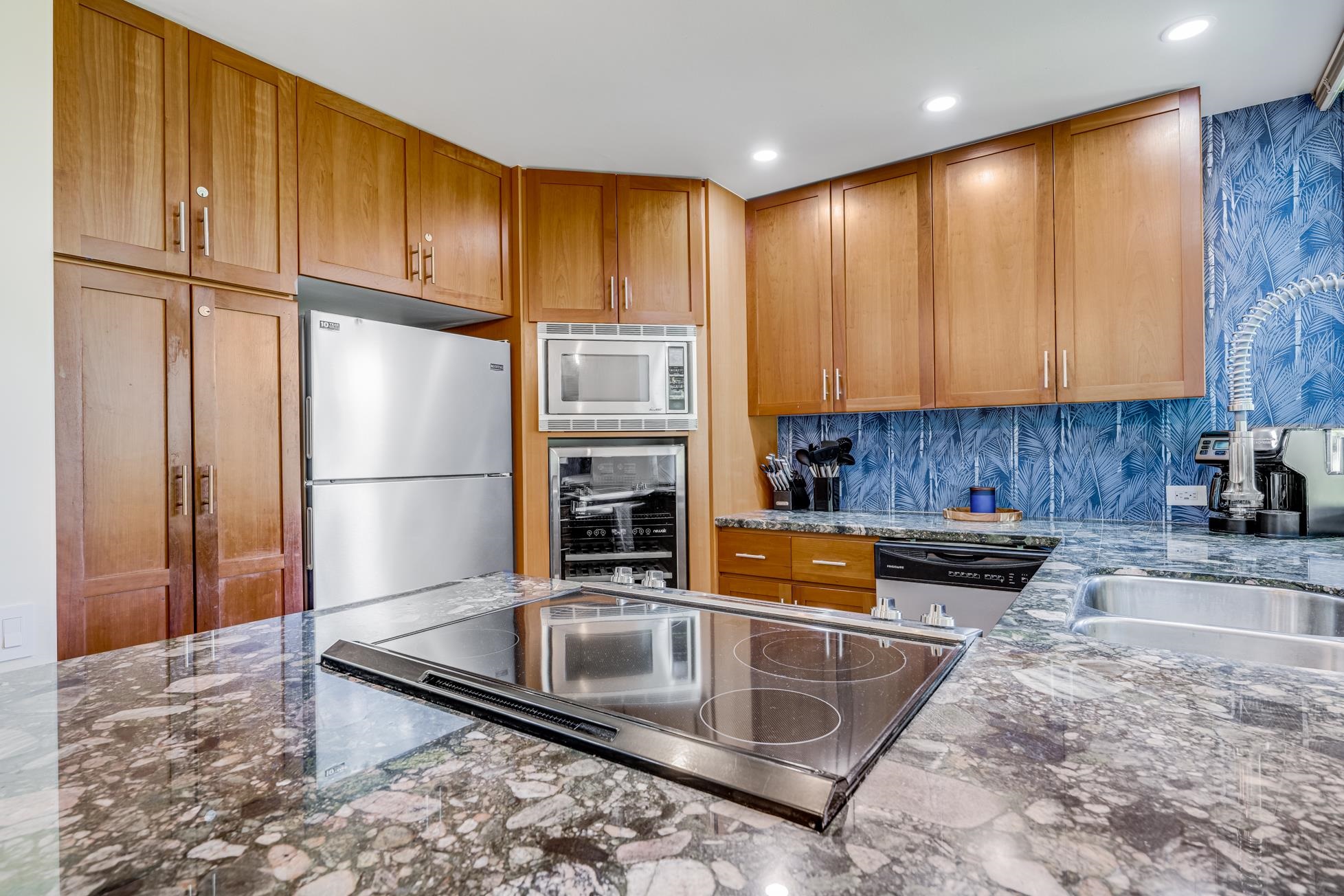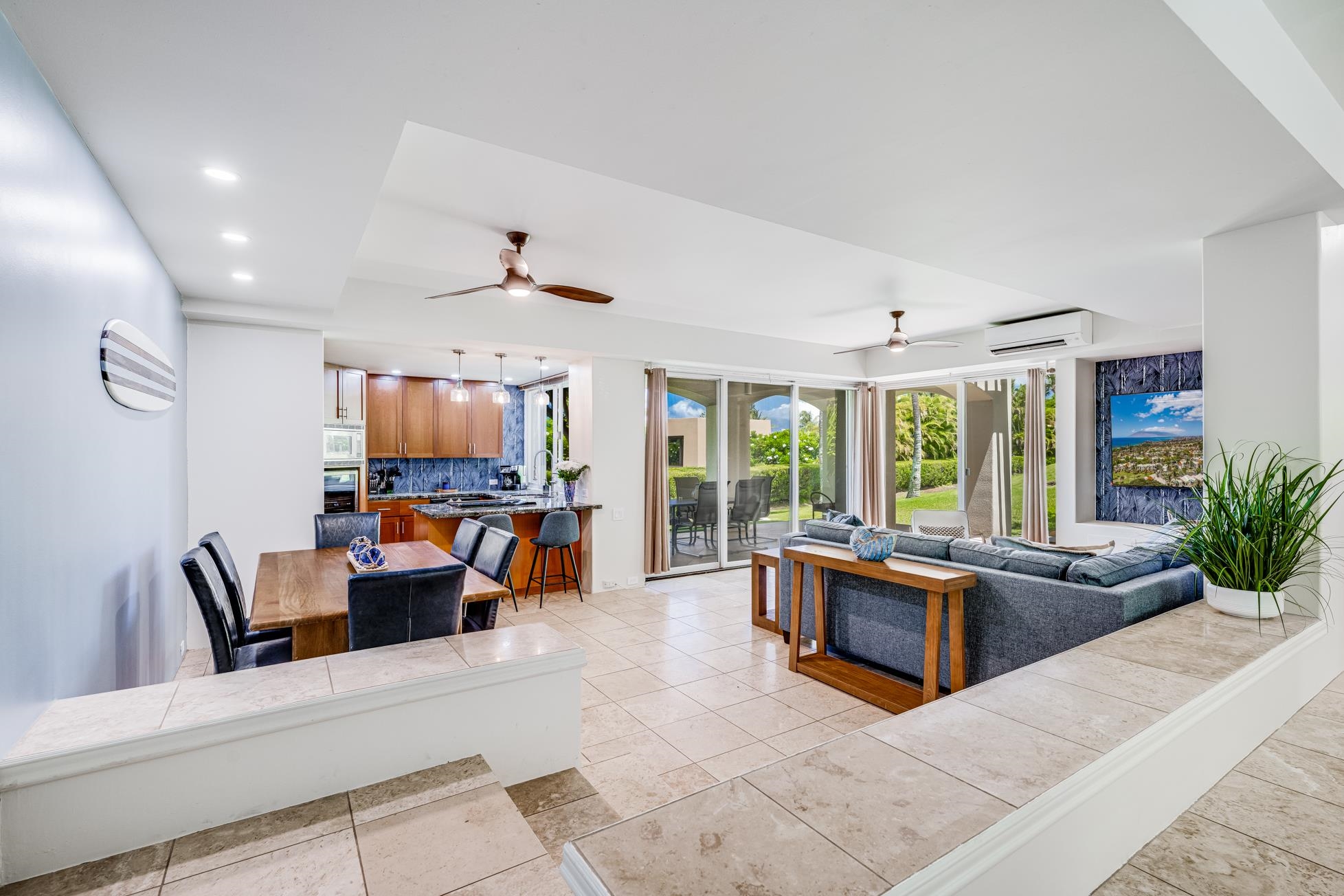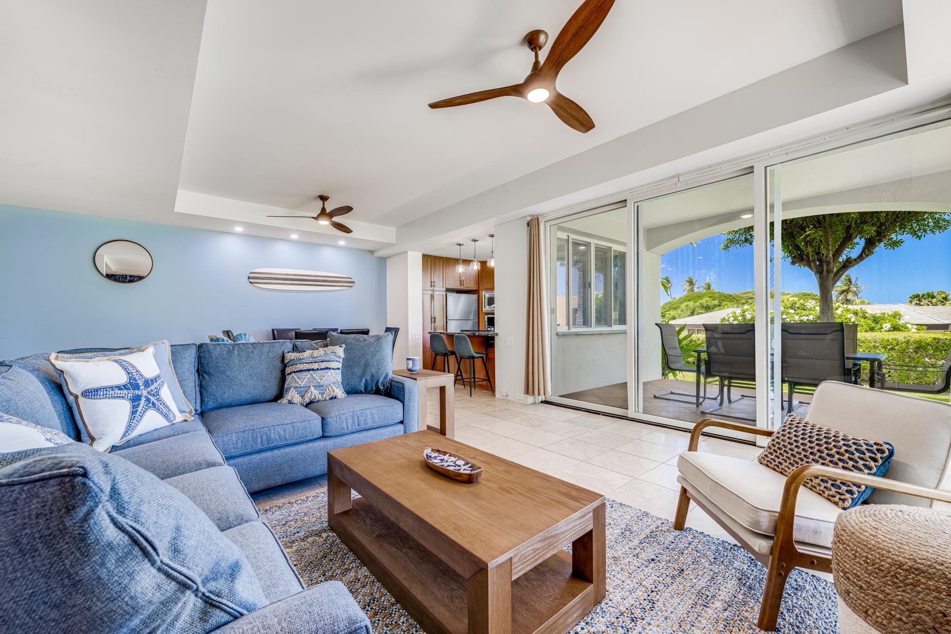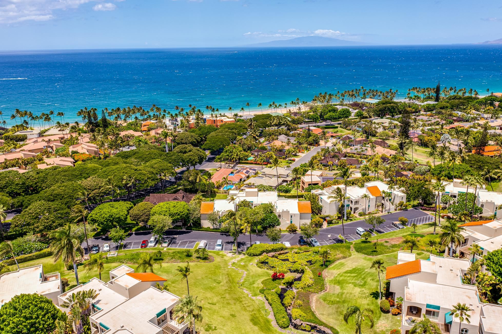 Welcome to Palms at Wailea 2105, a freshly re-imagined 2024 renovation that offers a modern, fully furnished 2-bedroom, 2-bath retreat in one of South Maui's most sought-after communities. This turn-key condo captures the essence of island living while delivering the proven performance of a top-producing vacation rental, making it an ideal choice for investors or owners ready to enjoy the island lifestyle from day one. The interior shines with crisp, fresh paint and designer wallpapers that set an elegant, relaxed tone throughout the open-plan living area. Spa-inspired bathrooms feature sleek tile work, quartz accents and luxury-grade fixtures, while the upgraded kitchen boasts contemporary hardware, polished countertops and newer appliances; a convenient pass-through window allows seamless service to the expansive covered lanai. Tile flooring flows from the living room to the dining space, and a three-zone split-system air-conditioning system provides year-round comfort in every room. A wall-of-glass sliding door opens to a generous lanai framed by a manicured lawn, creating an indoor-outdoor flow that is perfect for sunrise coffee, alfresco dining or evening cocktails under the stars. Brand-new, beach-inspired furniture and a complete inventory mean the home is ready for immediate relaxation or rental. Residents enjoy resort-style amenities including a Mediterranean-styled pool with ocean views, a spa, BBQ area and lush tropical landscaping, all set on a quiet dead-end cul-de-sac. The location offers easy access to Wailea's world-class beaches, championship golf courses, upscale shopping, fine dining and the vibrant South Maui lifestyle. This rare blend of modern luxury, effortless indoor-outdoor living and high rental demand makes 2105 a standout opportunity in Wailea's vibrant vacation-rental market. Schedule your private showing today and experience why this slice of paradise is the perfect combination of style, comfort and investment potential.
