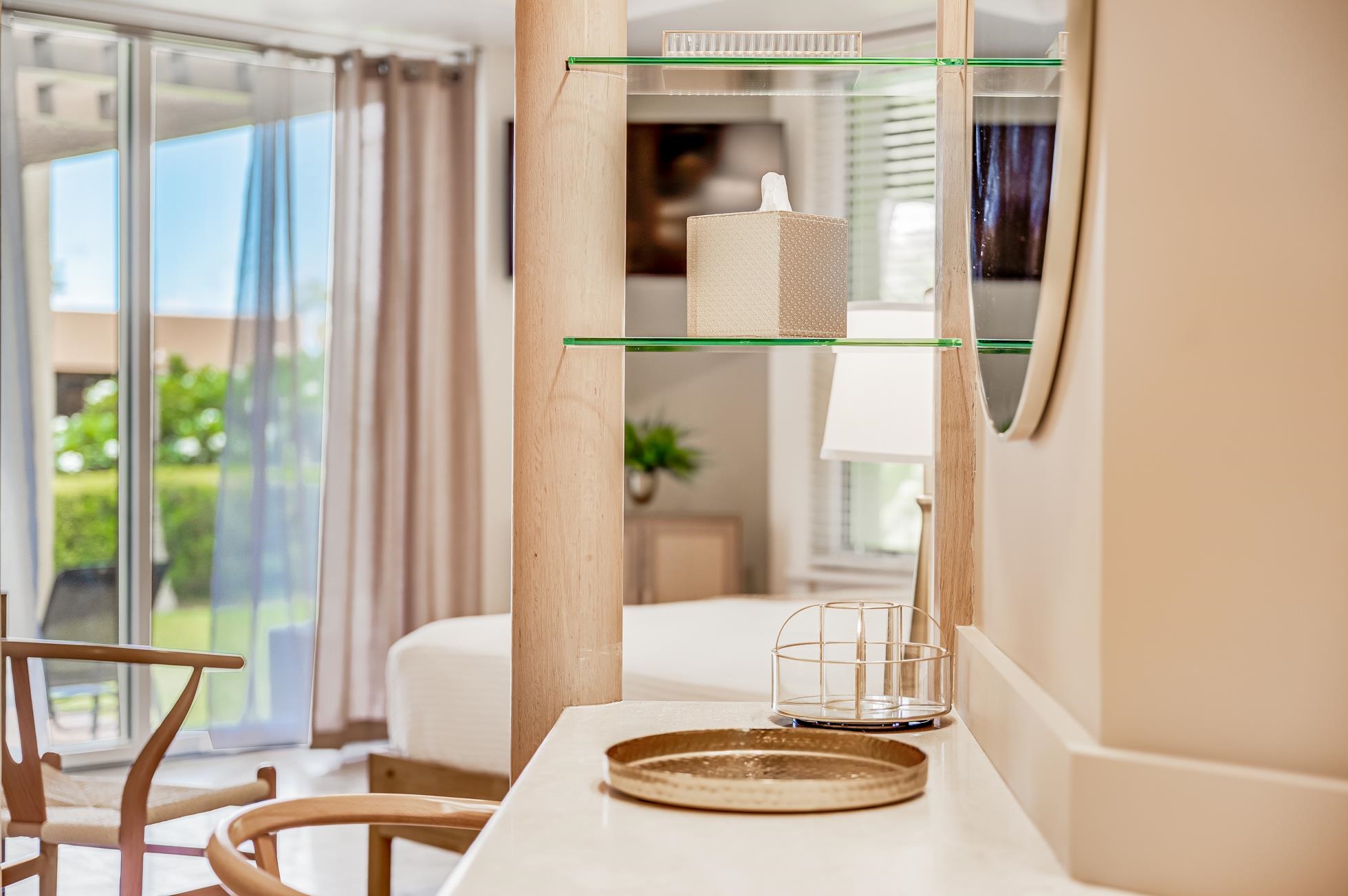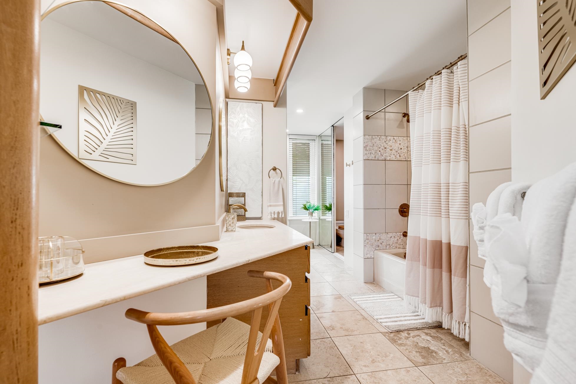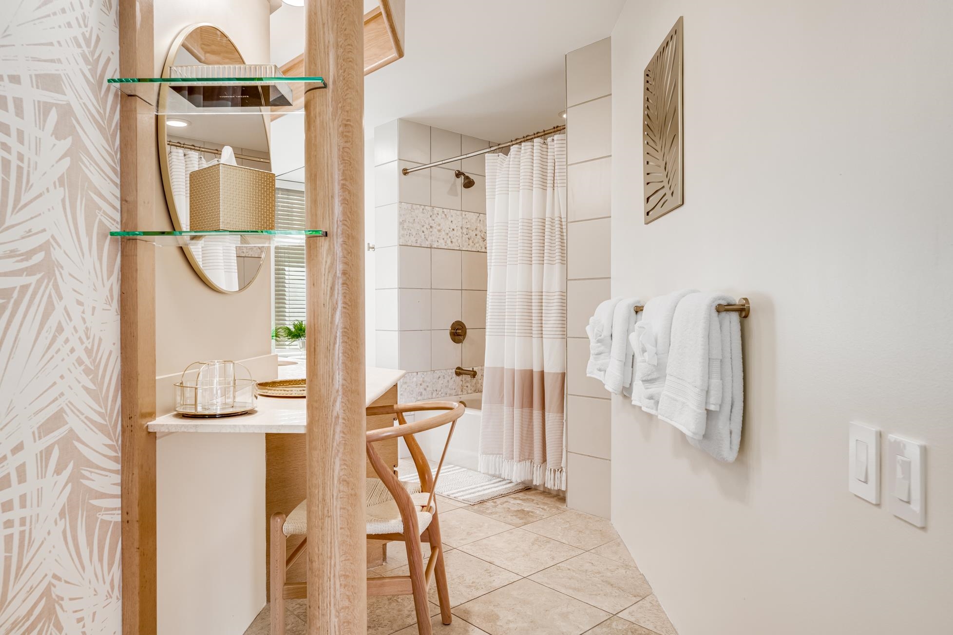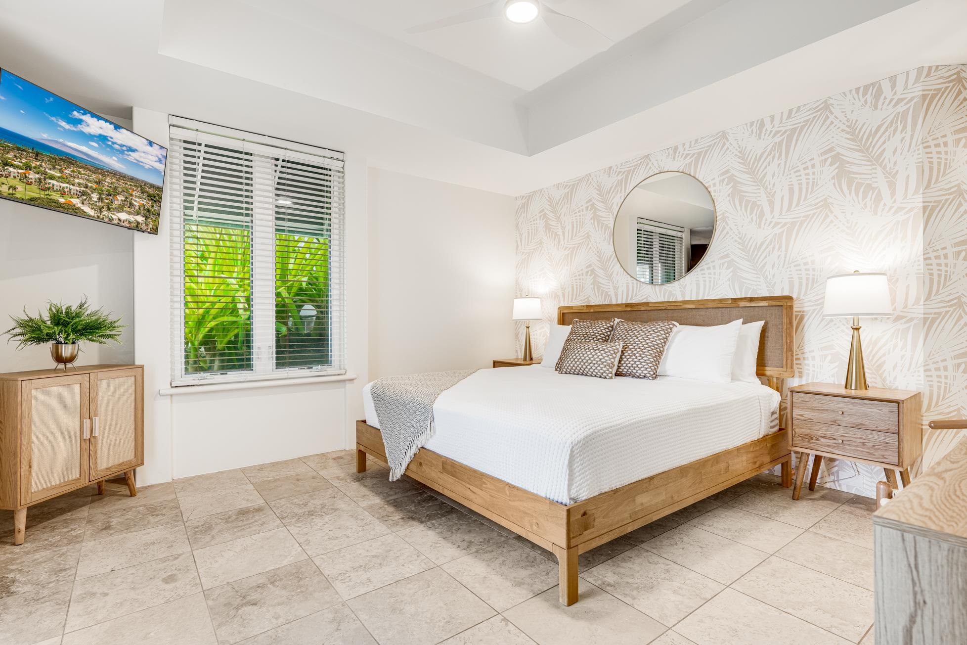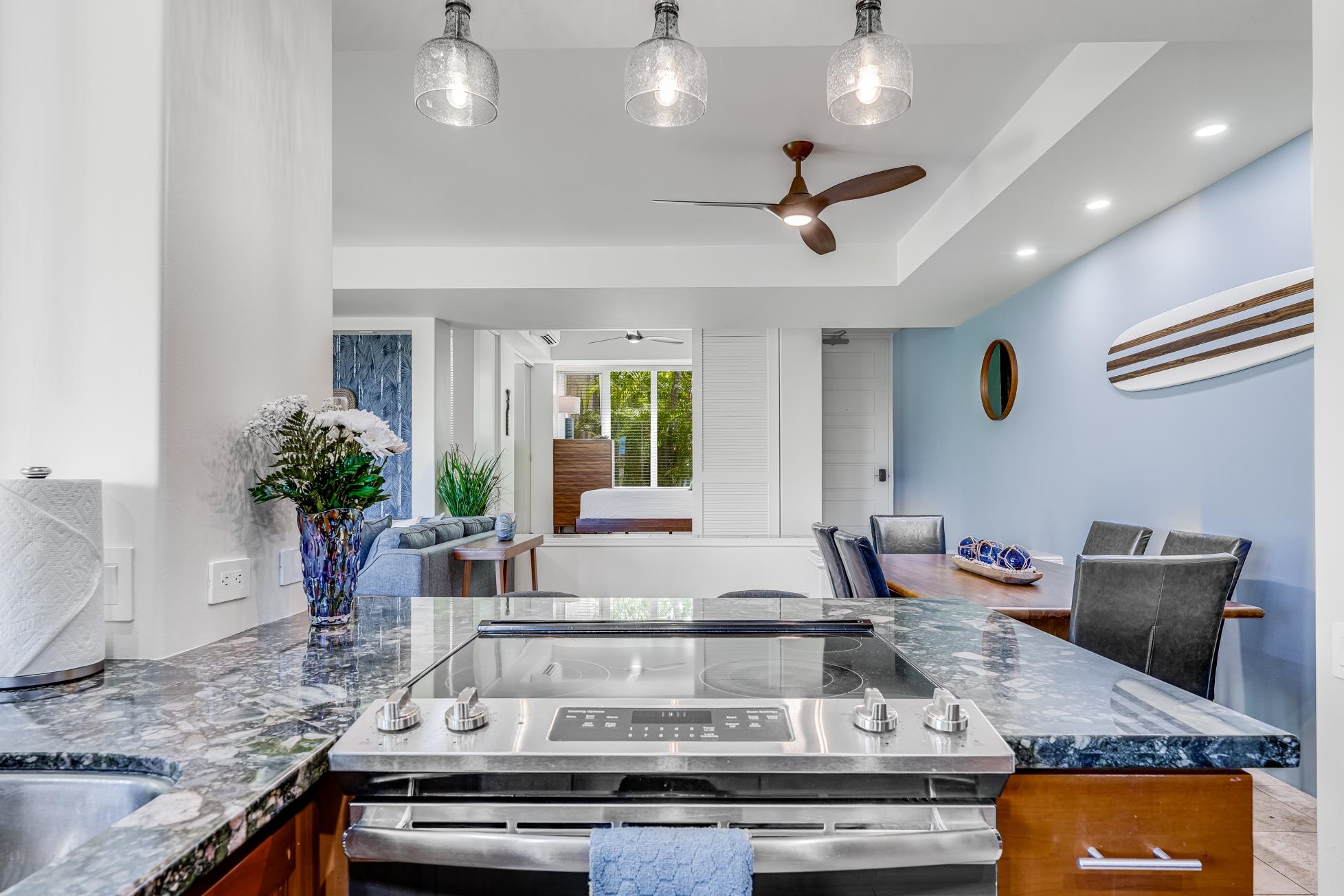 Welcome to Palms at Wailea 2105, a freshly re-imagined 2024 renovation that offers a modern, fully furnished 2-bedroom, 2-bath retreat in one of South Maui's most sought-after communities. This turn-key condo captures the essence of island living while delivering the proven performance of a top-producing vacation rental, making it an ideal choice for investors or owners ready to enjoy the island lifestyle from day one. The interior shines with crisp, fresh paint and designer wallpapers that set an elegant, relaxed tone throughout the open-plan living area. Spa-inspired bathrooms feature sleek tile work, quartz accents and luxury-grade fixtures, while the upgraded kitchen boasts contemporary hardware, polished countertops and newer appliances; a convenient pass-through window allows seamless service to the expansive covered lanai. Tile flooring flows from the living room to the dining space, and a three-zone split-system air-conditioning system provides year-round comfort in every room. A wall-of-glass sliding door opens to a generous lanai framed by a manicured lawn, creating an indoor-outdoor flow that is perfect for sunrise coffee, alfresco dining or evening cocktails under the stars. Brand-new, beach-inspired furniture and a complete inventory mean the home is ready for immediate relaxation or rental. Residents enjoy resort-style amenities including a Mediterranean-styled pool with ocean views, a spa, BBQ area and lush tropical landscaping, all set on a quiet dead-end cul-de-sac. The location offers easy access to Wailea's world-class beaches, championship golf courses, upscale shopping, fine dining and the vibrant South Maui lifestyle. This rare blend of modern luxury, effortless indoor-outdoor living and high rental demand makes 2105 a standout opportunity in Wailea's vibrant vacation-rental market. Schedule your private showing today and experience why this slice of paradise is the perfect combination of style, comfort and investment potential.