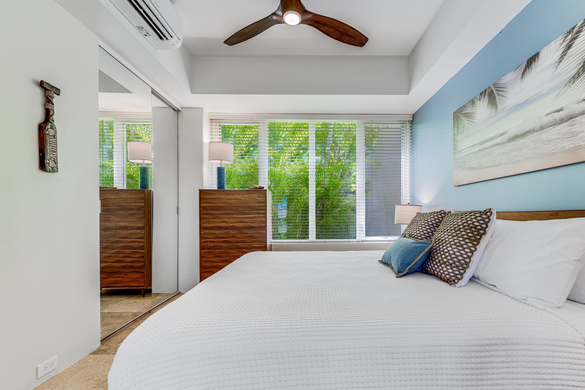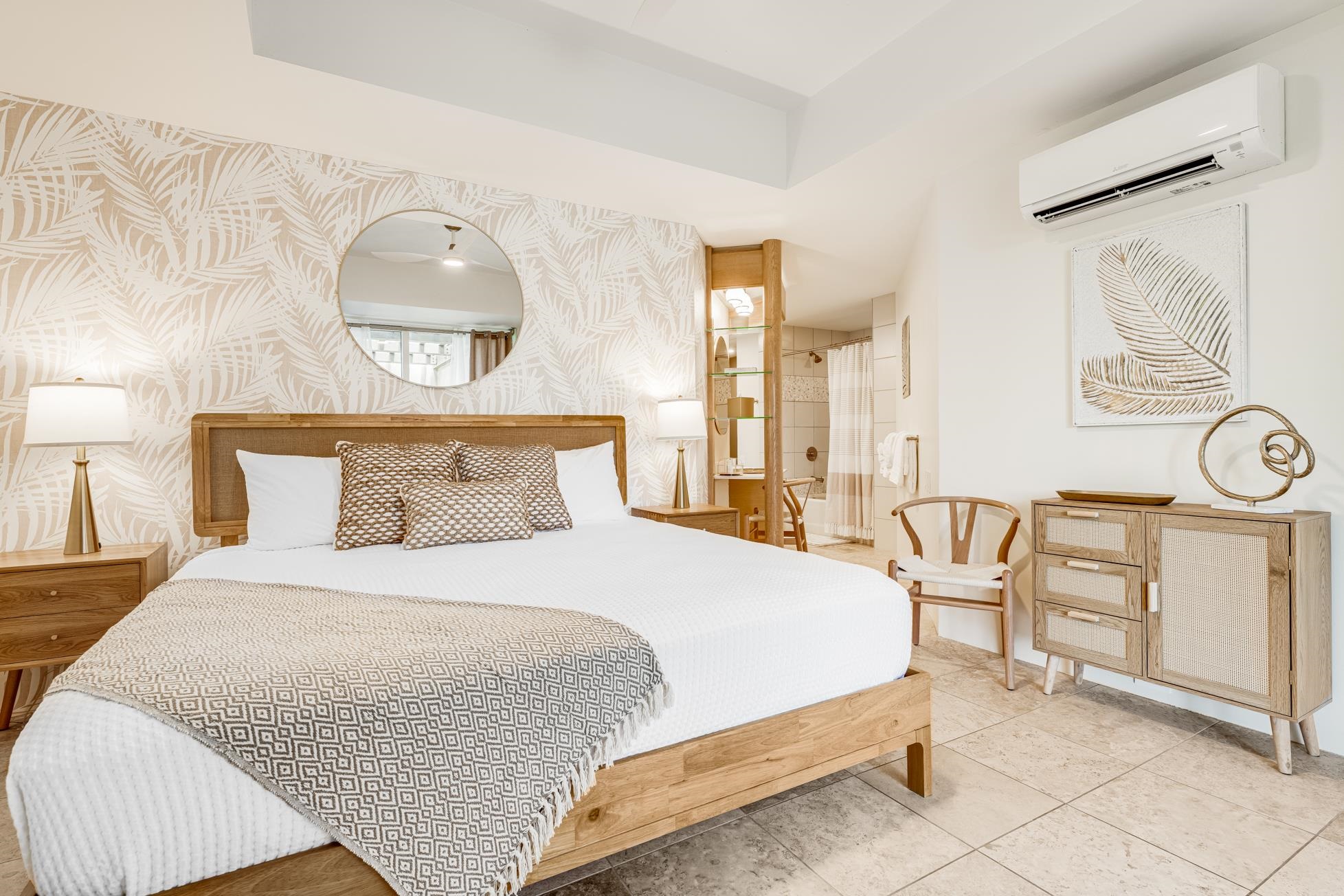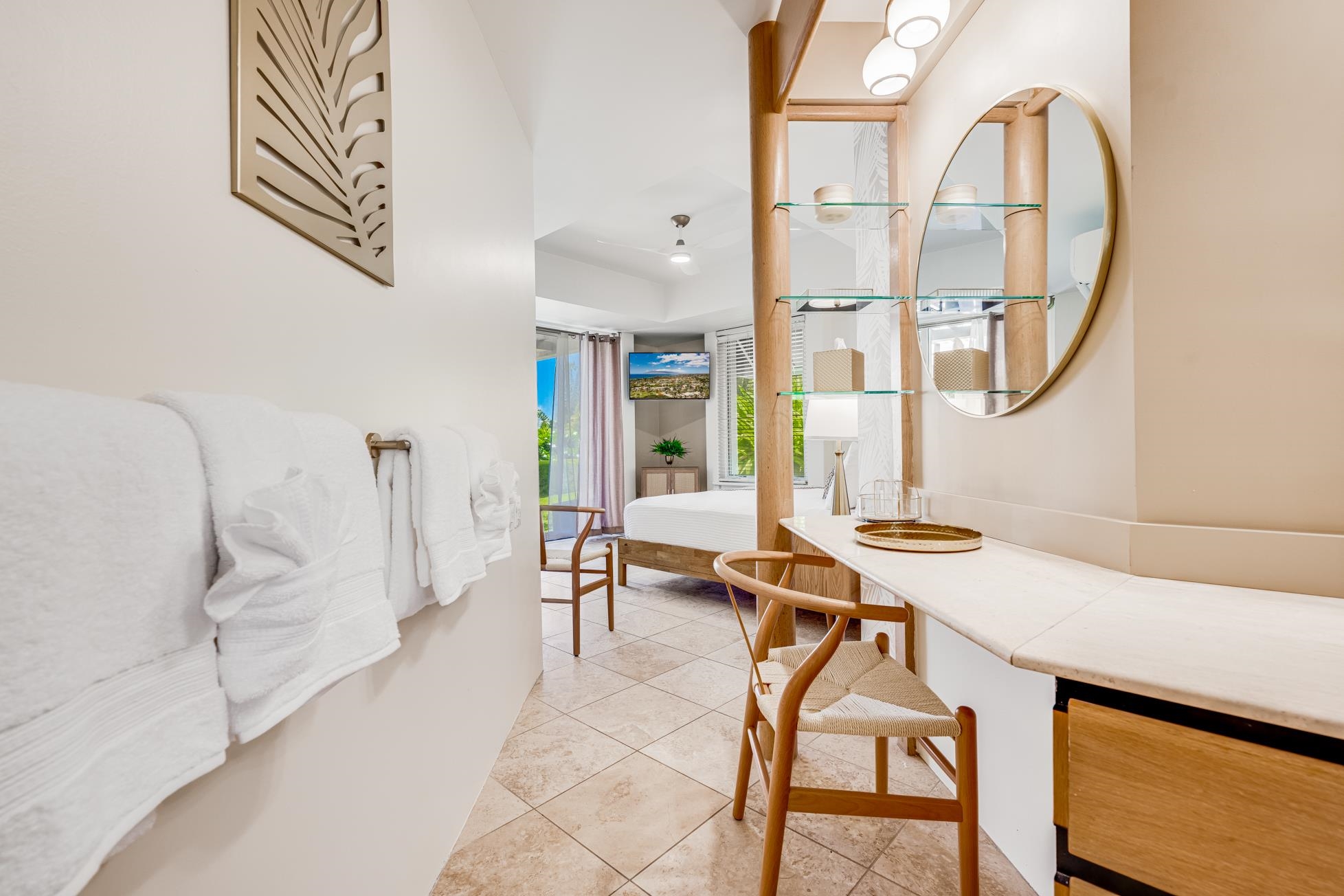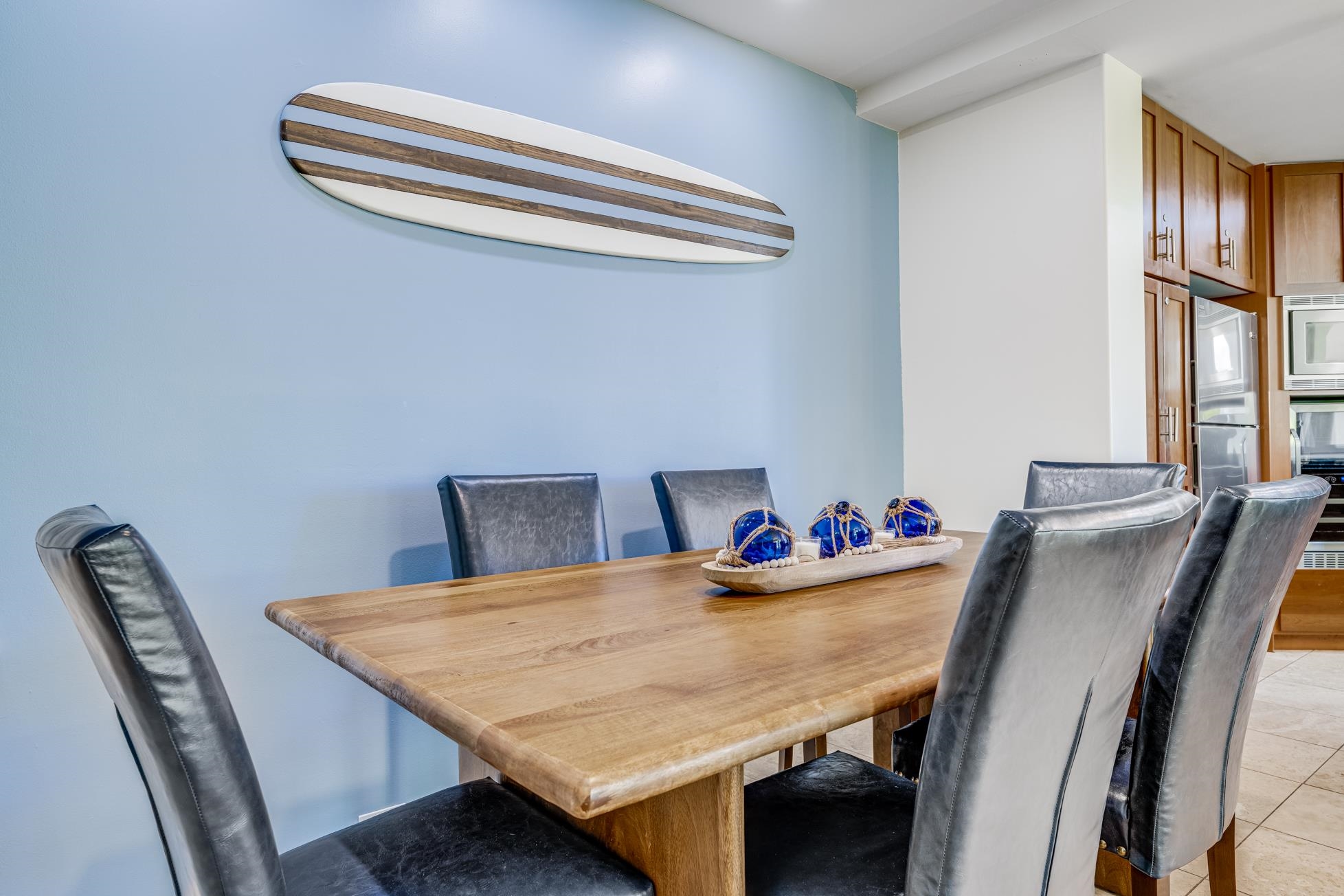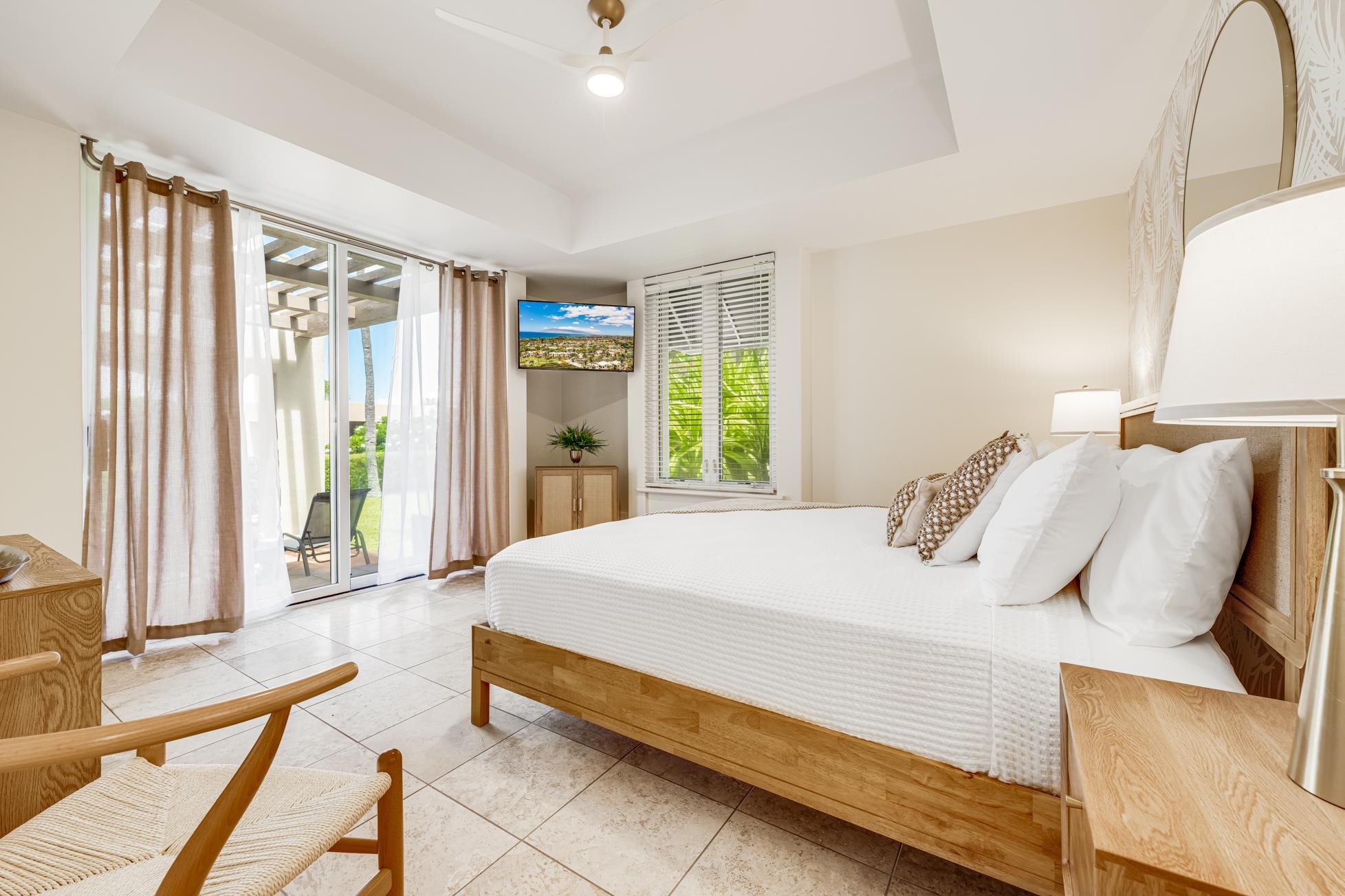 Welcome to Palms at Wailea 2105, a freshly re-imagined 2024 renovation that offers a modern, fully furnished 2-bedroom, 2-bath retreat in one of South Maui's most sought-after communities. This turn-key condo captures the essence of island living while delivering the proven performance of a top-producing vacation rental, making it an ideal choice for investors or owners ready to enjoy the island lifestyle from day one. The interior shines with crisp, fresh paint and designer wallpapers that set an elegant, relaxed tone throughout the open-plan living area. Spa-inspired bathrooms feature sleek tile work, quartz accents and luxury-grade fixtures, while the upgraded kitchen boasts contemporary hardware, polished countertops and newer appliances; a convenient pass-through window allows seamless service to the expansive covered lanai. Tile flooring flows from the living room to the dining space, and a three-zone split-system air-conditioning system provides year-round comfort in every room. A wall-of-glass sliding door opens to a generous lanai framed by a manicured lawn, creating an indoor-outdoor flow that is perfect for sunrise coffee, alfresco dining or evening cocktails under the stars. Brand-new, beach-inspired furniture and a complete inventory mean the home is ready for immediate relaxation or rental. Residents enjoy resort-style amenities including a Mediterranean-styled pool with ocean views, a spa, BBQ area and lush tropical landscaping, all set on a quiet dead-end cul-de-sac. The location offers easy access to Wailea's world-class beaches, championship golf courses, upscale shopping, fine dining and the vibrant South Maui lifestyle. This rare blend of modern luxury, effortless indoor-outdoor living and high rental demand makes 2105 a standout opportunity in Wailea's vibrant vacation-rental market. Schedule your private showing today and experience why this slice of paradise is the perfect combination of style, comfort and investment potential.