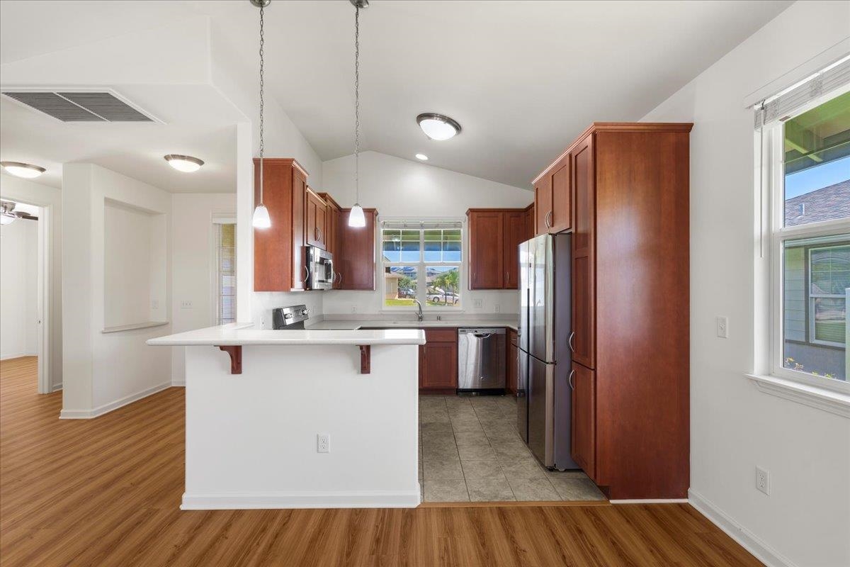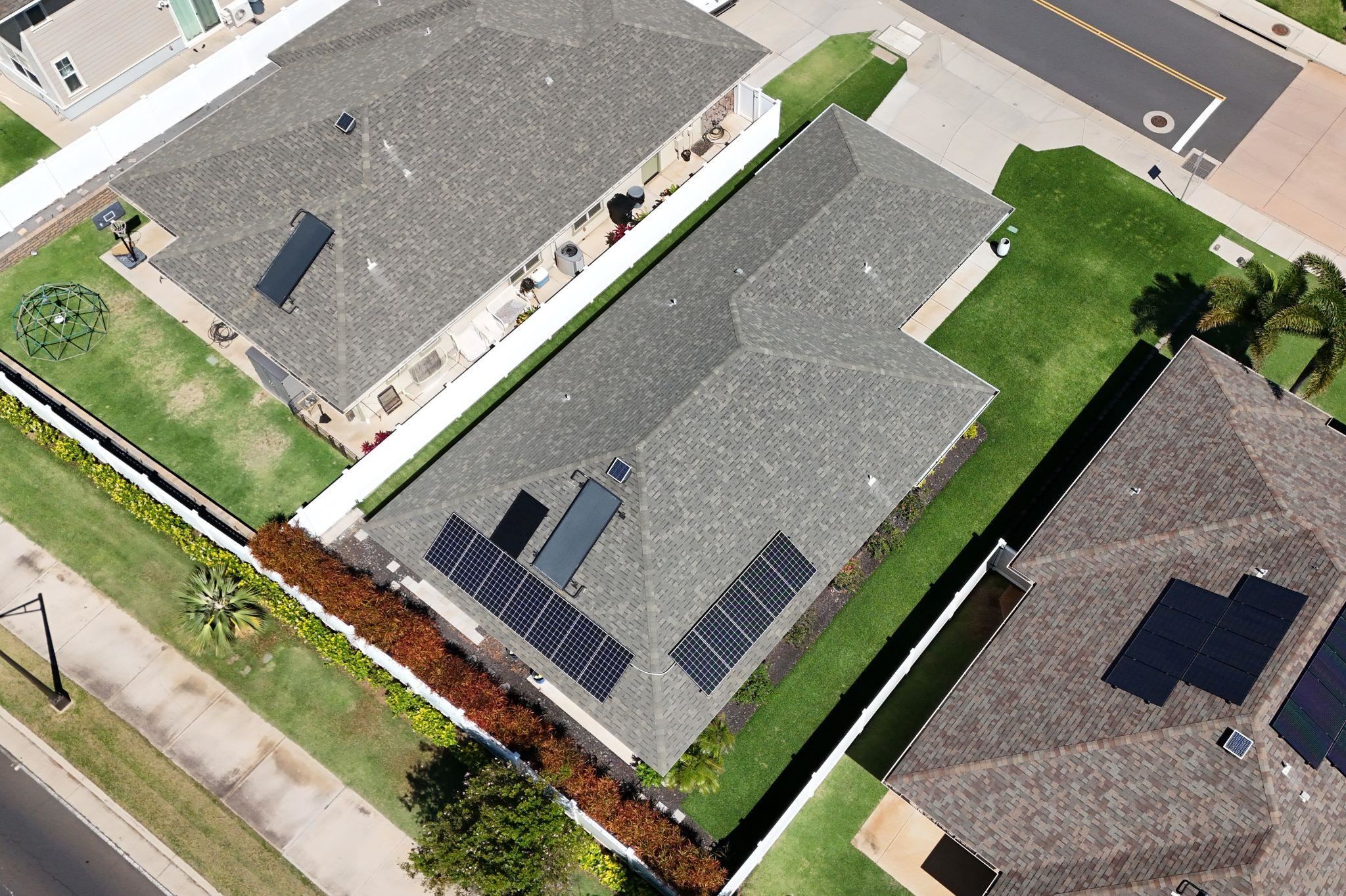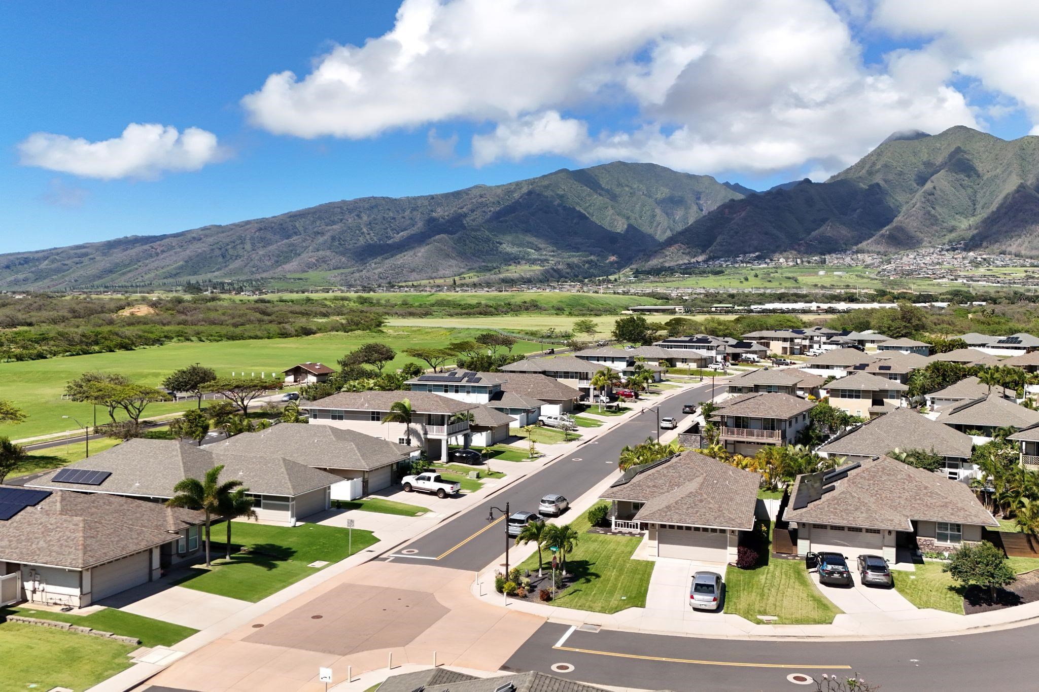 Welcome to one of Central Maui's best neighborhoods, the Parkways at Maui Lani! Located near the Dunes at Maui Lani Golf Course, 103 Olina features 3 bedrooms and 2 bathrooms over 1,385 sqft of single-level living space. Built in 2016 by Towne Island Homes, this beautiful home is the Hapuna Floorplan with 9-foot ceilings, 8-foot custom doors, corian counter tops, and recently updated luxury vinyl flooring. Central air conditioning keeps the home cool while 13 net-metered solar panels backed up by 2 Tesla Model 2 batteries (the equivalent of 4 Tesla model 1 batteries) keep electrical bills virtually non-existent. Low-maintenance, irrigated landscaping complements the home and keeps life easy! Currently the lowest-priced offering in the Parkways, this could be the perfect home for your family!