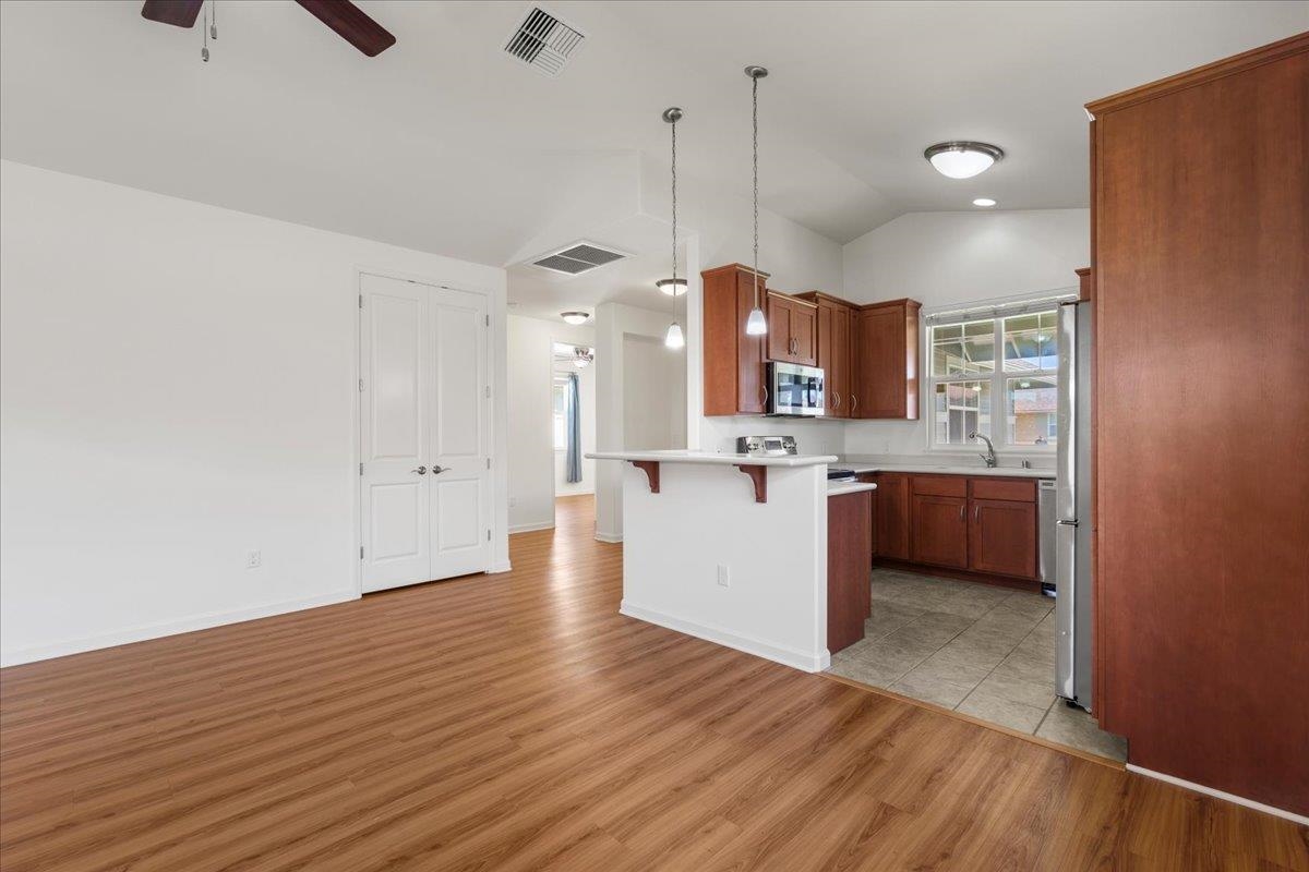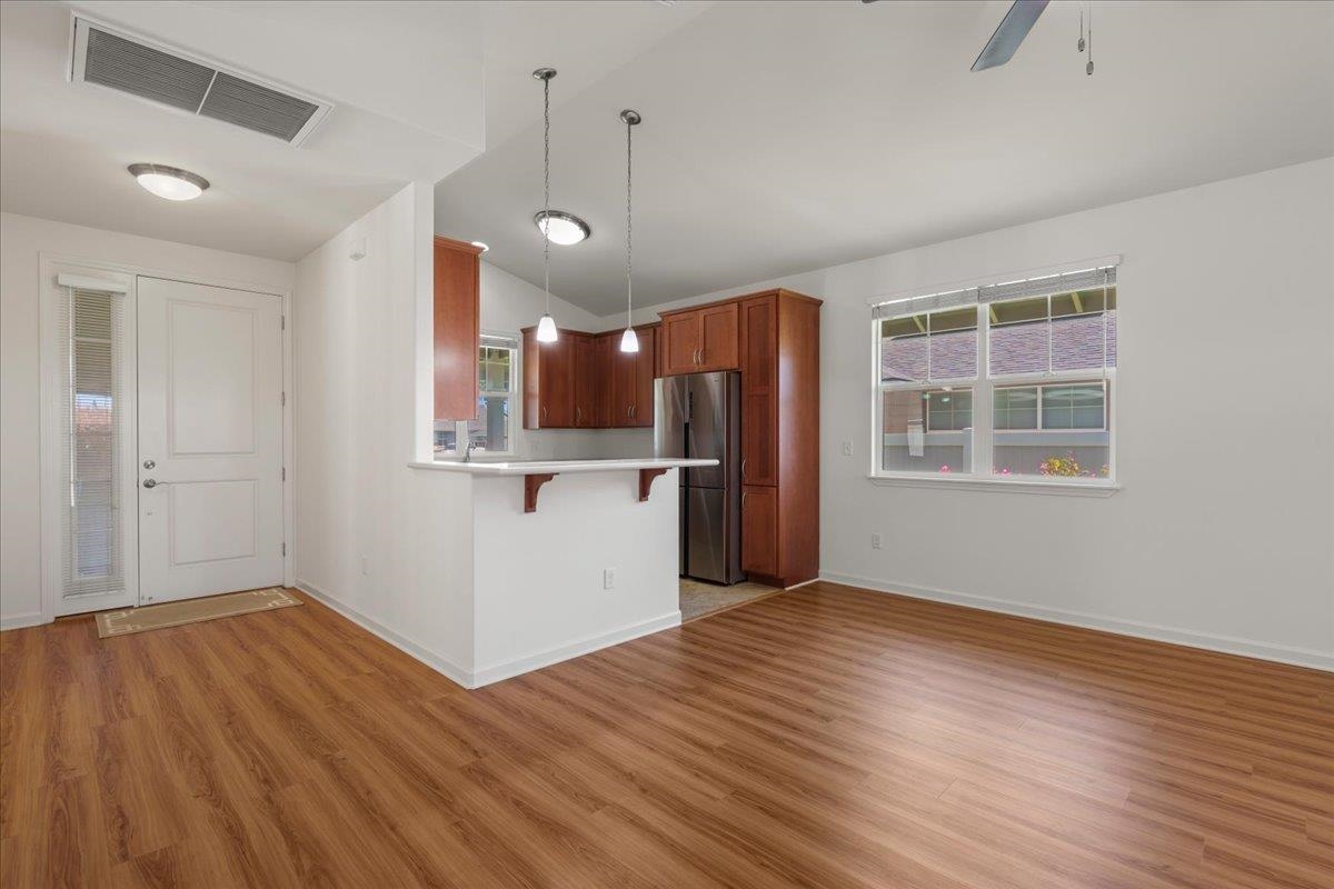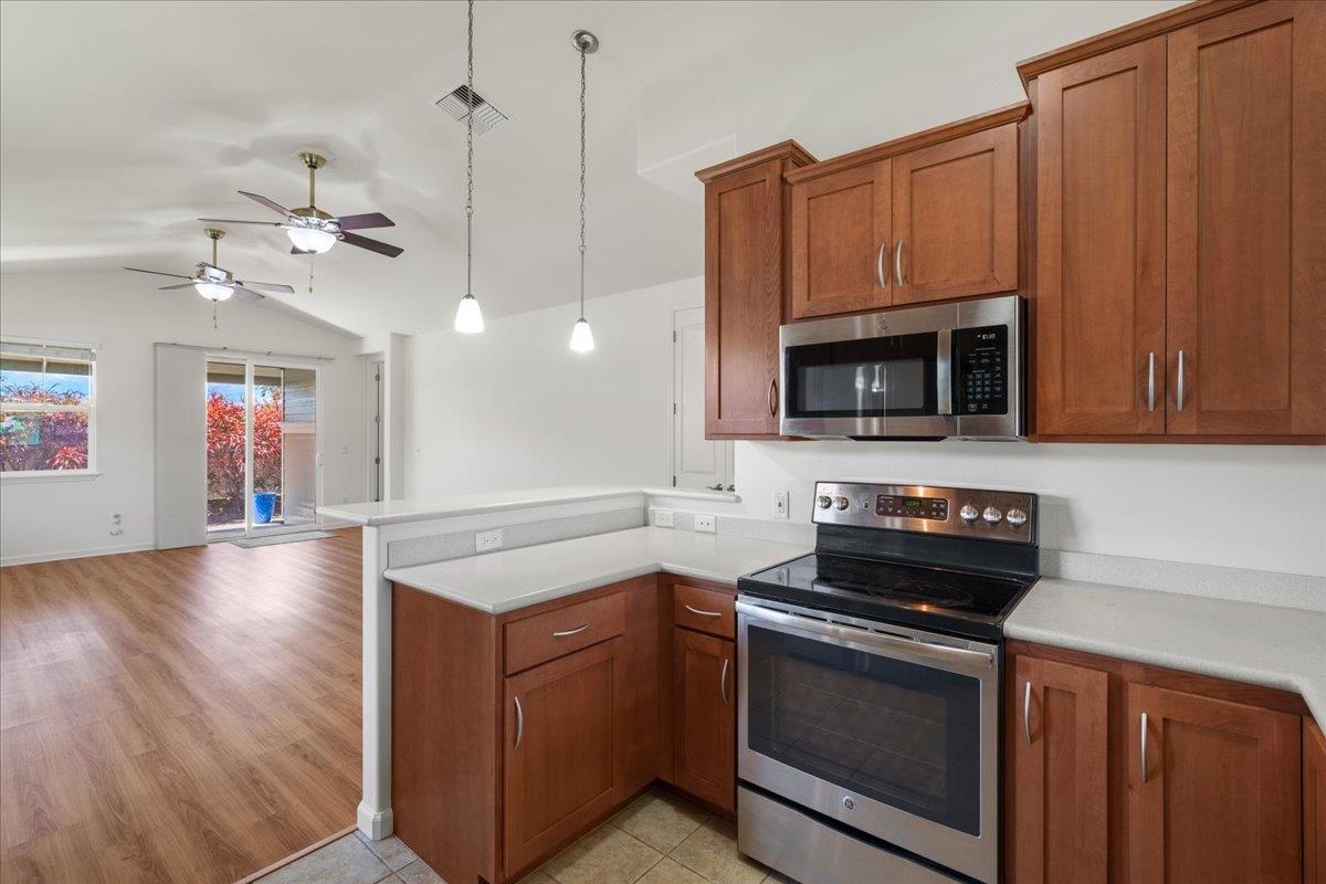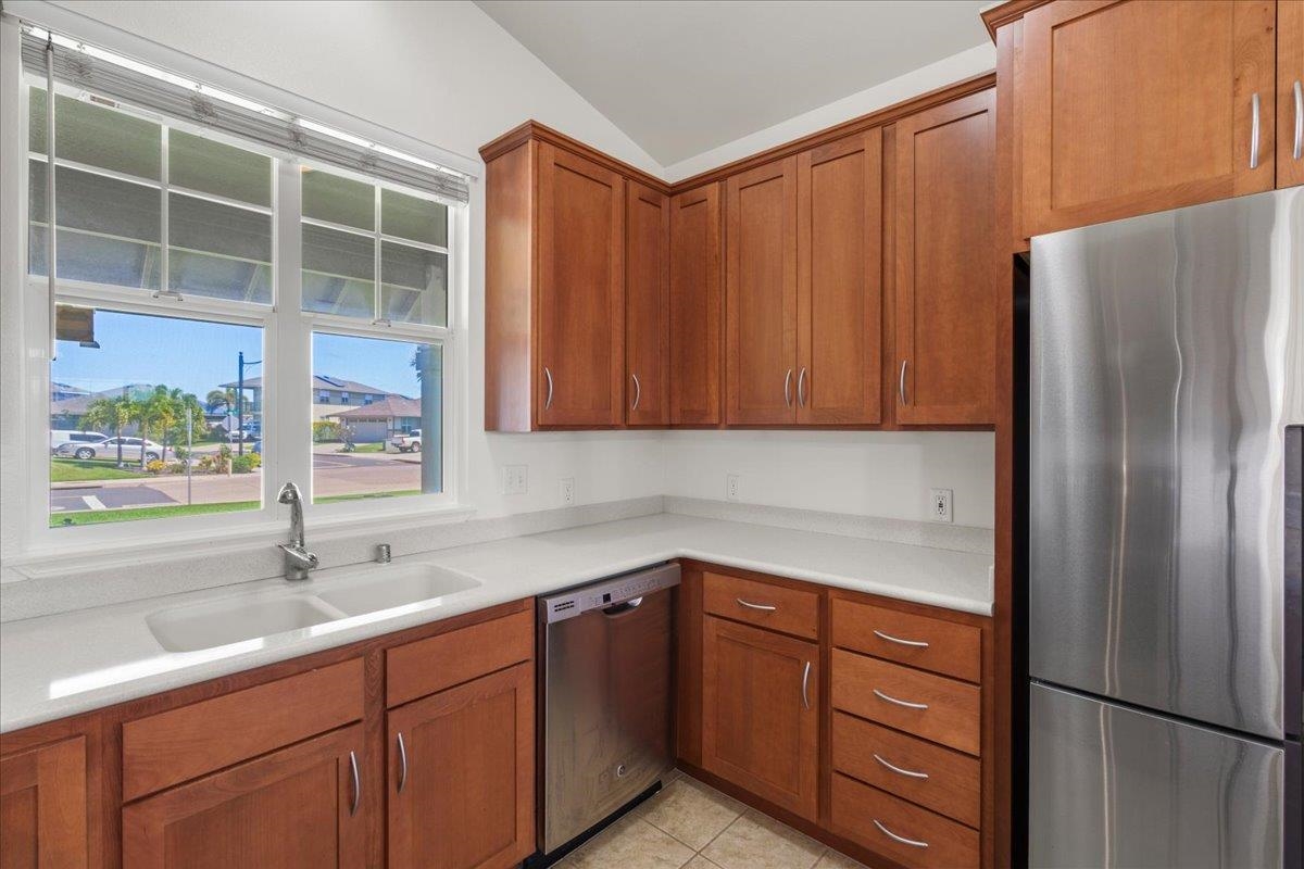 Welcome to one of Central Maui's best neighborhoods, the Parkways at Maui Lani! Located near the Dunes at Maui Lani Golf Course, 103 Olina features 3 bedrooms and 2 bathrooms over 1,385 sqft of single-level living space. Built in 2016 by Towne Island Homes, this beautiful home is the Hapuna Floorplan with 9-foot ceilings, 8-foot custom doors, corian counter tops, and recently updated luxury vinyl flooring. Central air conditioning keeps the home cool while 13 net-metered solar panels backed up by 2 Tesla Model 2 batteries (the equivalent of 4 Tesla model 1 batteries) keep electrical bills virtually non-existent. Low-maintenance, irrigated landscaping complements the home and keeps life easy! Currently the lowest-priced offering in the Parkways, this could be the perfect home for your family!