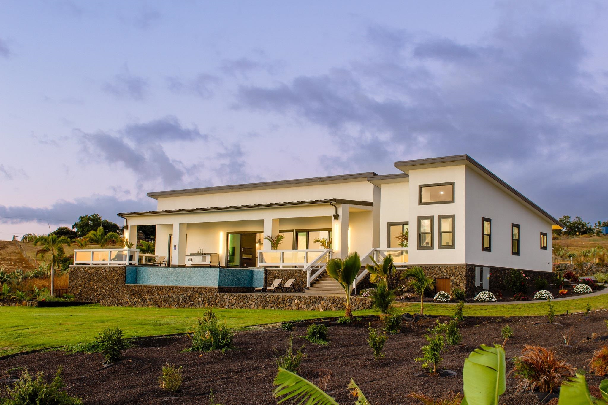 A newly completed 2023 Custom home in the prestigious Kula Io subdivision. This 4 bedroom 4 bath home sits on a 2 acre CPR'd lot of gorgeous land with amazing sunset ocean views. Over 5000 square feet of living, garage, and spacious lanai make this well designed house a wonderful place to call your home. Conveniently located just 18 mins from town, its the perfect place to be. At 2200 feet elevation the weather is perfect! Banana, macademia nut, and citrus trees are planted and ready to provide your family with fresh organic food. Fully fenced, and privately located, this is one of the best properties in the subdivision. This property is a CPR & is being sold as unit A, come take a look around sunset and prepare to be amazed!