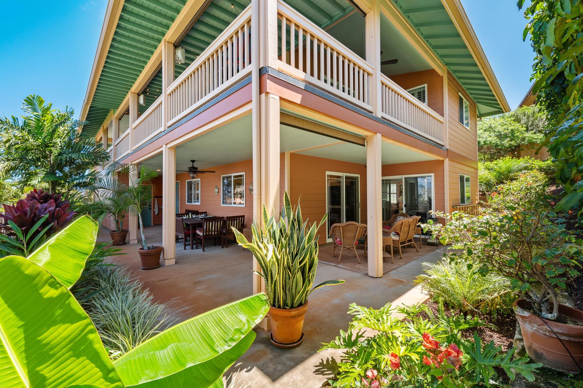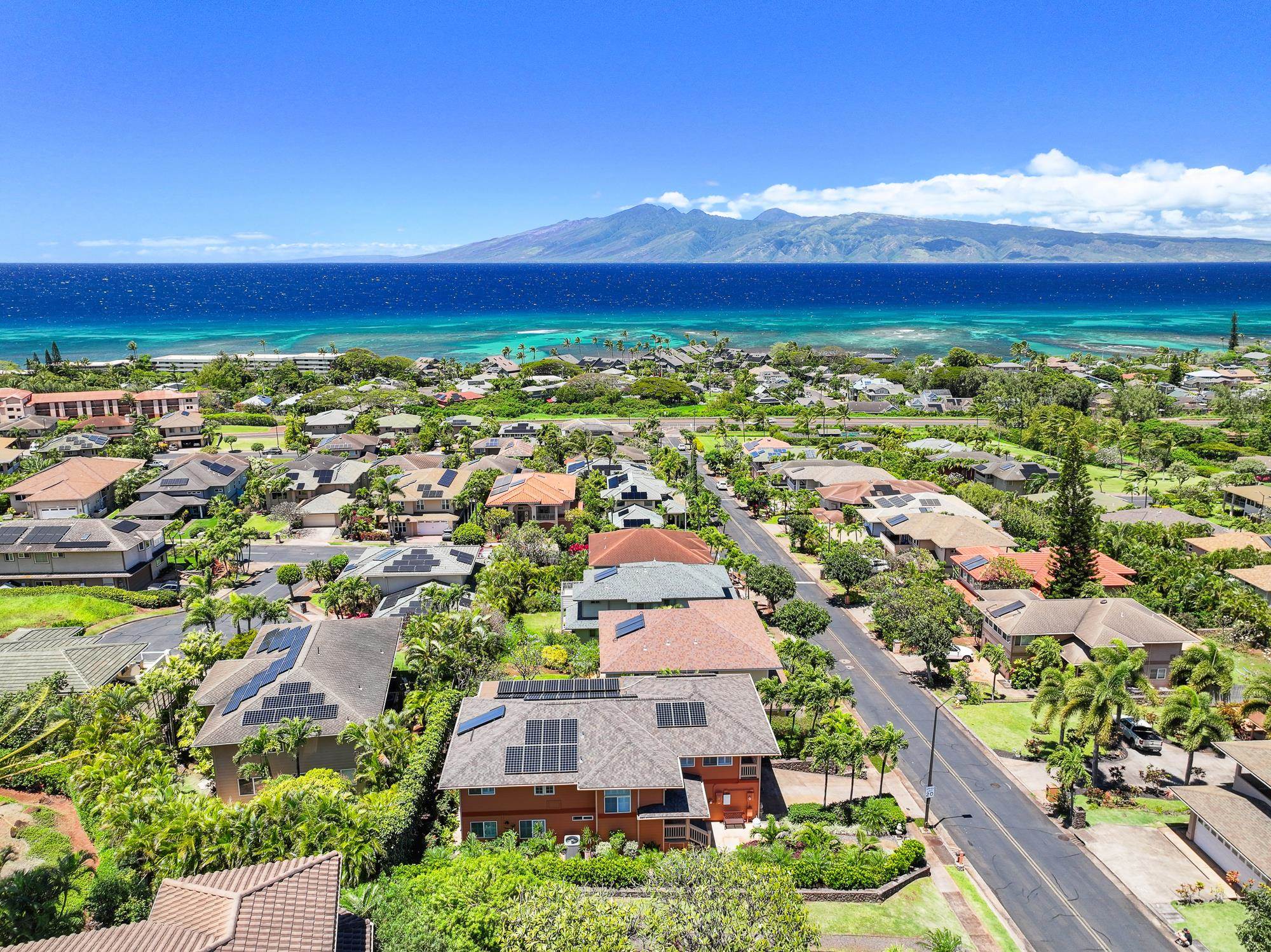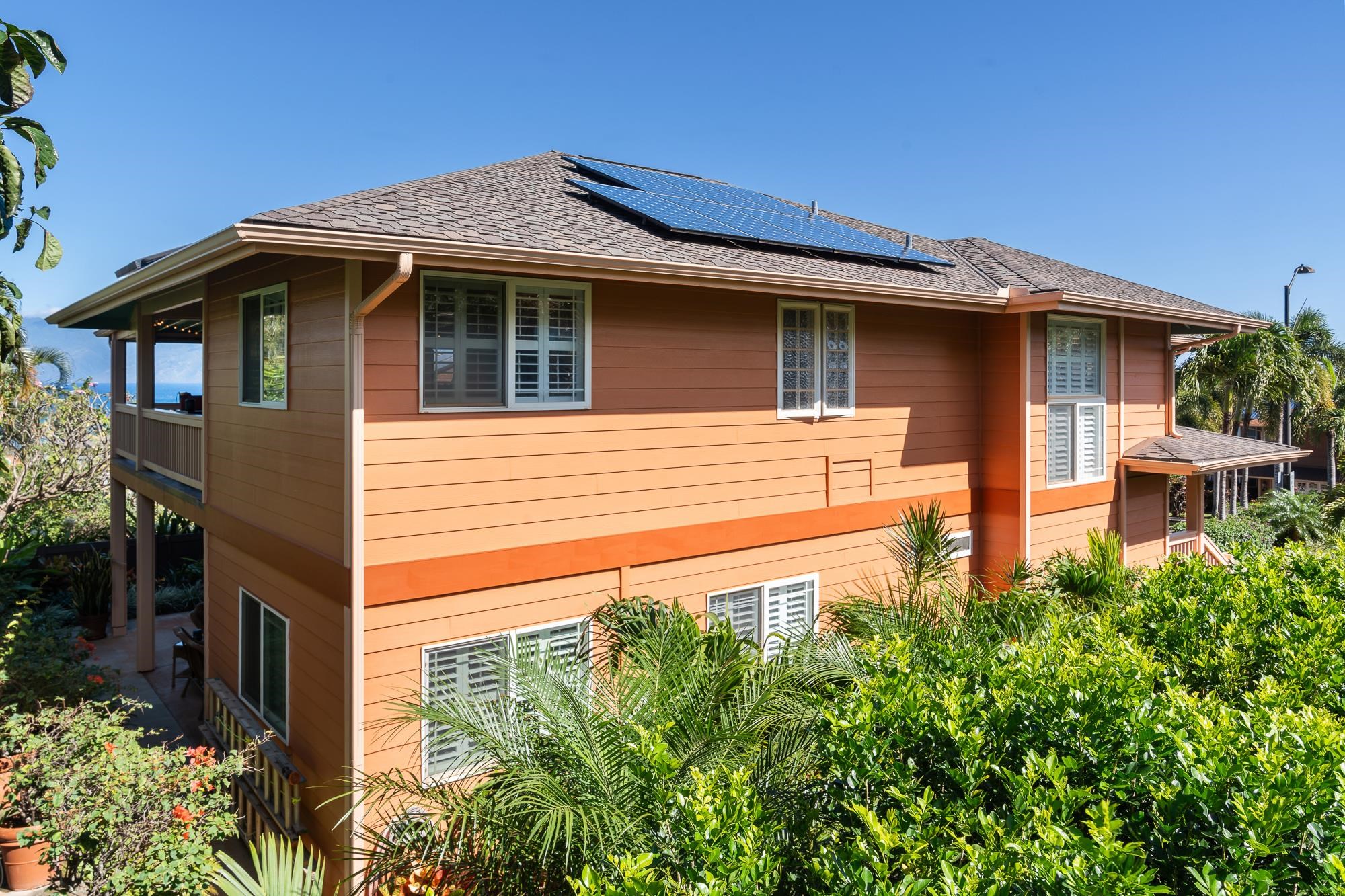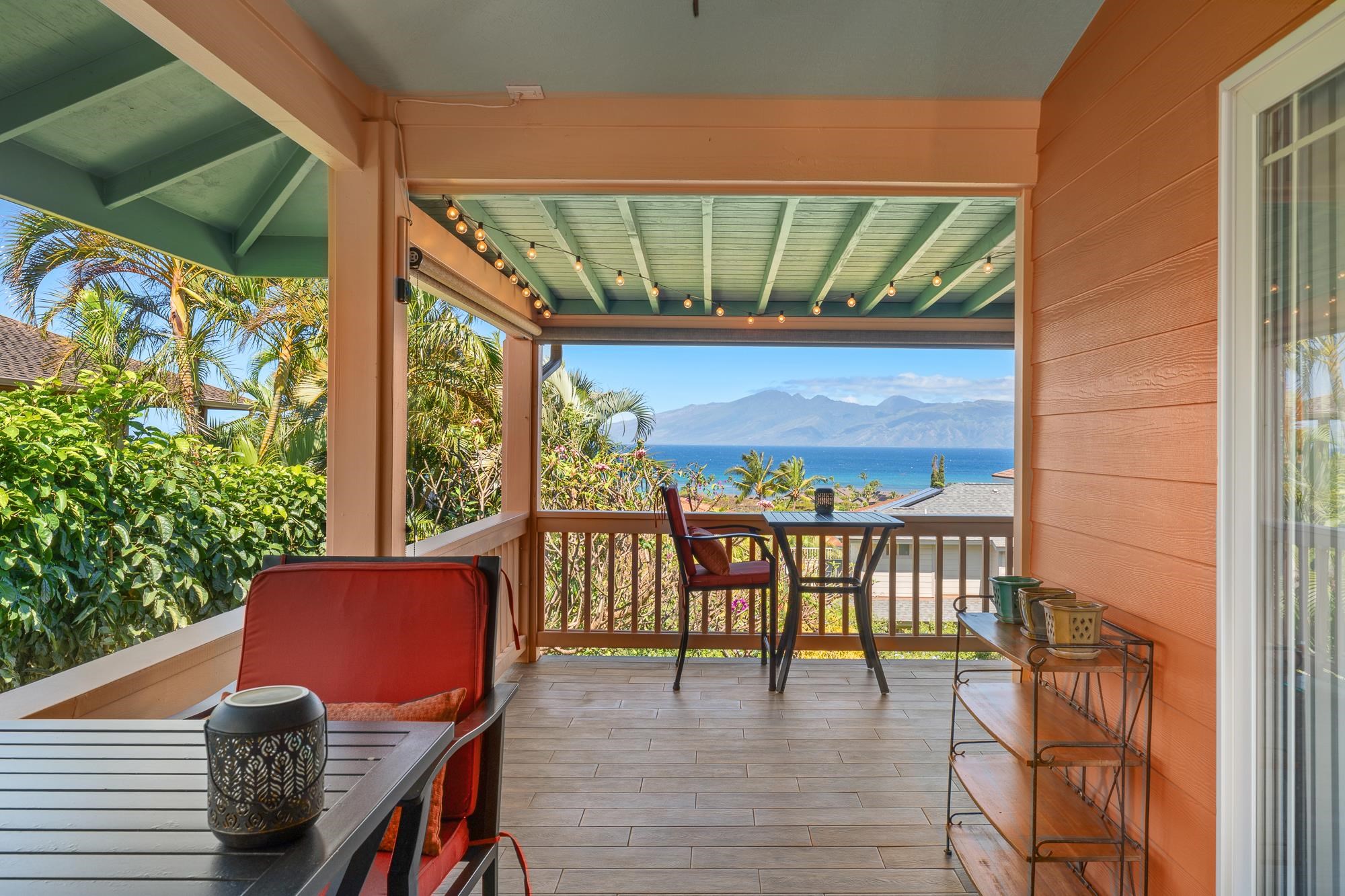 Thoughtfully upgraded for both luxury and long-term performance, this residence offers breathtaking panoramic ocean views and the perfect blend of comfort, sophistication, and modern efficiency. Since 2022, the home has undergone extensive improvements, including a 50-year CertainTeed Presidential roof, owned PV system (37 panels) with 2 Tesla Powerwalls, solar hot water, and a new 5-ton central A/C system. Offering 2,172 sq. ft. of air-conditioned living (including sunroom), the flexible layout features 3 bedrooms, 3.5 baths, a family room, and an office. Interior upgrades include wood flooring, remodeled downstairs bathrooms, new appliances, plumbing fixtures, lighting, plantation shutters, and shower glass. Outdoor living shines with over 1,100 sq. ft. of covered lanai space (608 sq. ft. upstairs, 537 sq. ft. downstairs), ideal for enjoying Maui’s sunsets and ocean views. Additional improvements include new landscaping and irrigation, rock wall extension, fencing, gutters, attic insulation, concrete walkway, garage door opener, and fresh interior/exterior paint. Permitted additions include an entry/foyer, a sunroom, and a workshop. A move-in-ready West Maui home offering exceptional upgrades, energy efficiency, and stunning ocean views.