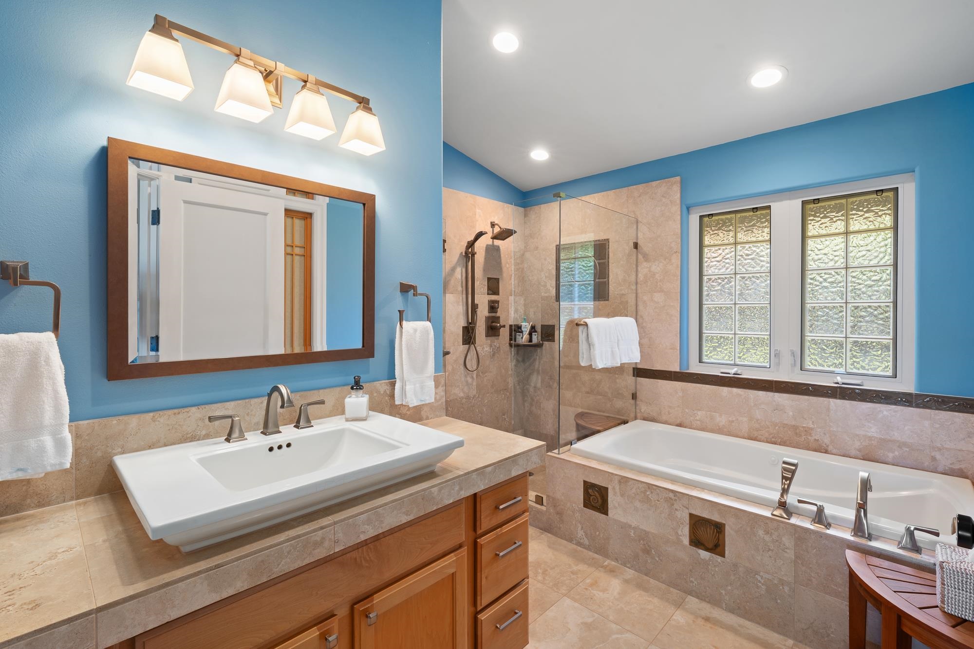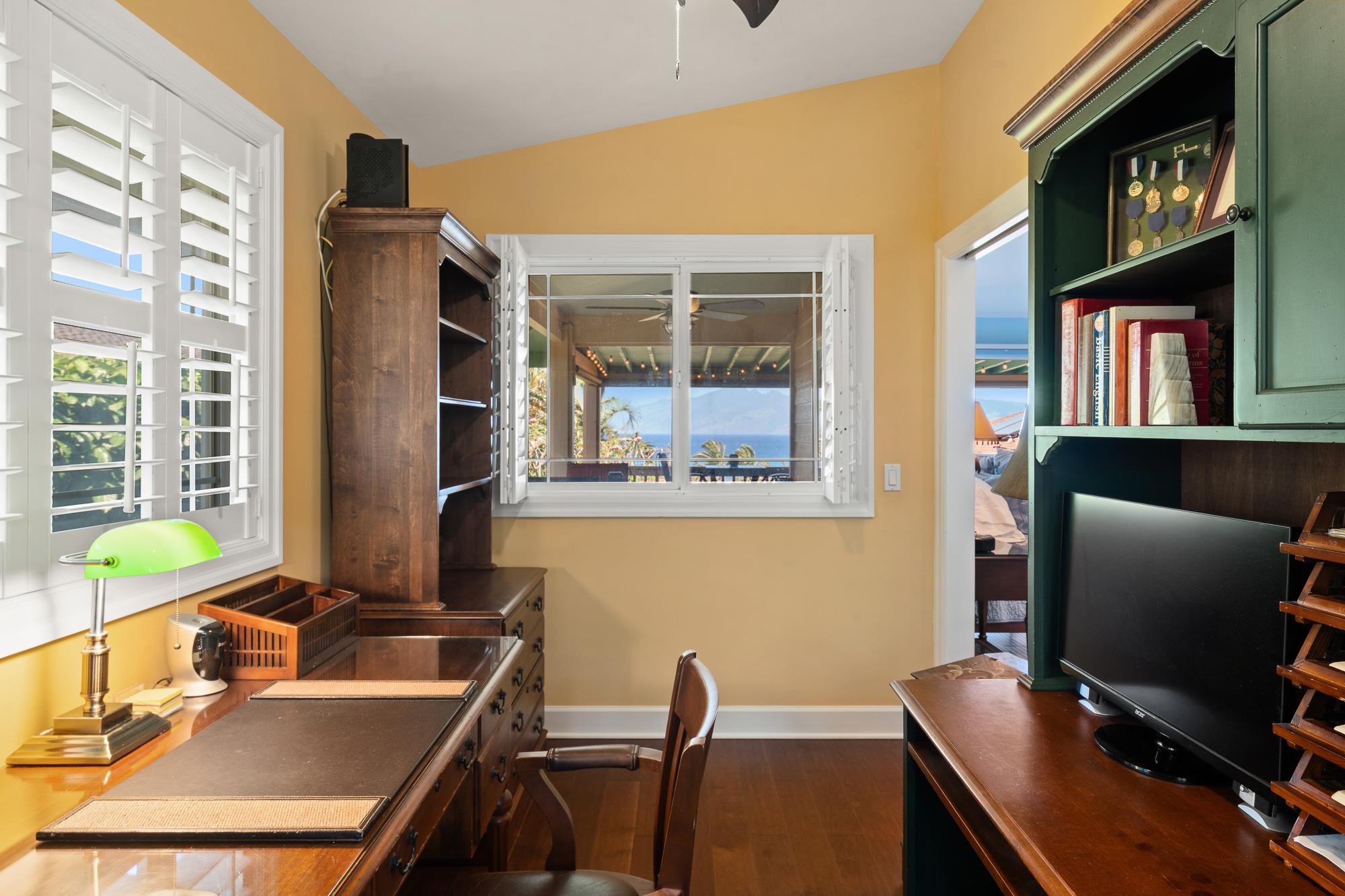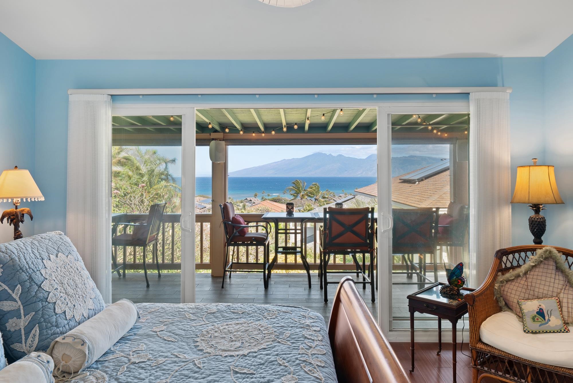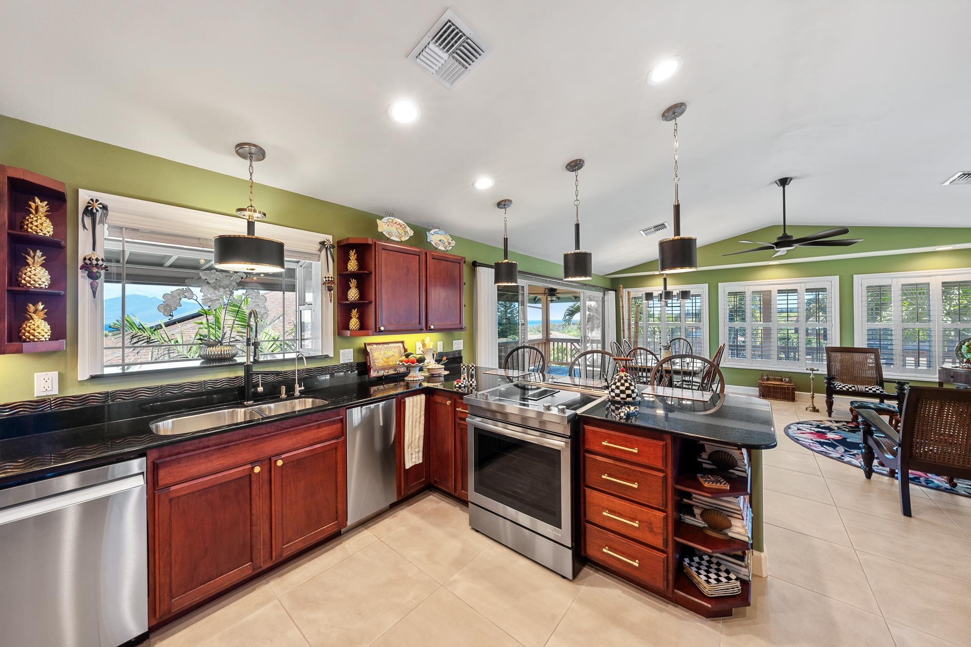 Thoughtfully upgraded for both luxury and long-term performance, this residence offers breathtaking panoramic ocean views and the perfect blend of comfort, sophistication, and modern efficiency. Since 2022, the home has undergone extensive improvements, including a 50-year CertainTeed Presidential roof, owned PV system (37 panels) with 2 Tesla Powerwalls, solar hot water, and a new 5-ton central A/C system. Offering 2,172 sq. ft. of air-conditioned living (including sunroom), the flexible layout features 3 bedrooms, 3.5 baths, a family room, and an office. Interior upgrades include wood flooring, remodeled downstairs bathrooms, new appliances, plumbing fixtures, lighting, plantation shutters, and shower glass. Outdoor living shines with over 1,100 sq. ft. of covered lanai space (608 sq. ft. upstairs, 537 sq. ft. downstairs), ideal for enjoying Maui’s sunsets and ocean views. Additional improvements include new landscaping and irrigation, rock wall extension, fencing, gutters, attic insulation, concrete walkway, garage door opener, and fresh interior/exterior paint. Permitted additions include an entry/foyer, a sunroom, and a workshop. A move-in-ready West Maui home offering exceptional upgrades, energy efficiency, and stunning ocean views.