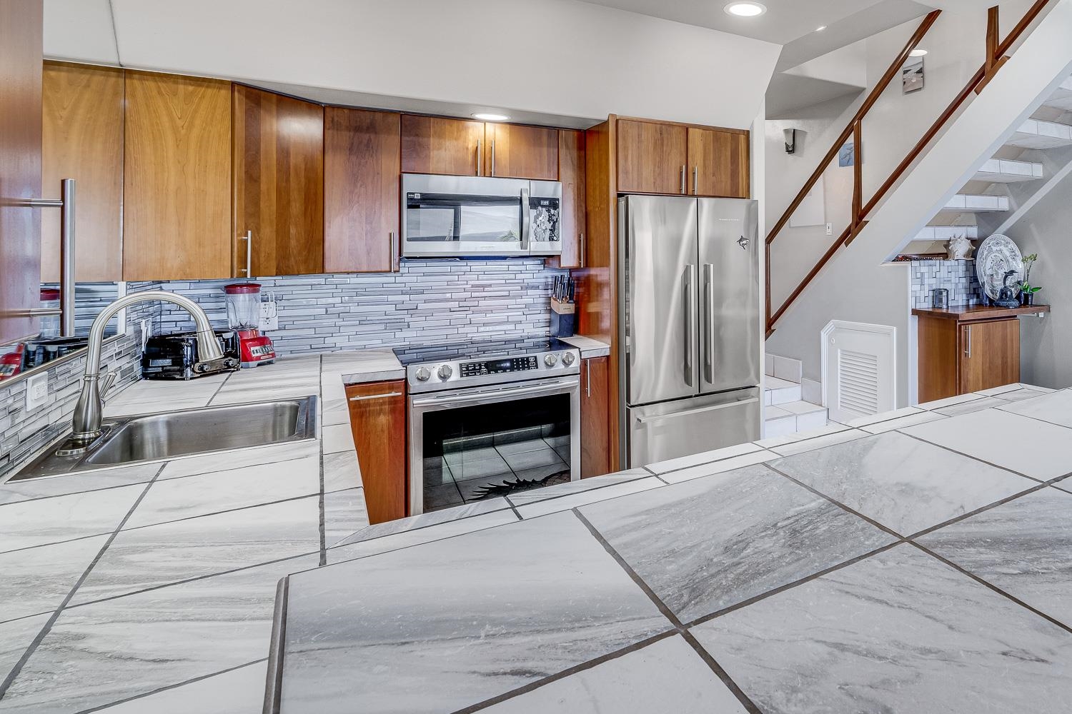 Your next chapter starts here. Hale Mahina Beach Resort B402 puts you on the water on the west side of Maui, in the largest floor plan in the complex at nearly 1,400 square feet, living like a real home, not a hotel room. Beautifully remodeled throughout in 2021 with custom walk-in showers, updated kitchen, and generous storage, everything is tasteful, turnkey, and ready for you the day you arrive. The trade winds do the work here, pulling through vented skylights and windows on multiple sides, keeping the unit naturally cool and the air always fresh. From your lanai, the views are everything the west side is famous for: open water, Lanai and Molokai on the horizon, sea turtles below, and humpbacks in season. Steps from your door is a secluded sandy beach that most visitors to Maui will never find. And yes, bring the dog. Pet friendly and beachfront in Maui is a combination that almost does not exist, and B402 has both. HOA fees cover electricity, internet, and all utilities. This is a leasehold property.