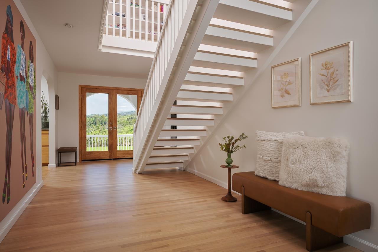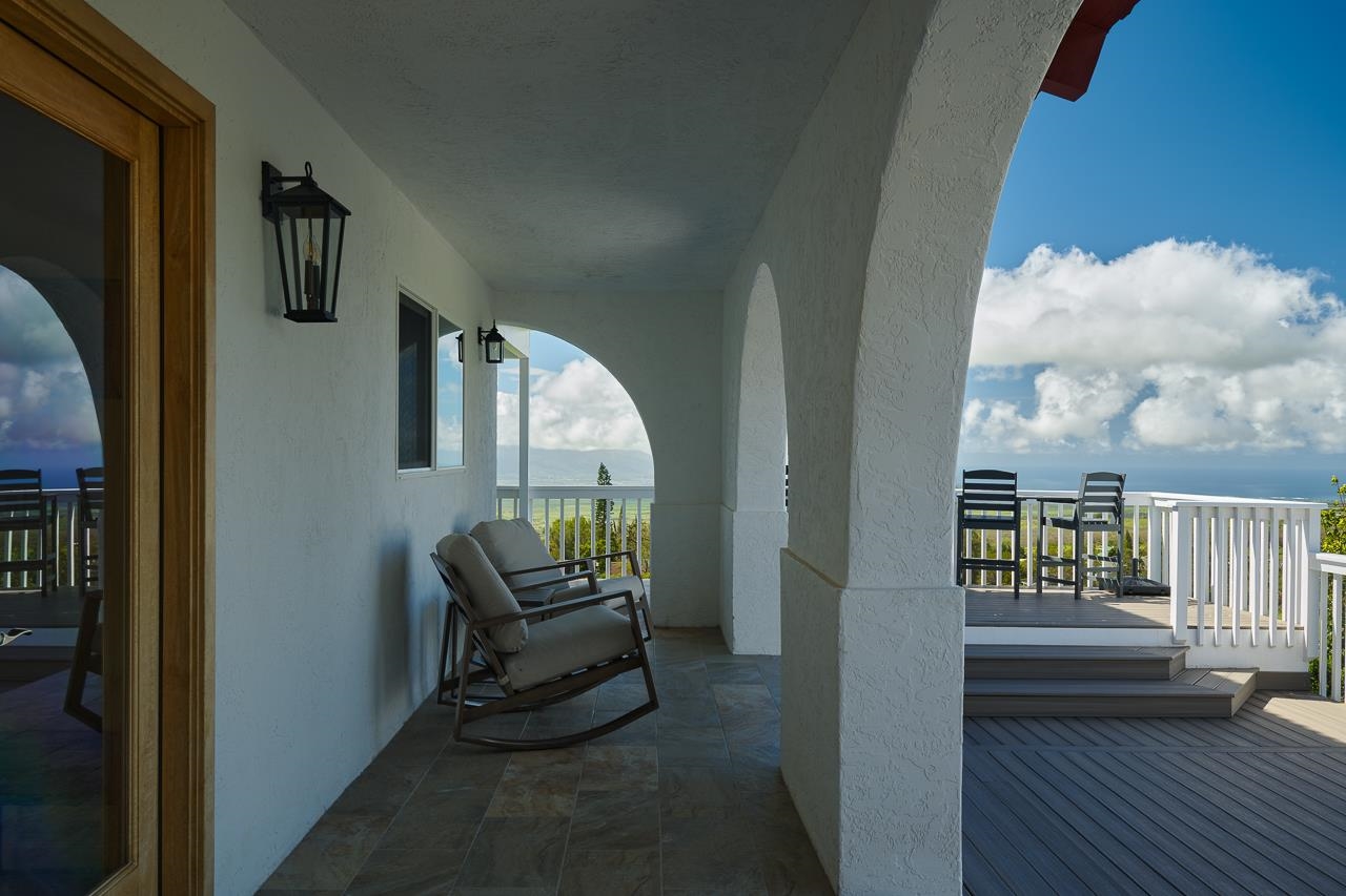 Welcome to perfection in Upcountry Kula. Imagine a private retreat spanning 2.367 acres, surrounded by the abundant natural beauty of the land, combined with pristine bi-coastal ocean views reaching to Moloka’i and Lana’i. A legacy estate of this caliber defines tranquil upcountry living at its best, creating a home to celebrate life’s landmarks. Resting at 2,100 feet on Haleakala’s western slope, this unique residence enjoys the best of the mild upcountry climate. Kula residents appreciate year-round Springtime with gentle Pacific breezes and consistently comfortable temperatures. Panoramic views of the Pacific greet you throughout the home’s interiors. Oversized picture windows in the living room and primary suite frame these reach-out-and-touch unequaled vistas, changing throughout the day as the light does. The main residence’s light-filled, lofty spaces seamlessly meld together with 5 bedrooms and 3.5 baths, spanning 3,644 square feet. The home's custom Mediterranean architecture and local craftsmanship embrace simplicity, which defines the unique upcountry lifestyle. In addition to those ocean views, there are forty native fruit trees (avocado, mango, citrus, mangosteen, star apple, lychee, peach, nectarine, star fruit), honoring the land and the year-round outdoor living experience. A separate suite with a private entrance is the perfect flex space for a creative studio, work-from-home office, full-size gym with infrared sauna, second kitchen, full bathroom, private deck, and yard. The main residence has brand-new Wolf appliances, including an induction range, refrigerator, and dishwasher. Custom new white oak hardwood flooring throughout is the canvas for your personal design statement. Discover the custom yurt with 20ft ceilings, including ocean and unequaled Haleakala’s views. Walking trails wind throughout the property's landscape, with ocean views at every turn, and are a natural amenity to this perfect retreat. The redesigned pool and spa are the home’s centerpiece, boasting a 40-foot saltwater pool with solar heating. Imagine experiencing the best of Kula from sunrise to sunset, 365 days a year. Visit this Upcountry Kula home, and you will discover it is exactly where you are meant to be.